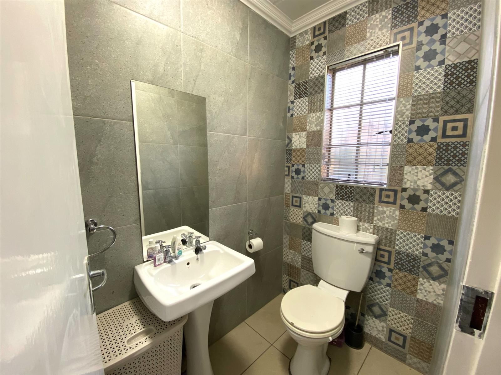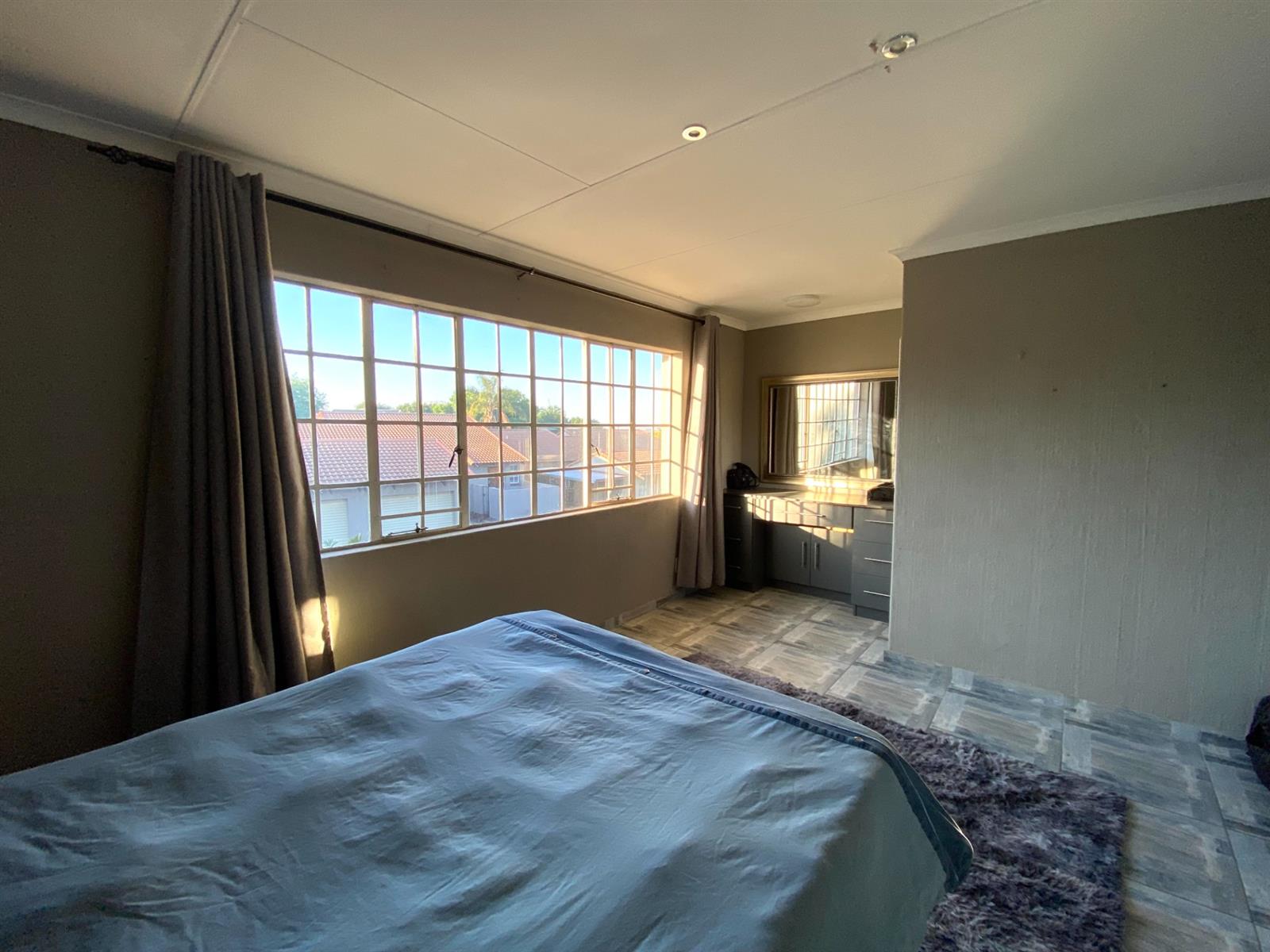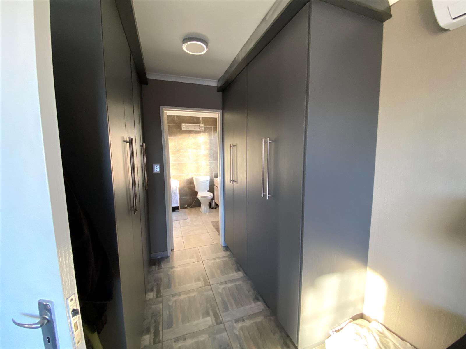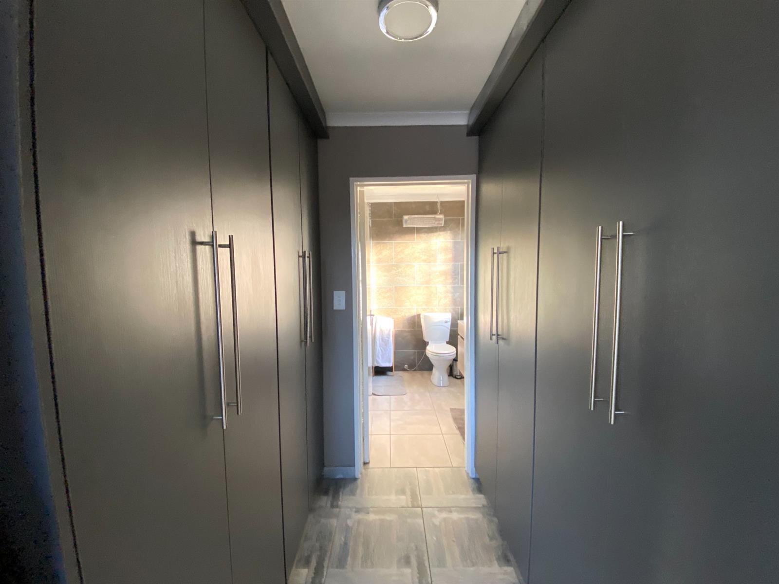 This is an absolutely stunning corner unit in a stunning complex in Sundowner with 2 bedrooms upstairs, both with en-suite bathrooms – both with shower, toilet, and basin. A beautiful downstairs open-plan living area that was tiled a short while ago, and which looks stunning. Open-plan lounge, dining room, and kitchen, and the lounge gives you access to a stunning wrap-around garden, which must be one of the key drawcards for this unit.
