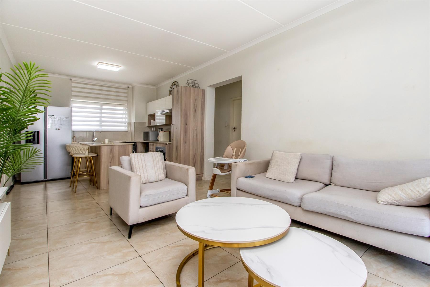 This wonderfully modern and neat ground-floor two-bedroom apartment offers a warm, cosy feel while still being light, bright, and airy. Tiled throughout and painted in soft, light tones, the space feels fresh, clean, and effortlessly welcoming, with modern fixtures adding a stylish finishing touch.