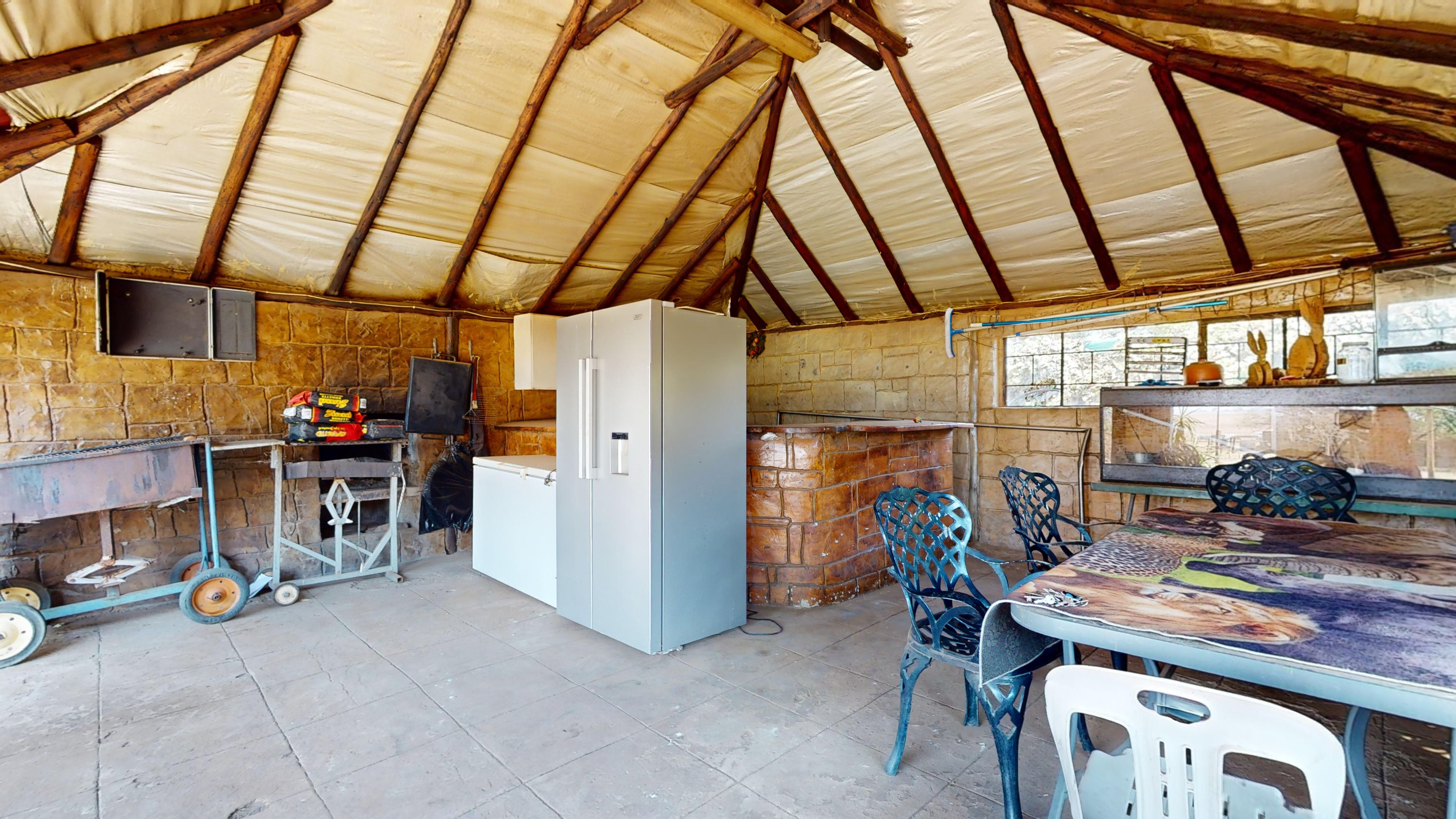 The property includes two boreholes, a pump house, two spacious storage rooms, and a drive-through storeroom area. Additionally, there is a workshop and external staff quarters. These facilities are located near a separate entrance, which is equipped with a motorized gate, providing access to a flatlet that features bedrooms, a bathroom, a lounge, a kitchen, and an additional storage area.