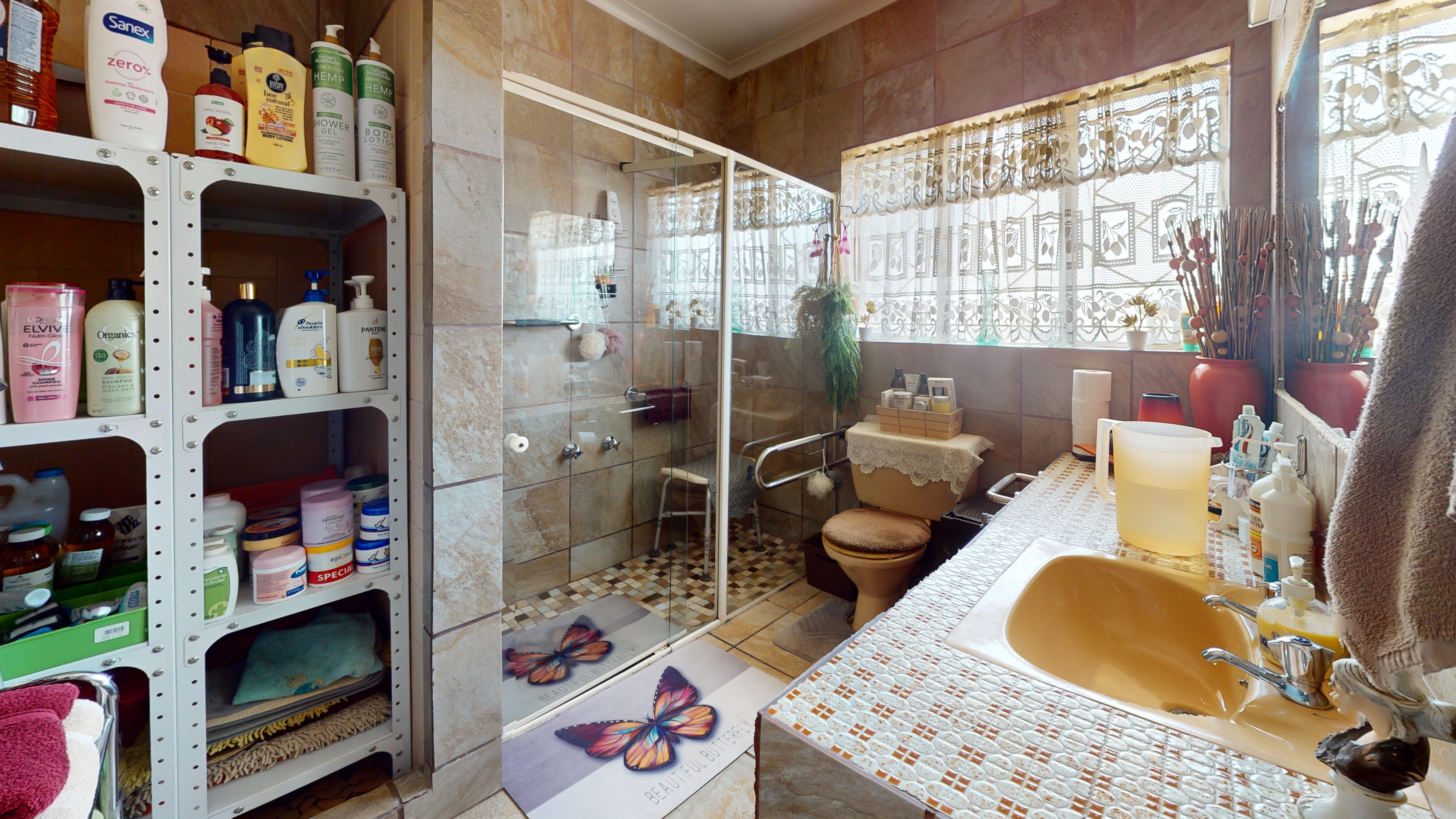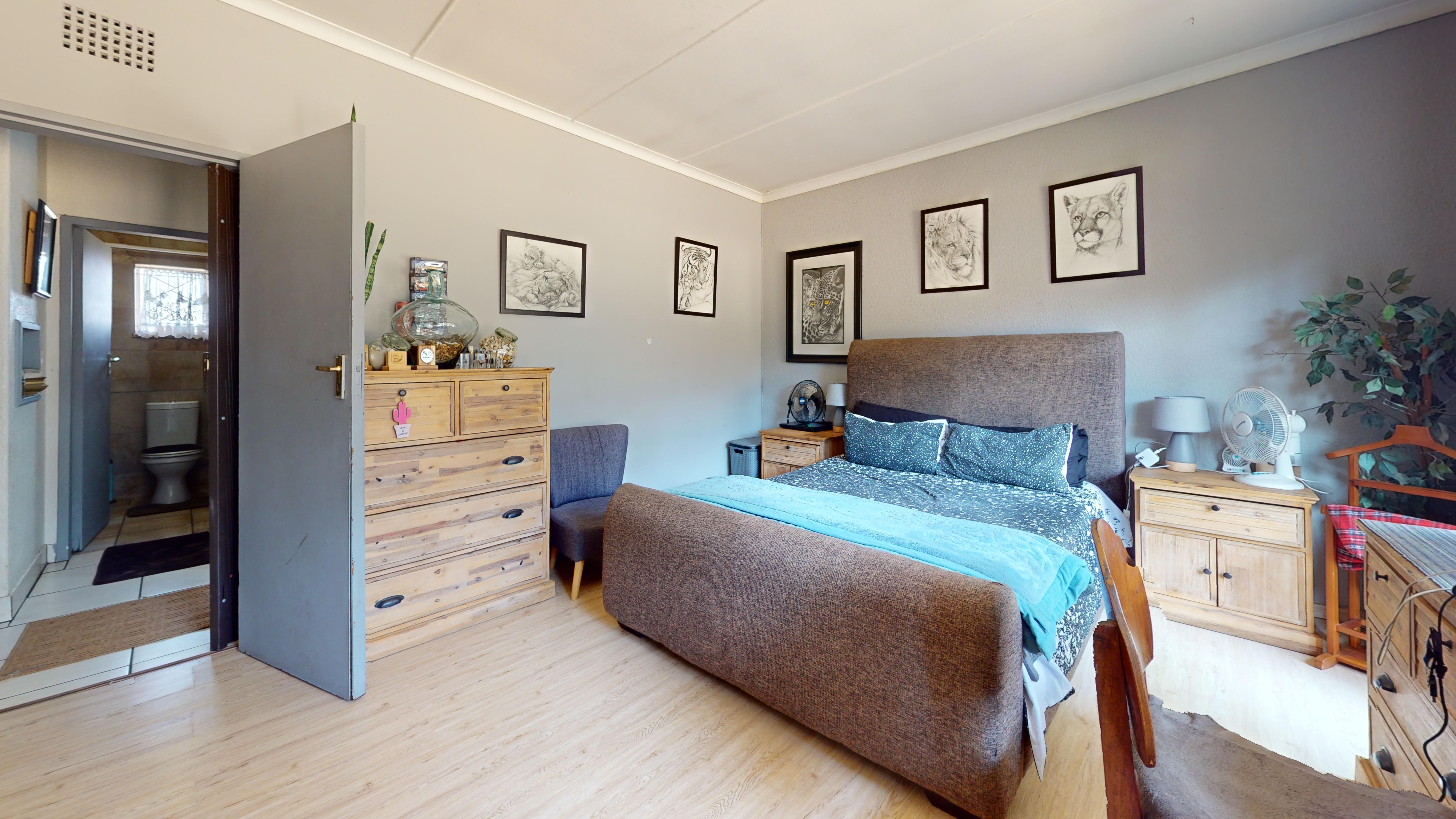 The expansive bedrooms feature built-in cupboards, TV brackets, and generous space for a desk, while the spare room boasts a dedicated study nook. All rooms have burglar bars on the windows. The bathrooms are spacious and include a guest toilet. The house also has a separate private bedroom with a California shower, dressing space and an air conditioner.