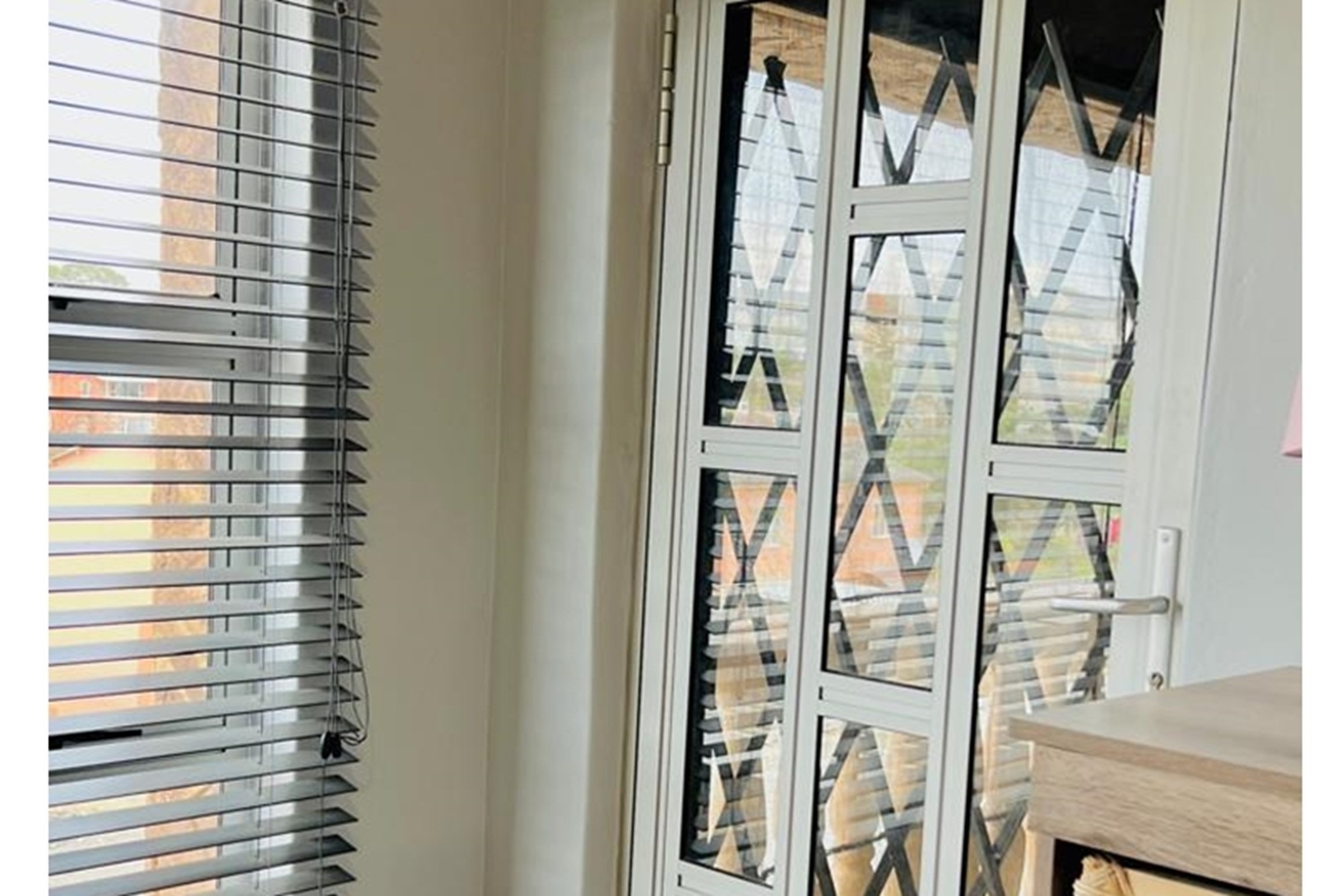 Third Bedroom– Built-in cupboards and access to the shared balcony.