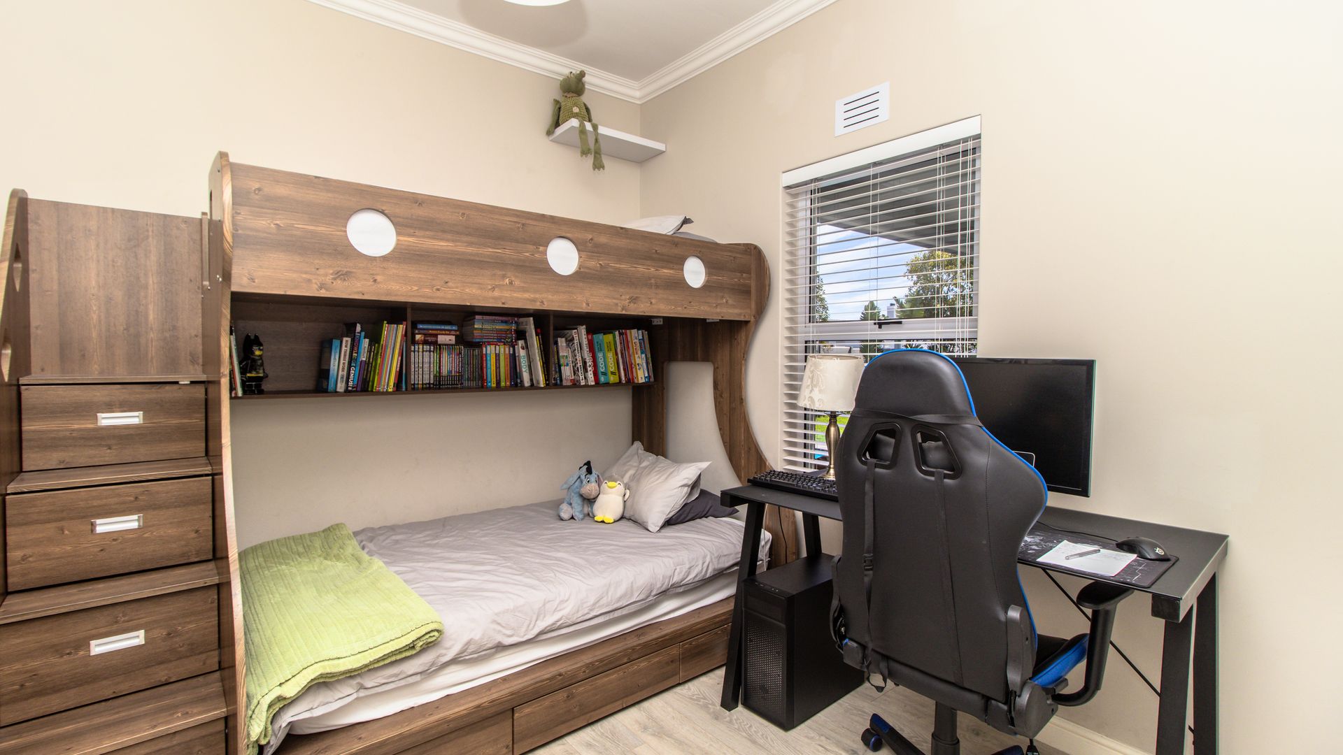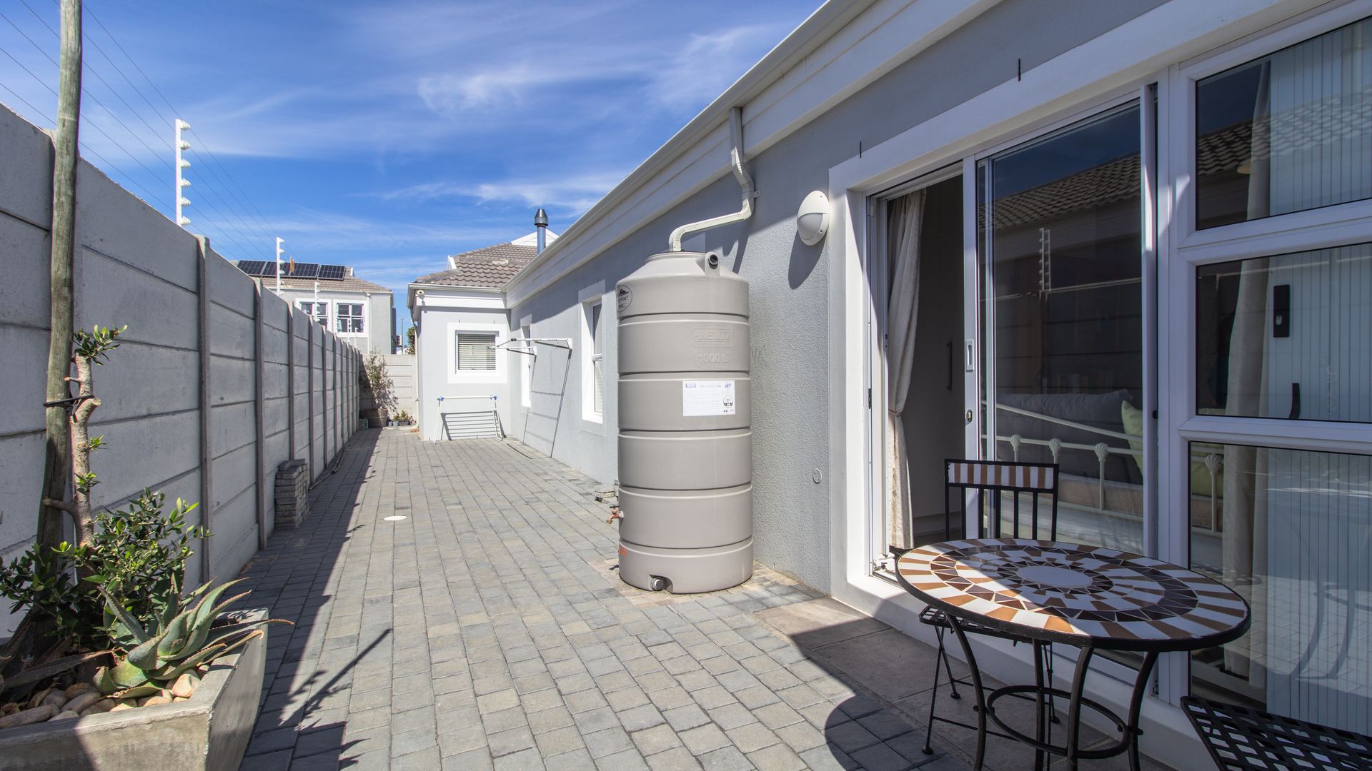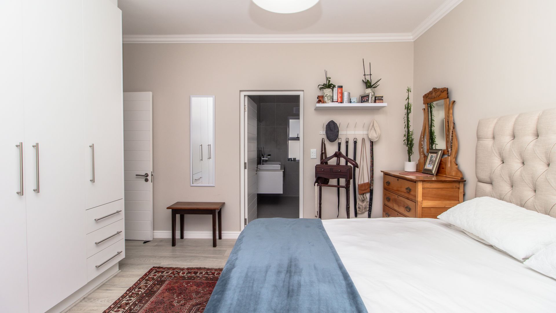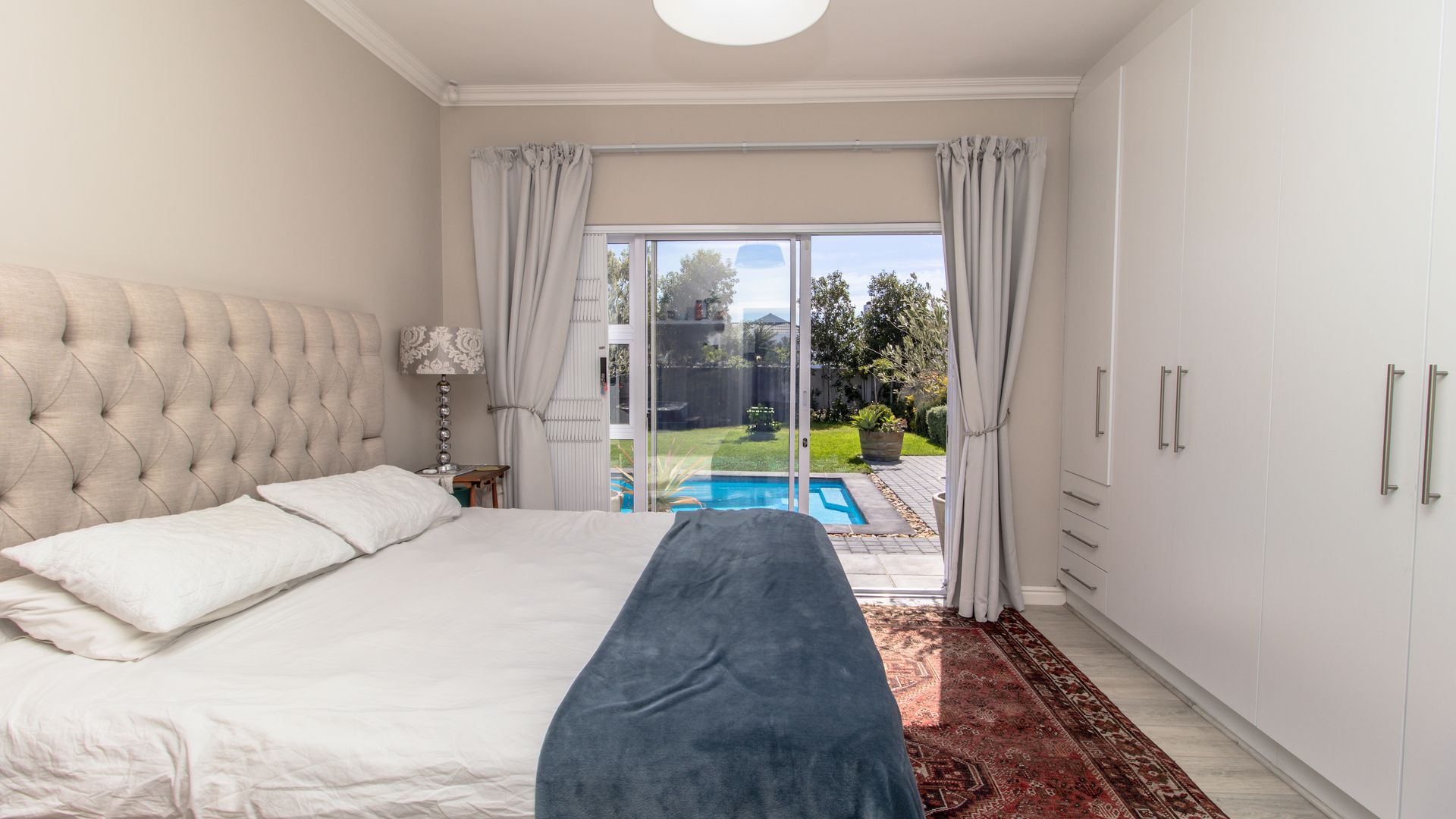 - Luxurious Main Suite: The spacious main bedroom is a true retreat, complete with an en-suite bathroom featuring a double-length shower and his-and-her basins. Sliding doors open out to the tranquil garden, providing a peaceful escape at any time of day.