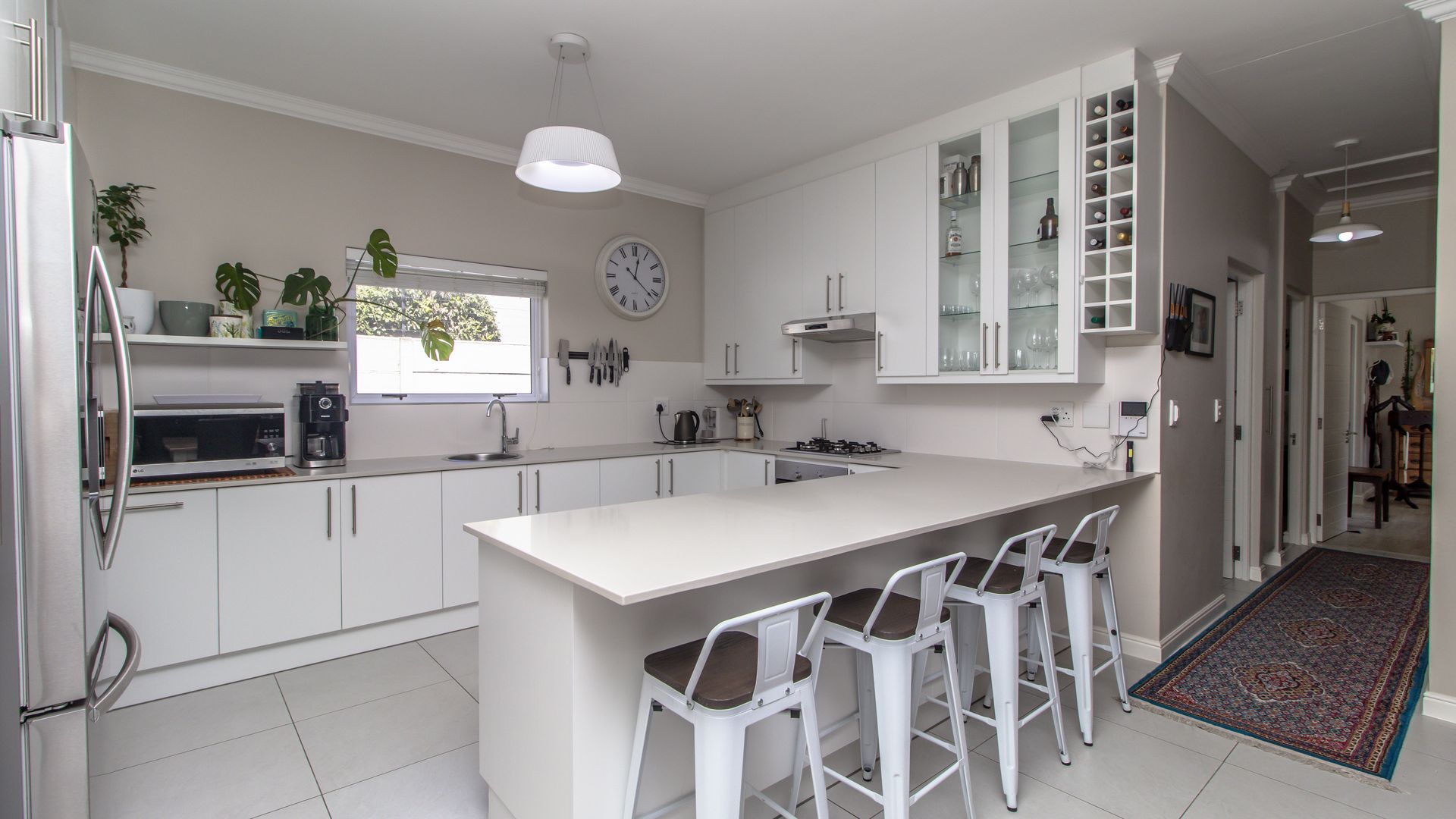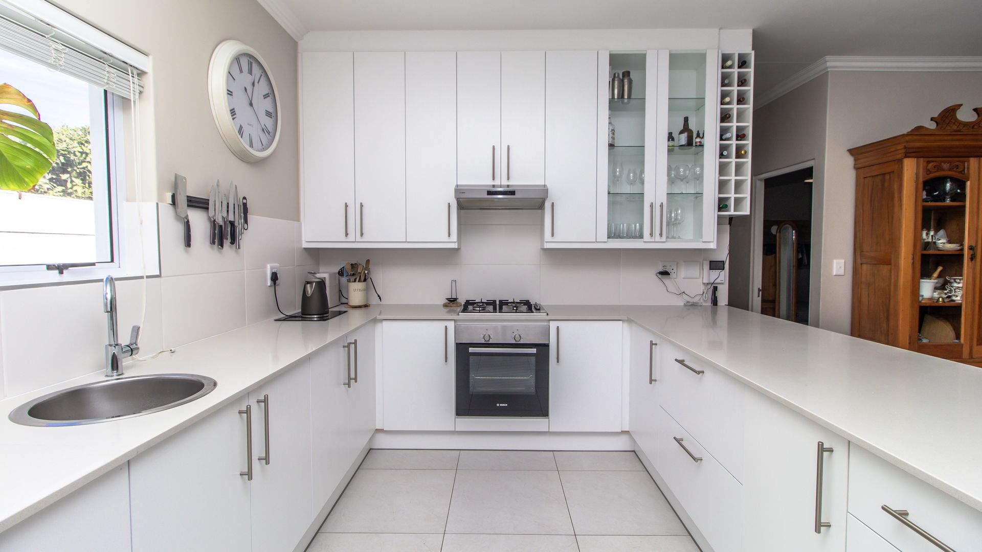 - Gourmet Kitchen & Scullery: The contemporary kitchen features Caesar stone countertops, an under counter oven, and a gas hob. A separate scullery, plumbed for two appliances, adds extra convenience and organization for busy families.
