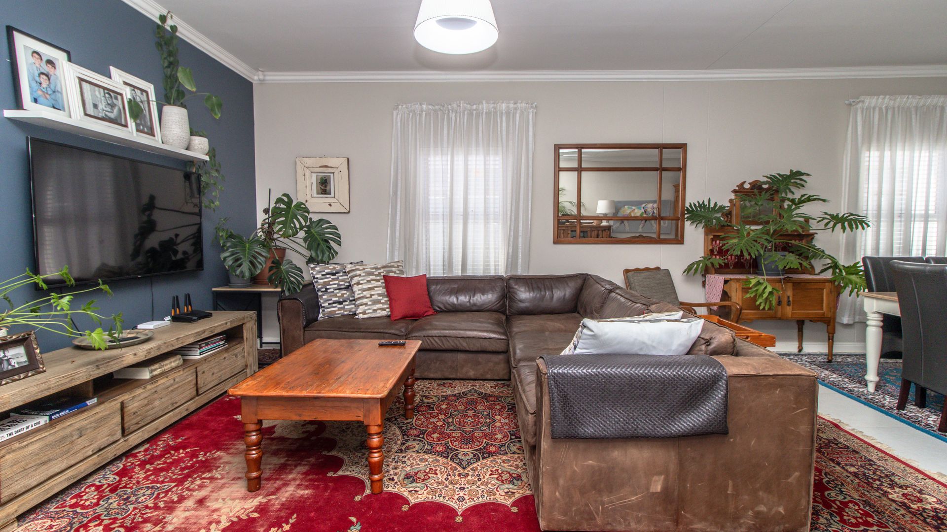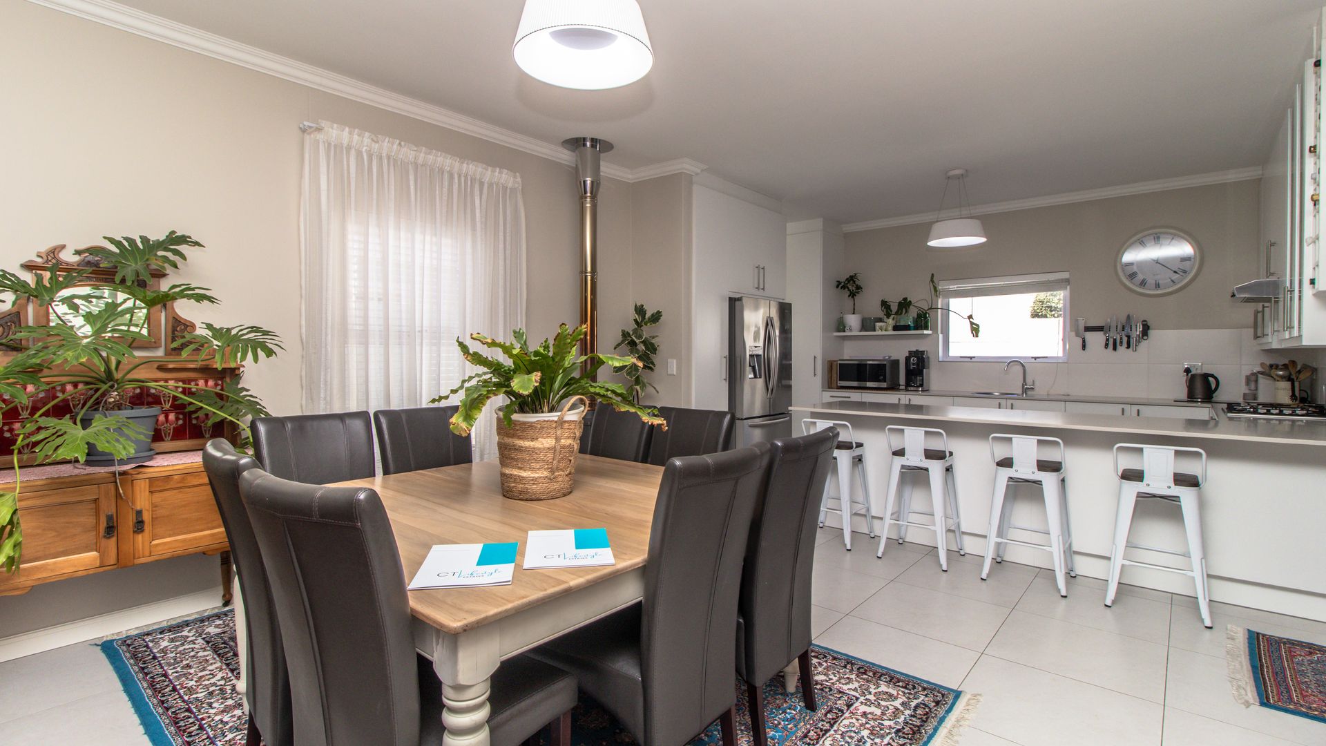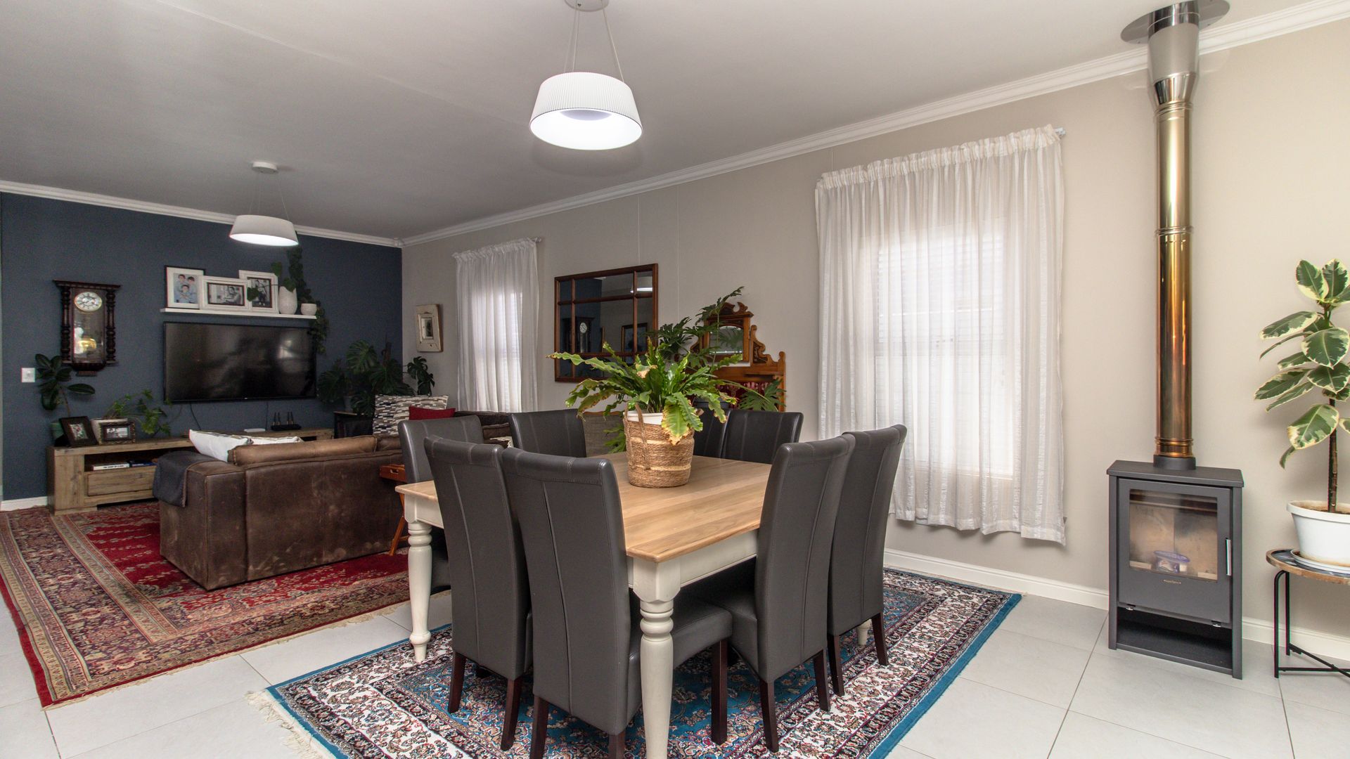 - The open-plan design effortlessly combines dining and lounge areas with an indoor wood-burning fireplace—ideal for cozy winter nights.