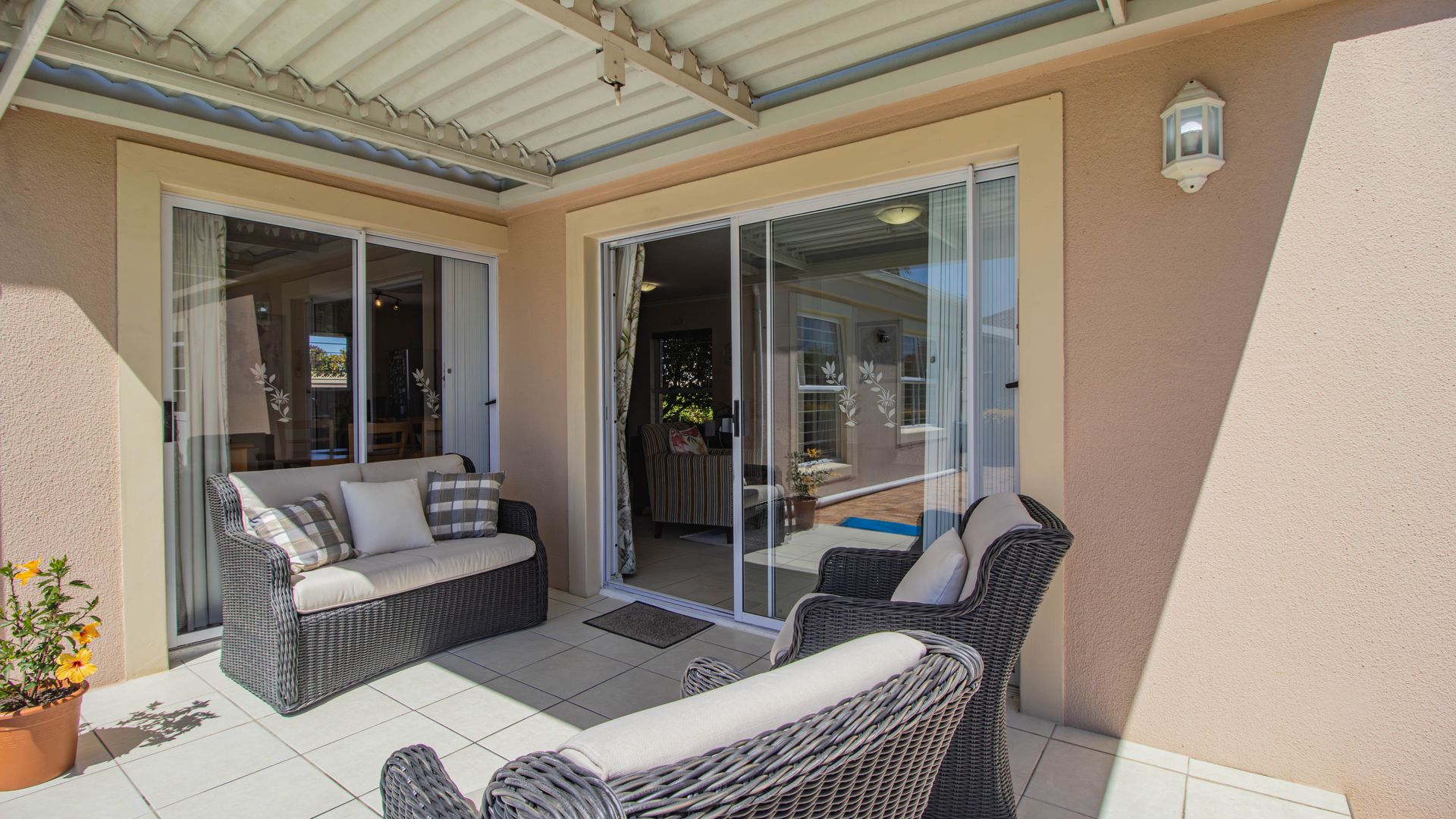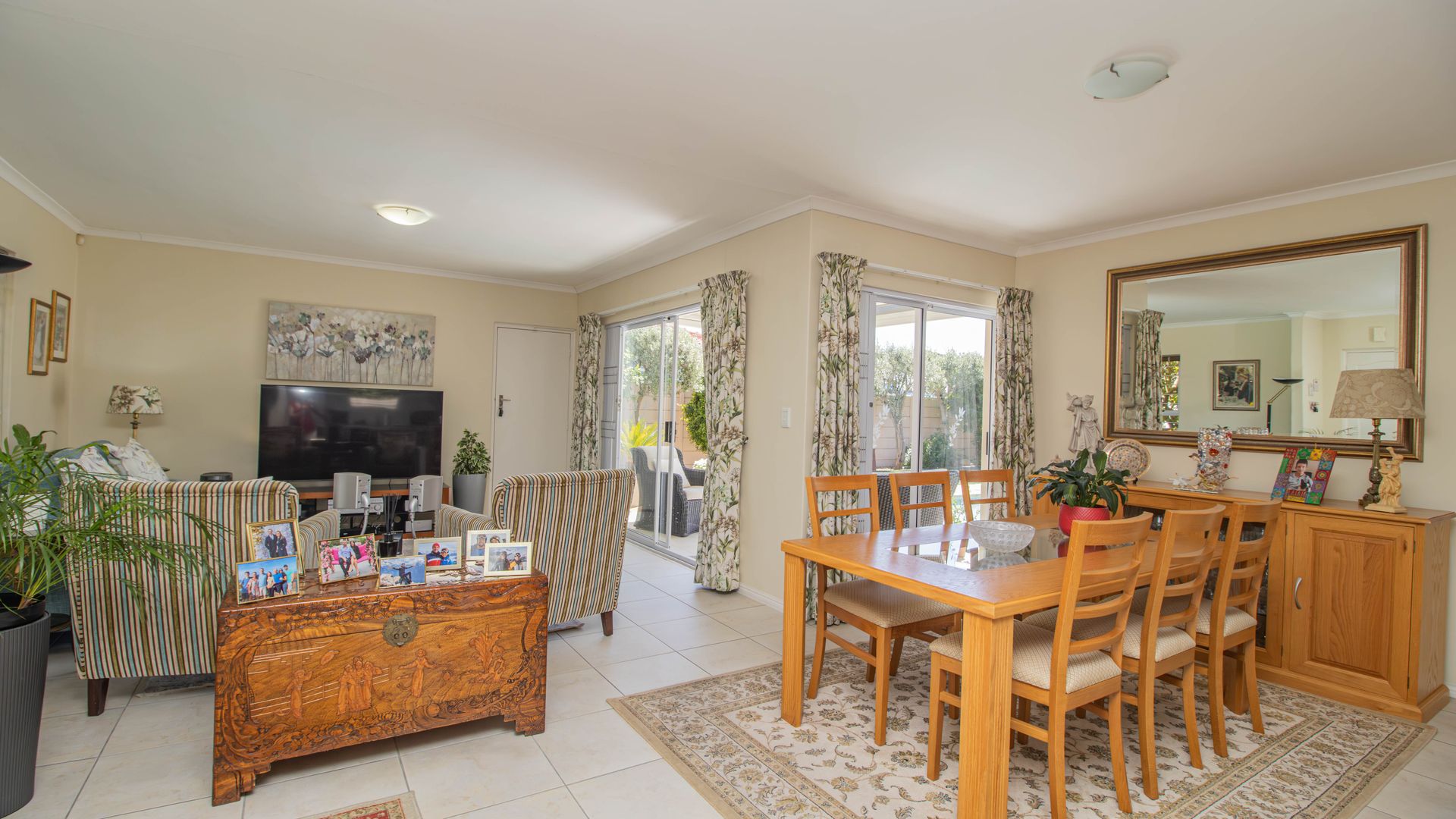 Inside, the home features 3 well-sized bedrooms and 2 bathrooms, including a main ensuite. The open-plan lounge and dining area create a welcoming flow, with sliding doors from both spaces leading onto a covered louvre-roof patio — perfect for relaxed entertaining.