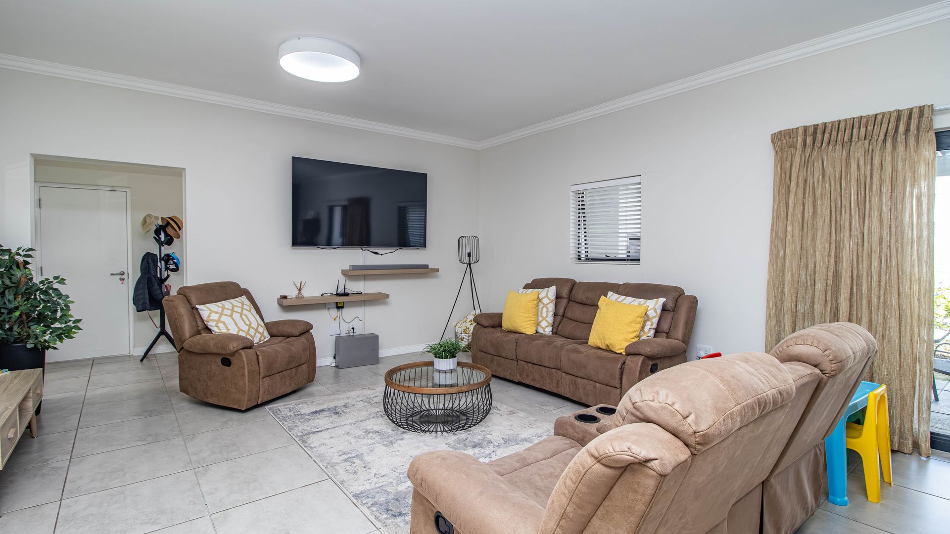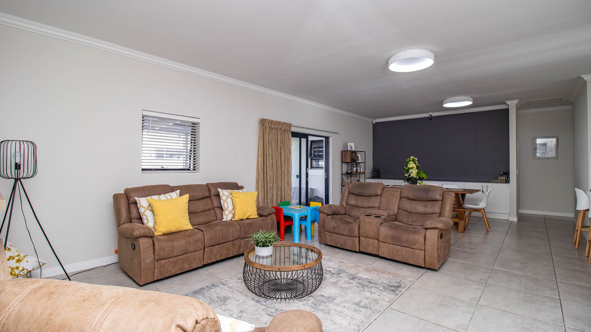 Set behind an automated gate, the property offers peace of mind and secure off-street parking. A welcoming entrance leads you to a spacious open-plan living area - lounge and dining space, extending onto a covered patio with a built-in braai.