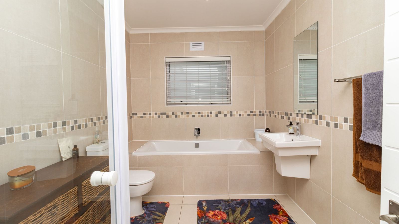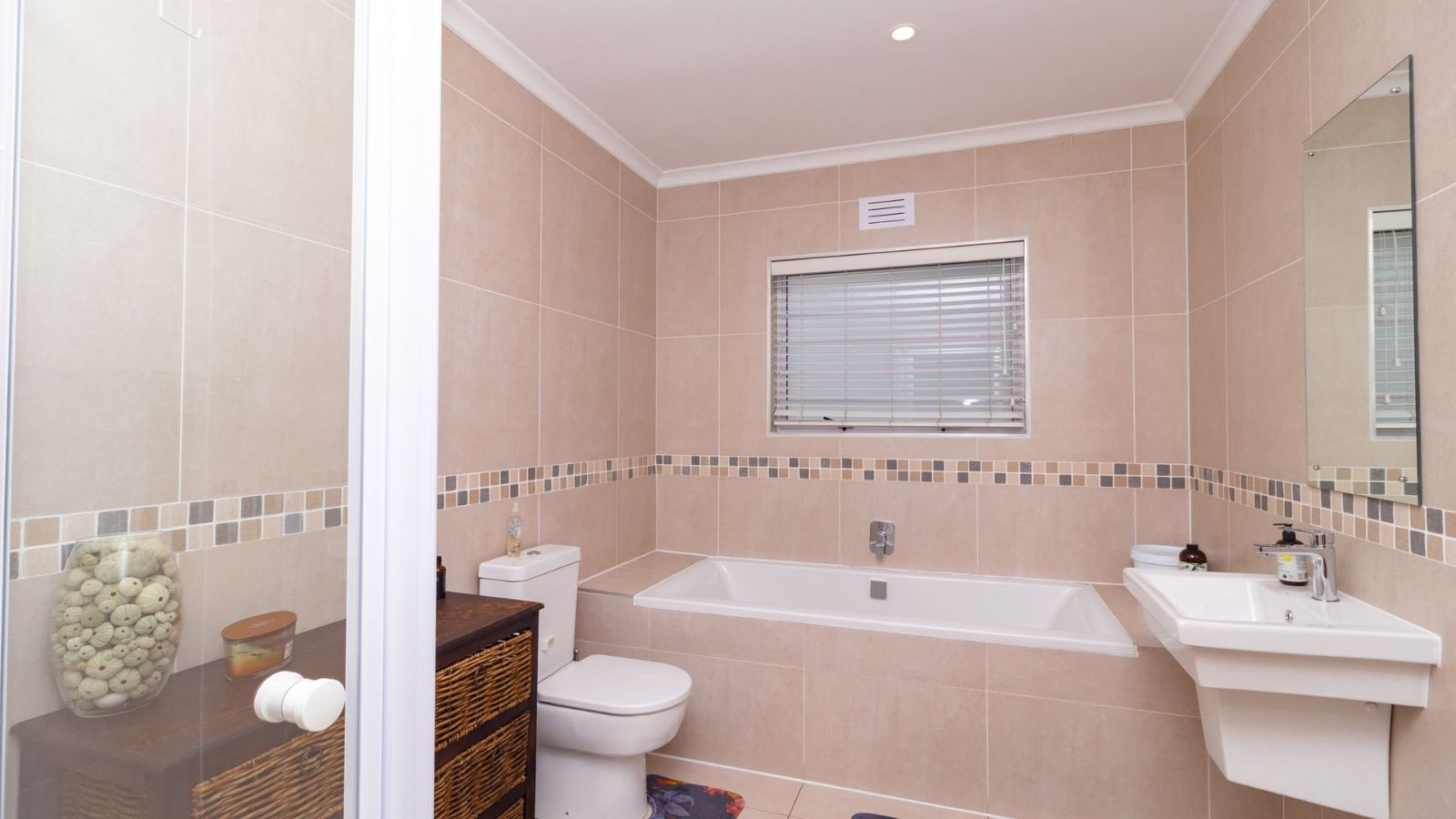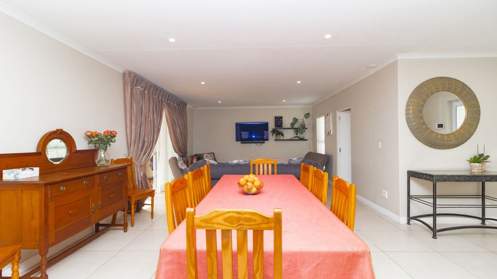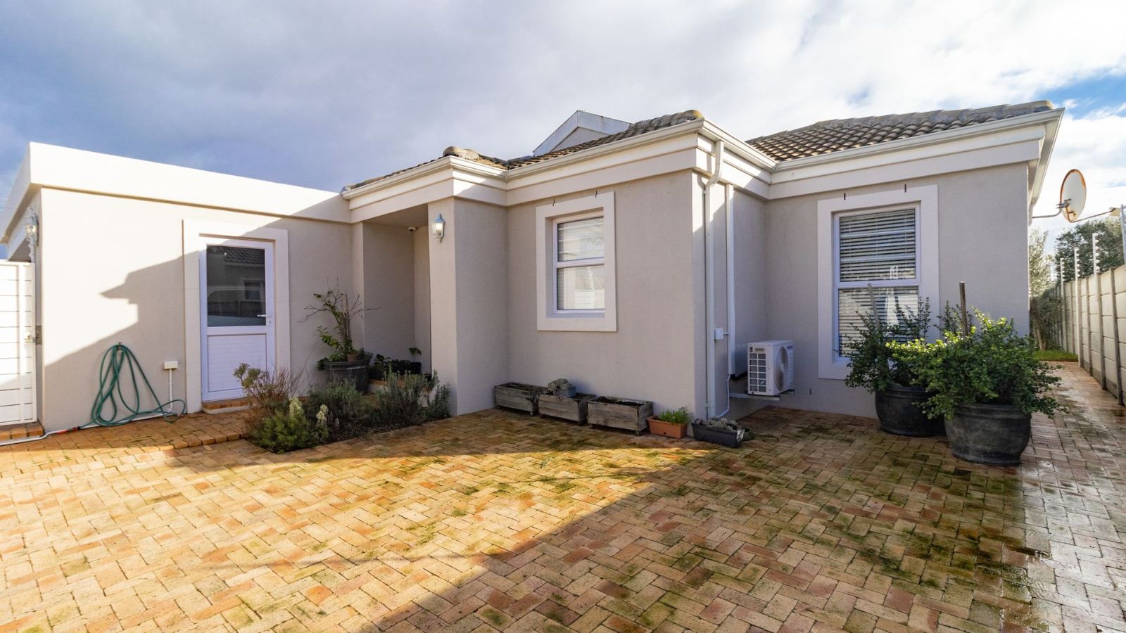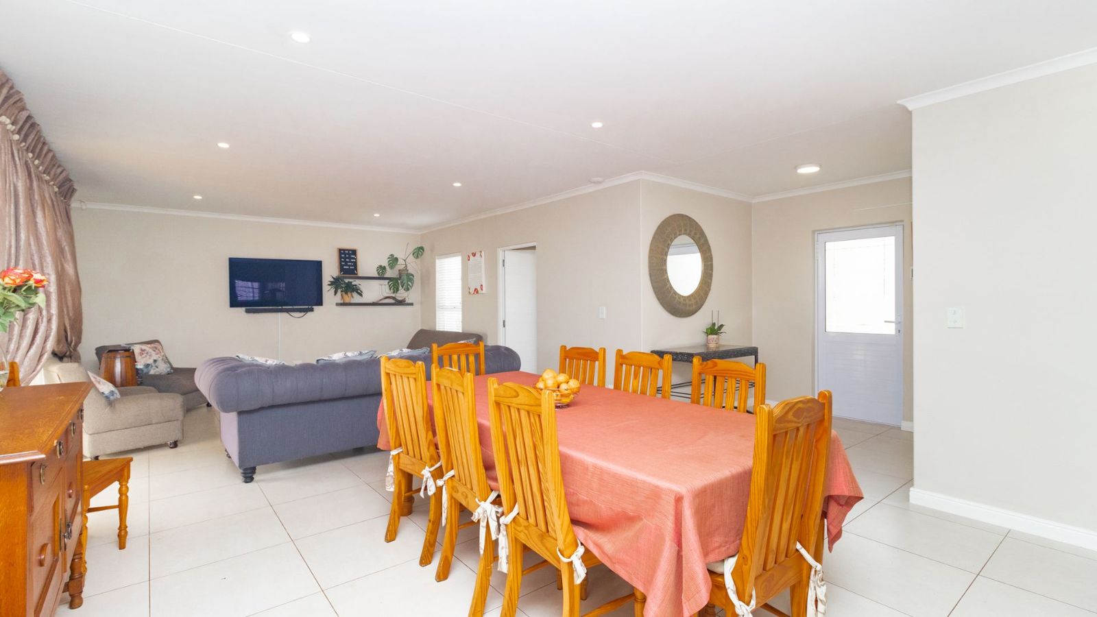 The heart of the home is the generously sized kitchen, complete with a scullery, perfect for the avid cook. The open-plan lounge and dining area create a warm and welcoming space, seamlessly flowing out to a covered patio, with a built-in braai– ideal for indoor-outdoor entertaining.