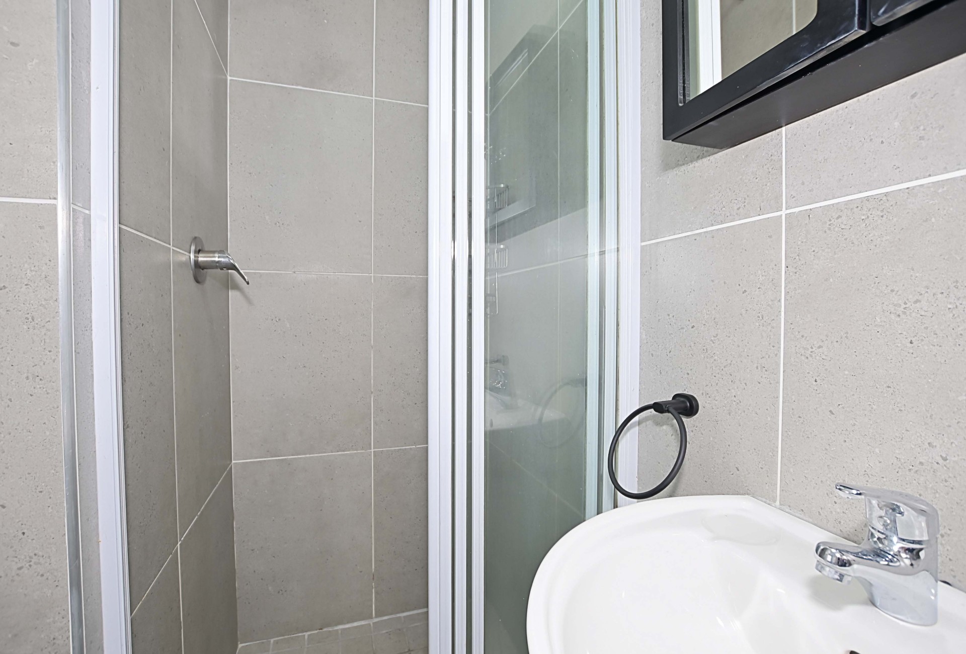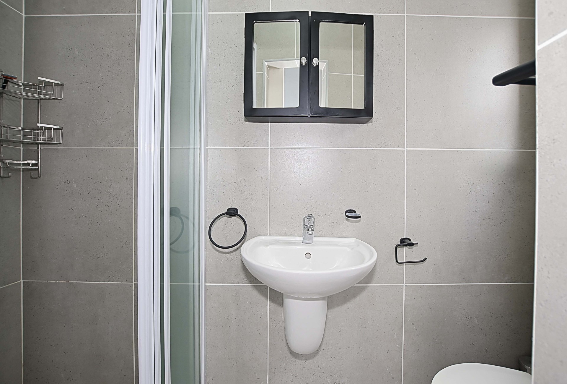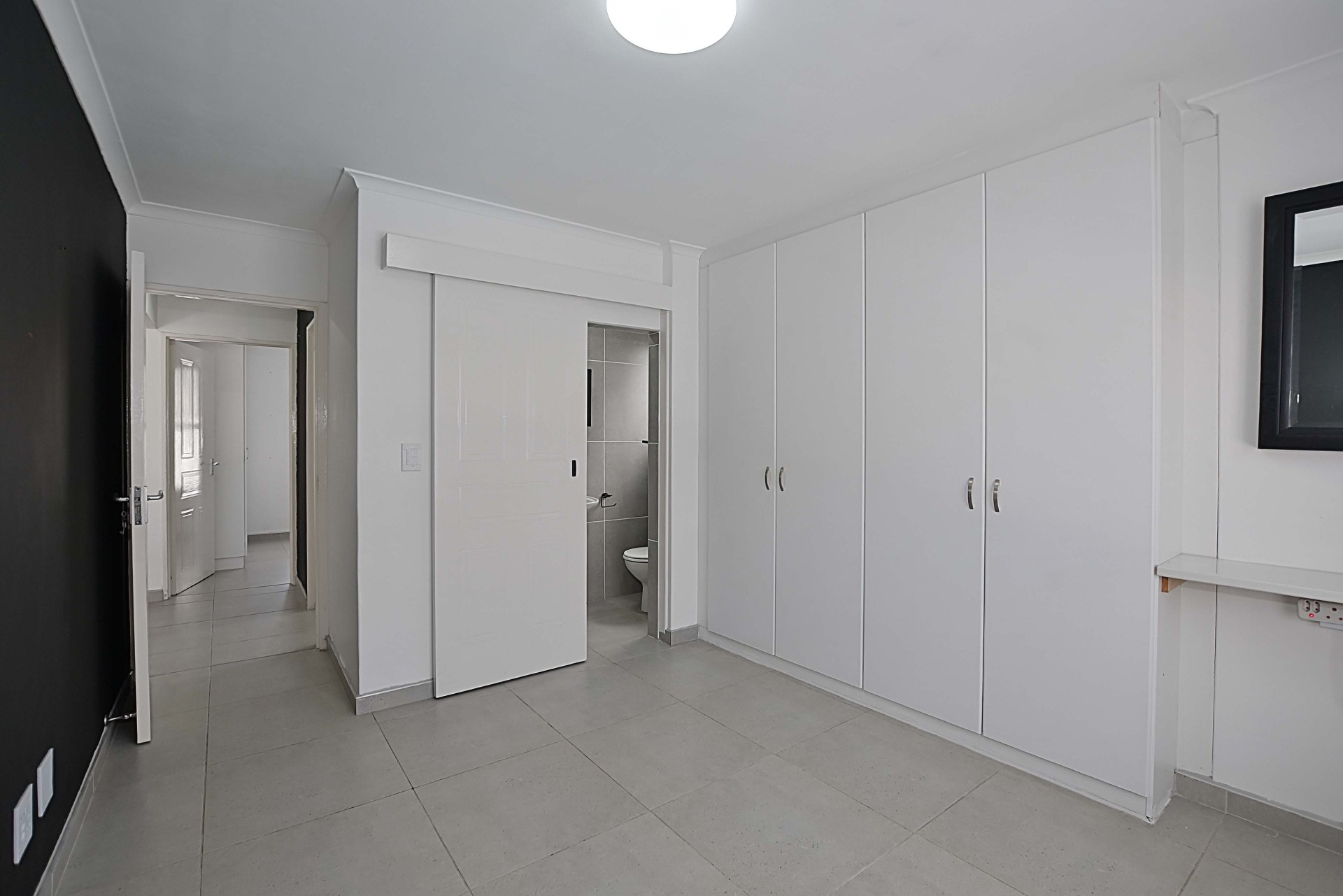 The large main bedroom offers ample built-in cupboards and an en-suite bathroom with a shower, toilet, and basin. The second bedroom is also a good size with built-in cupboards, and the family bathroom features a bath, toilet, and basin.