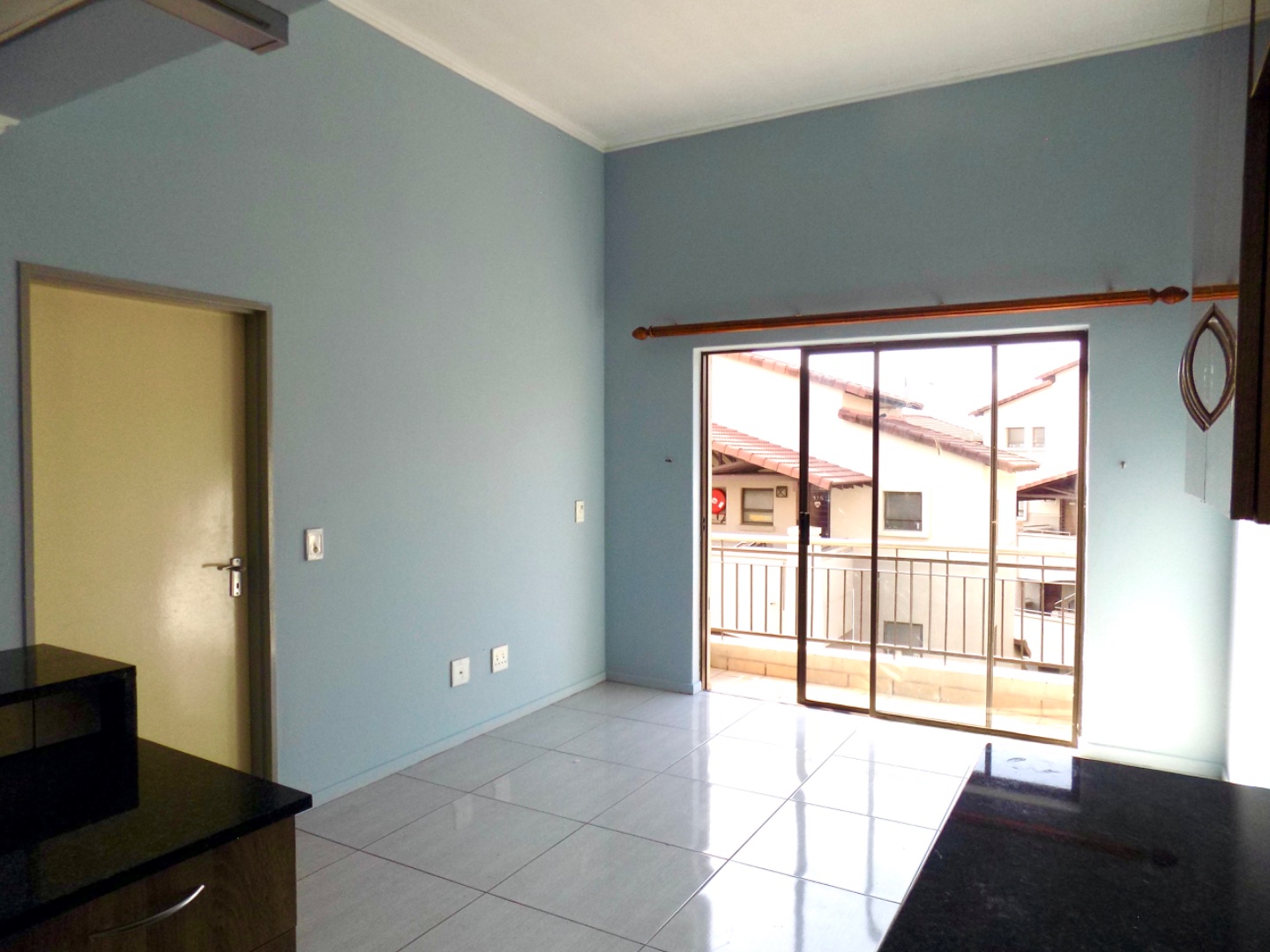 The property offers an open plan lounge fitted with porcelain tiles with sliders to a spacious balcony. The open plan dining area is located between the kitchen and lounge and offering views of the two areas.