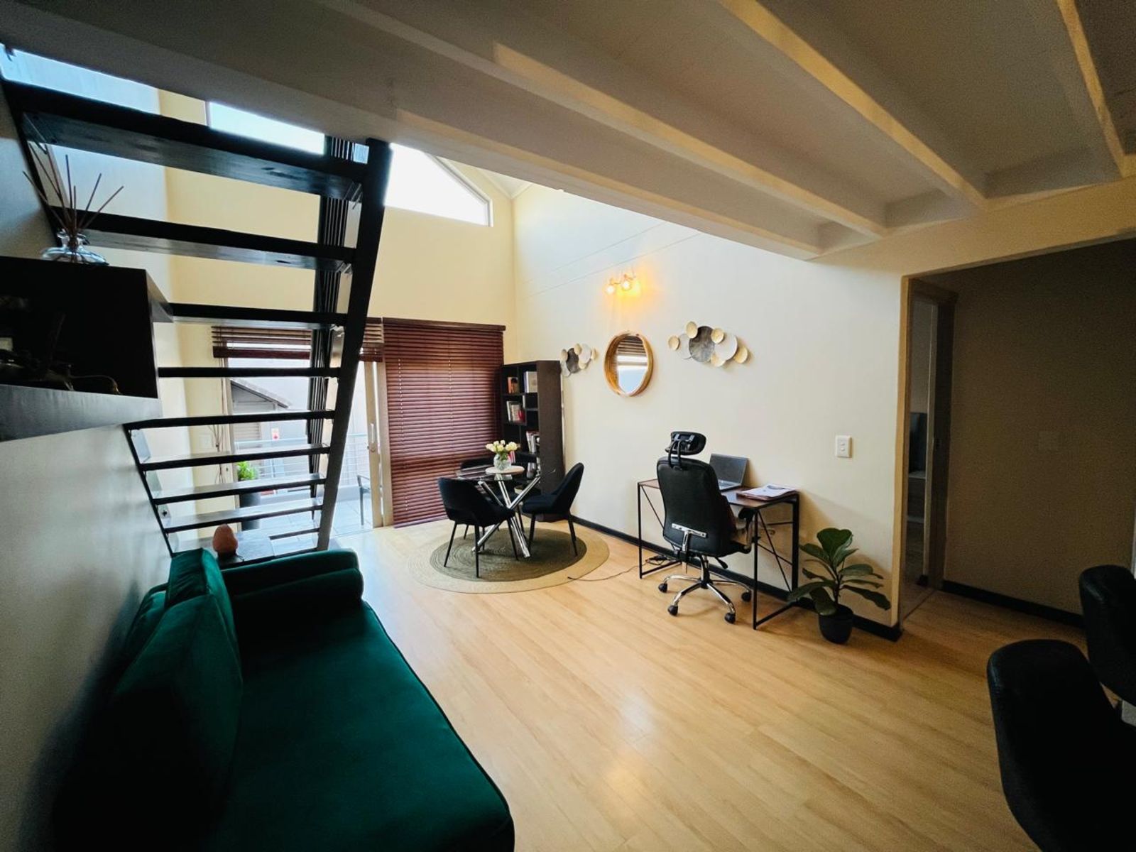 The double-volume loft design enhances natural light and creates a spacious, airy feel. The upstairs loft area offers versatility — perfect as a bedroom, home office, or relaxation zone.