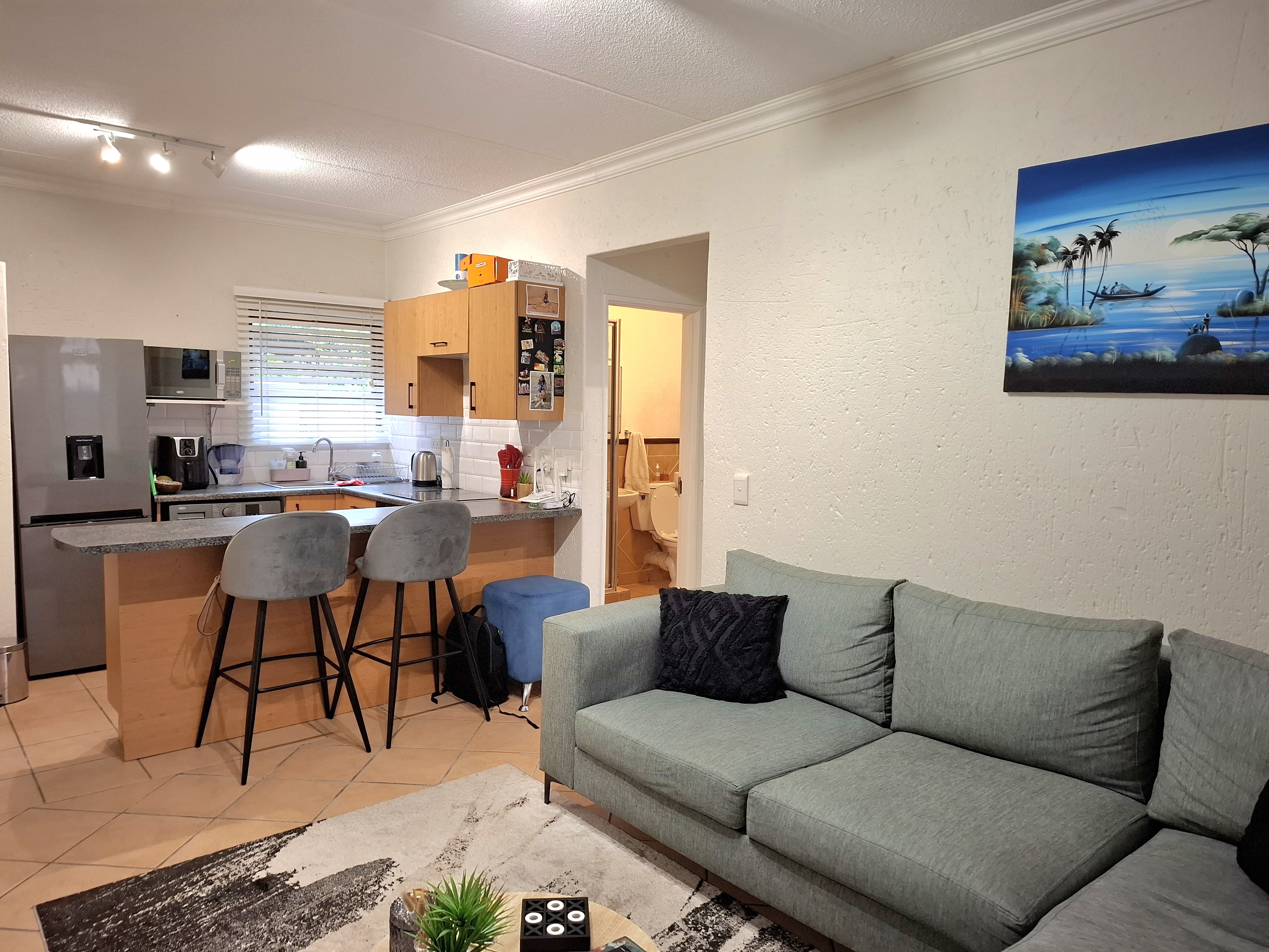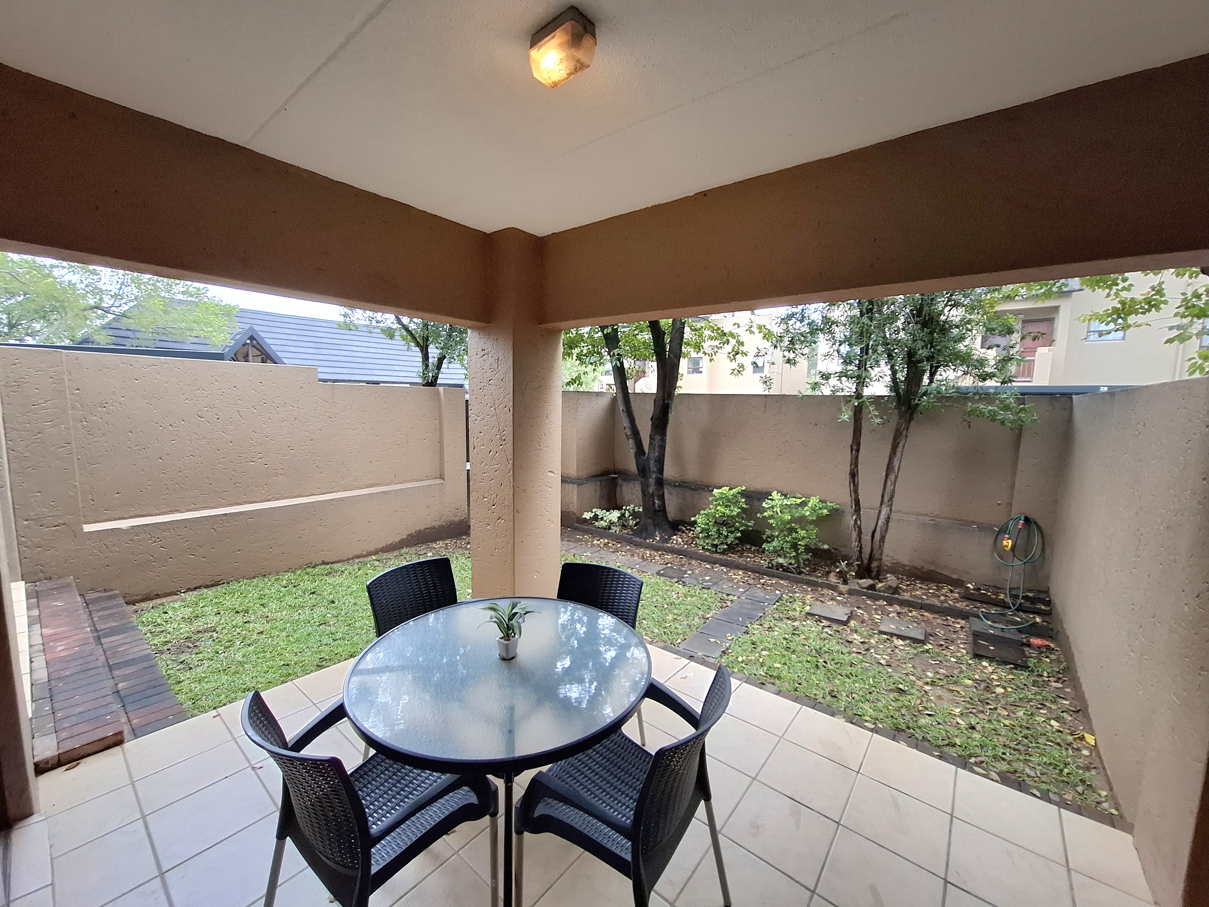 Come view, Let's Chat! about this 52 sq m in size. Garden unit. 24/7 guarded security. Offering: Open plan kitchen, space for 1 undercounter appliance, electric stove, 1 bedroom with built-in cupboards, leading out to your private garden, 1 full bathroom (shower and tub), Spacious living room stepping out to your covered patio and garden, Communal pools, clubhouses and tennis court. Walk to the shopping centre and restaurants.