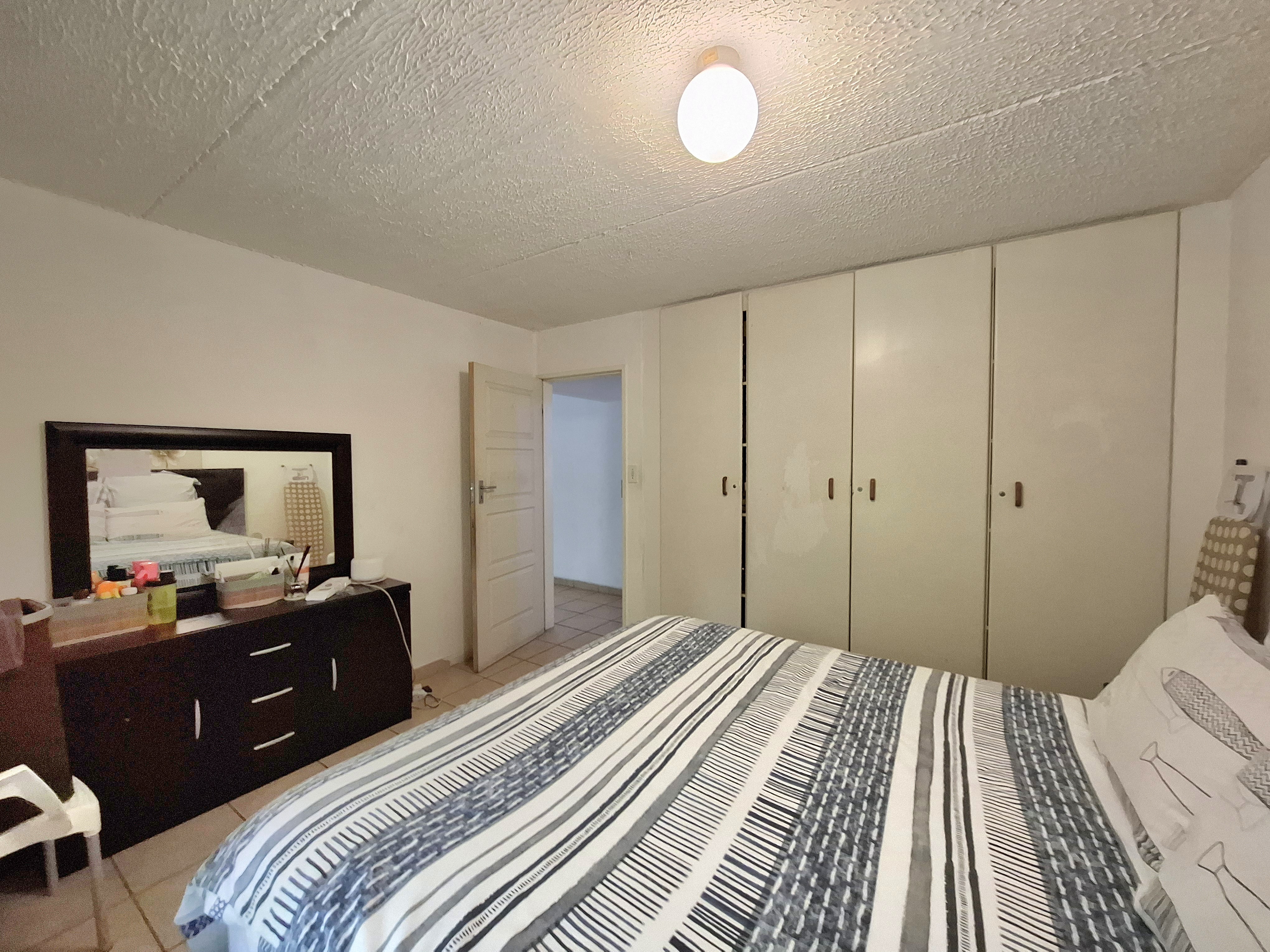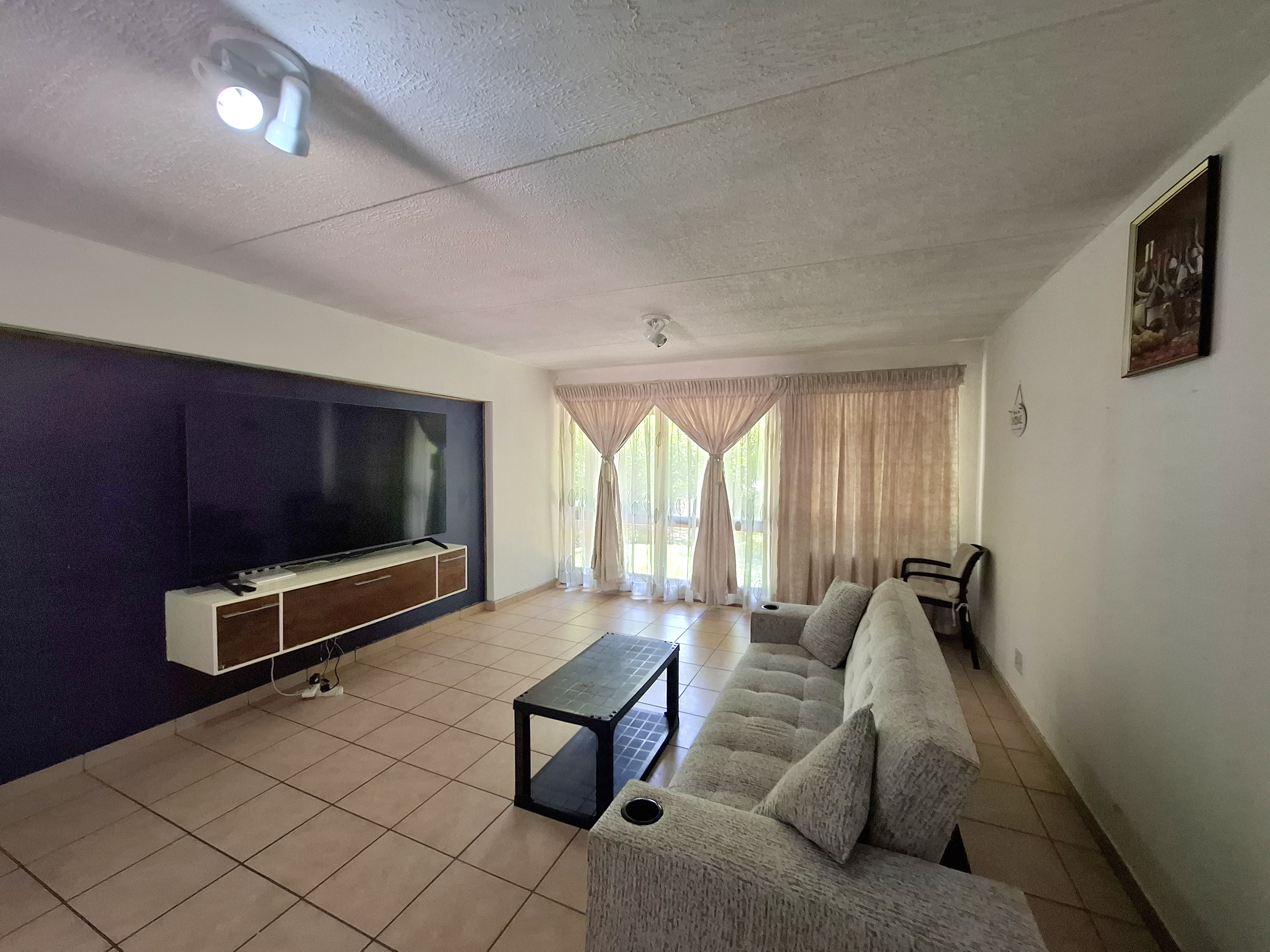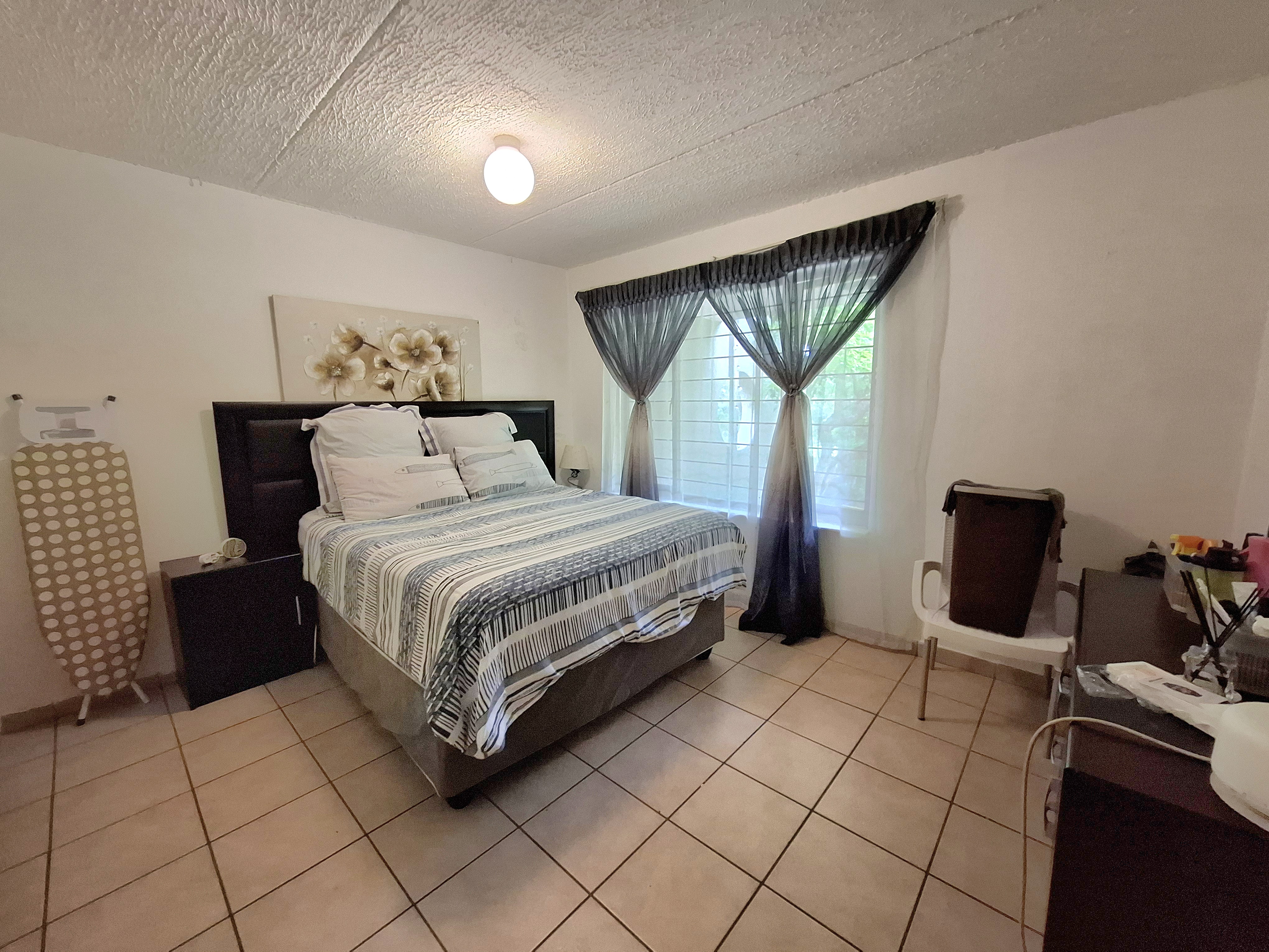 Step into comfort with this inviting 2-bedroom, 1-bathroom home featuring both a shower and bathtub. An open-plan kitchen with a convenient serve-through hatch flows into the spacious dining and living area—perfect for easy entertaining. The living room leads out to a peaceful private garden, ideal for relaxing mornings or cozy evenings. The kitchen includes a double sink, space for one under-counter appliance, room for a fridge, and an electric stove for effortless meal prep. Both bedrooms are generously sized, tiled throughout, and fitted with built-in cupboards for excellent storage. Costs: Levies and CoJ available on request. Estate Features: Sparkling communal pool Clubhouse with braai facilities Gym Kiddies play equipment and sandpit 24/7 guarded security and electric fencing Dedicated recycling bins This well-kept estate offers convenience, comfort, and peace of mind. Get in touch today—your new home is waiting!