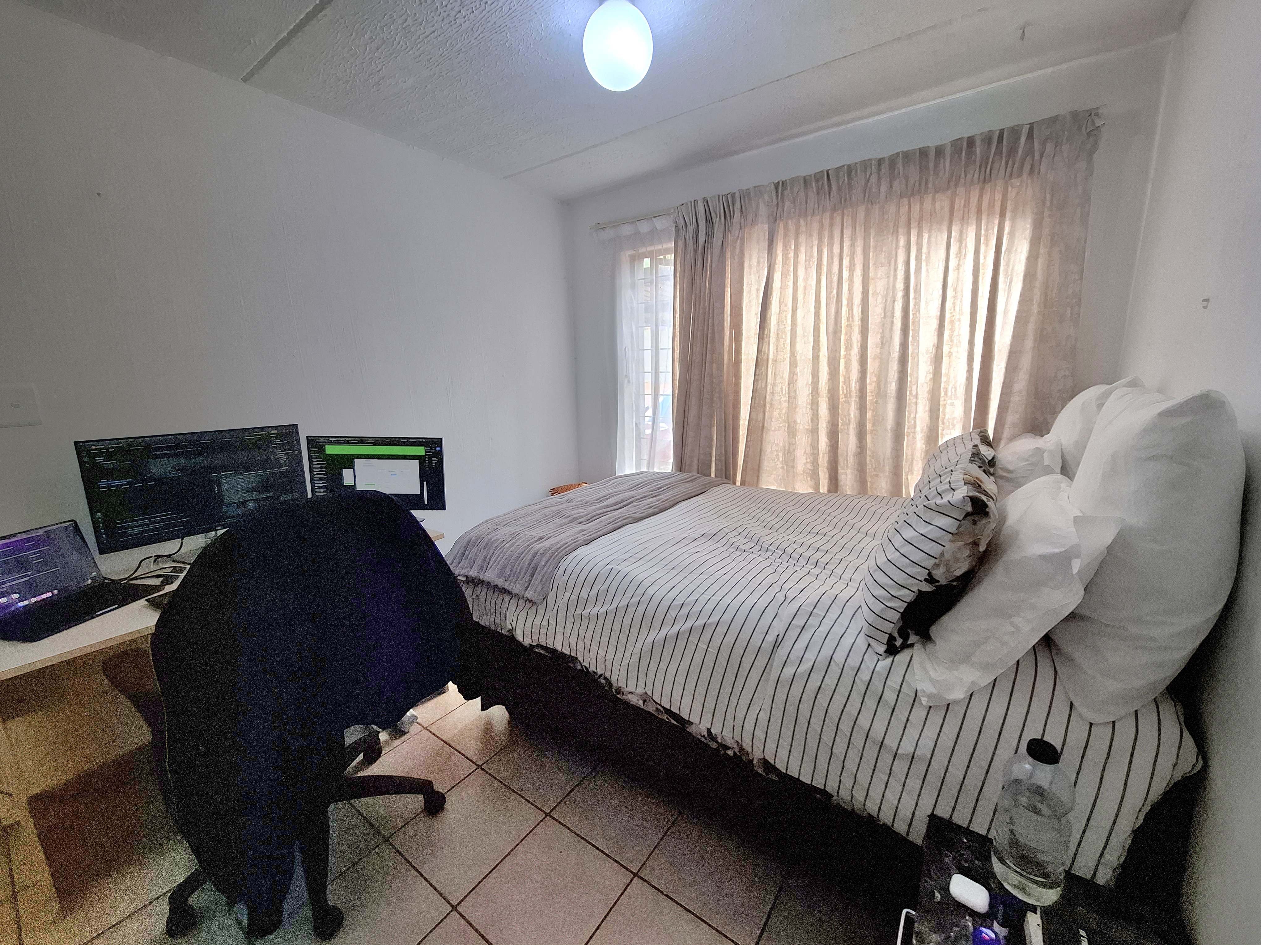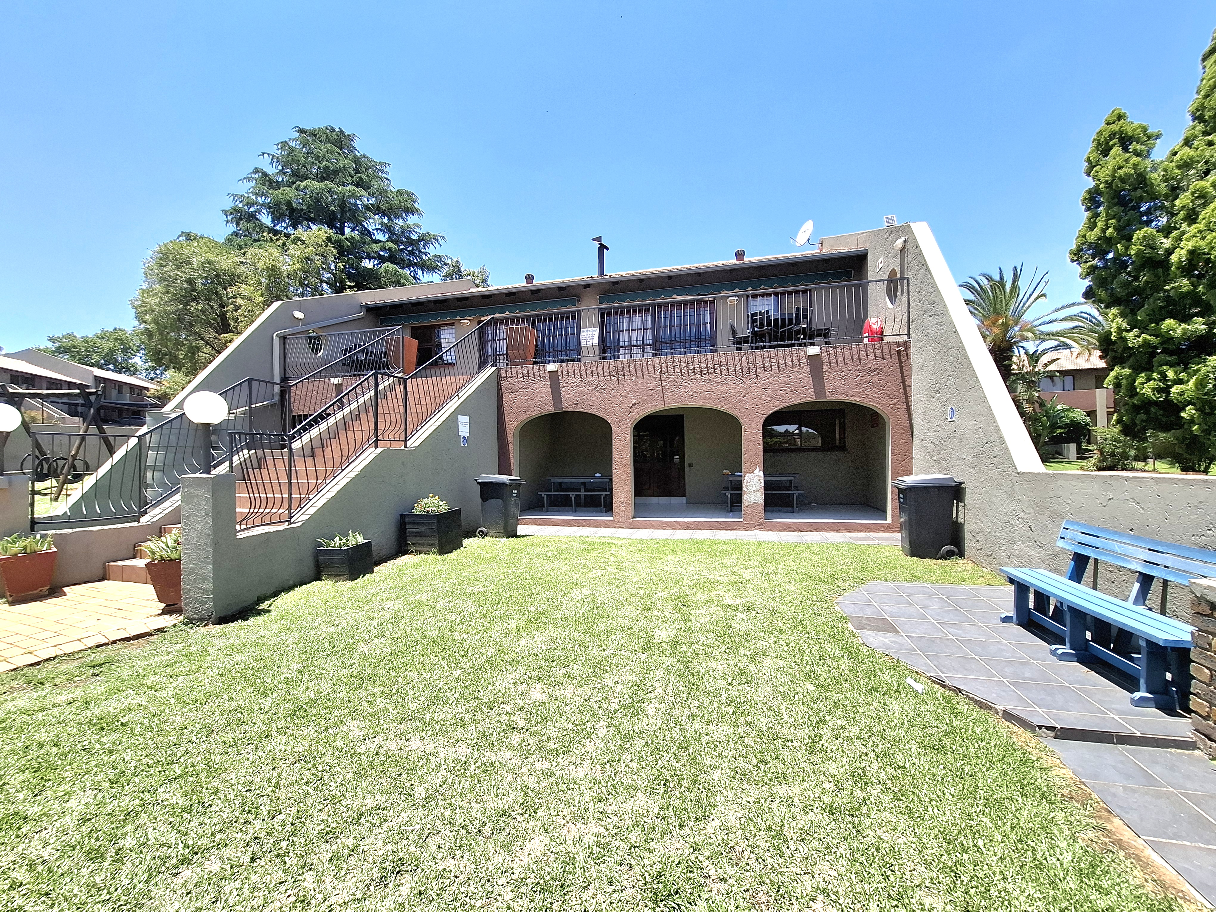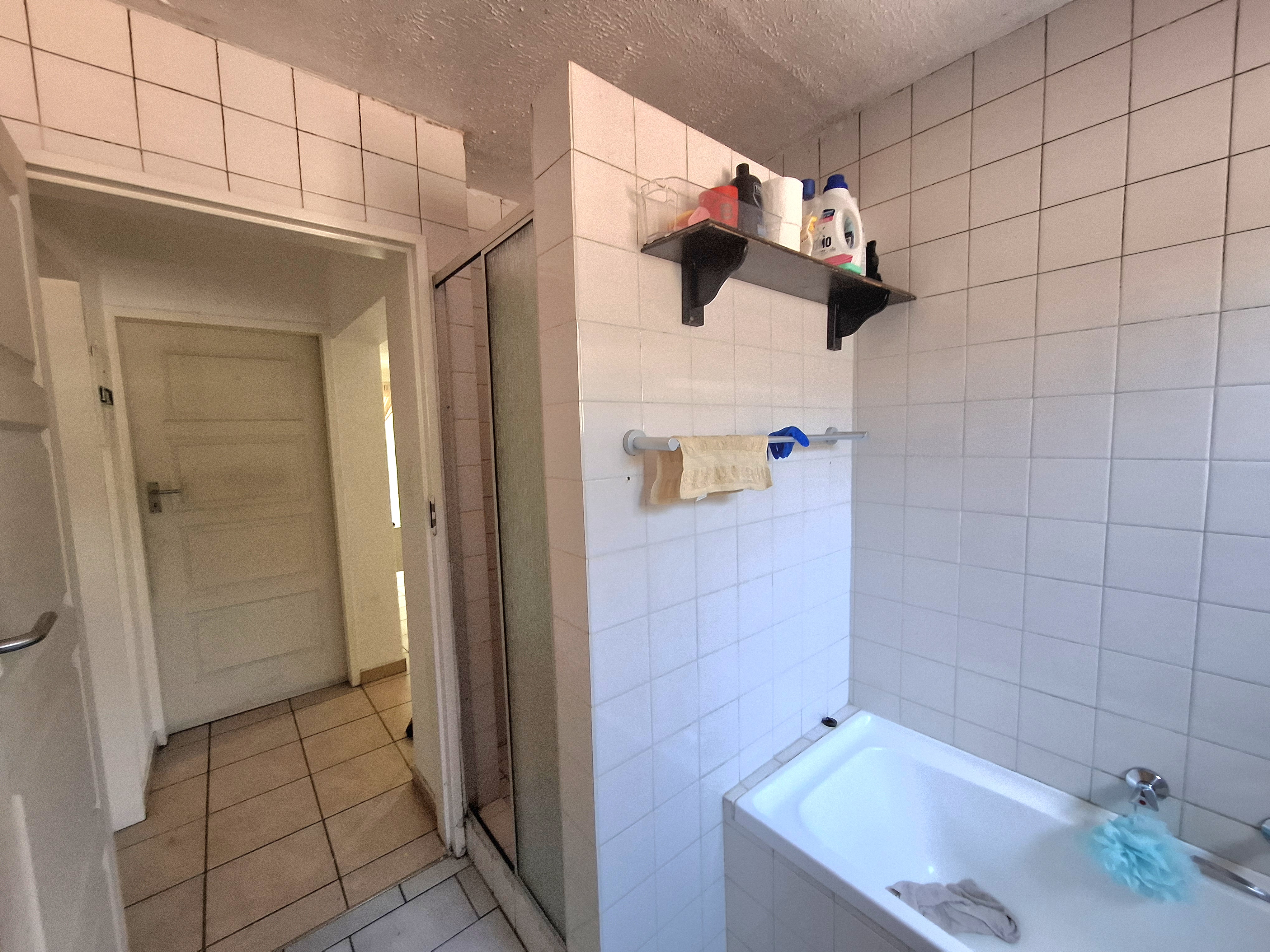 Step into comfort with this inviting 2-bedroom, 1-bathroom home featuring both a shower and bathtub. An open-plan kitchen with a convenient serve-through hatch flows into the spacious dining and living area—perfect for easy entertaining. The living room leads out to a peaceful private garden, ideal for relaxing mornings or cozy evenings. The kitchen includes a double sink, space for one under-counter appliance, room for a fridge, and an electric stove for effortless meal prep. Both bedrooms are generously sized, tiled throughout, and fitted with built-in cupboards for excellent storage. Costs: Levies and CoJ available on request. Estate Features: Sparkling communal pool Clubhouse with braai facilities Gym Kiddies play equipment and sandpit 24/7 guarded security and electric fencing Dedicated recycling bins This well-kept estate offers convenience, comfort, and peace of mind. Get in touch today—your new home is waiting!