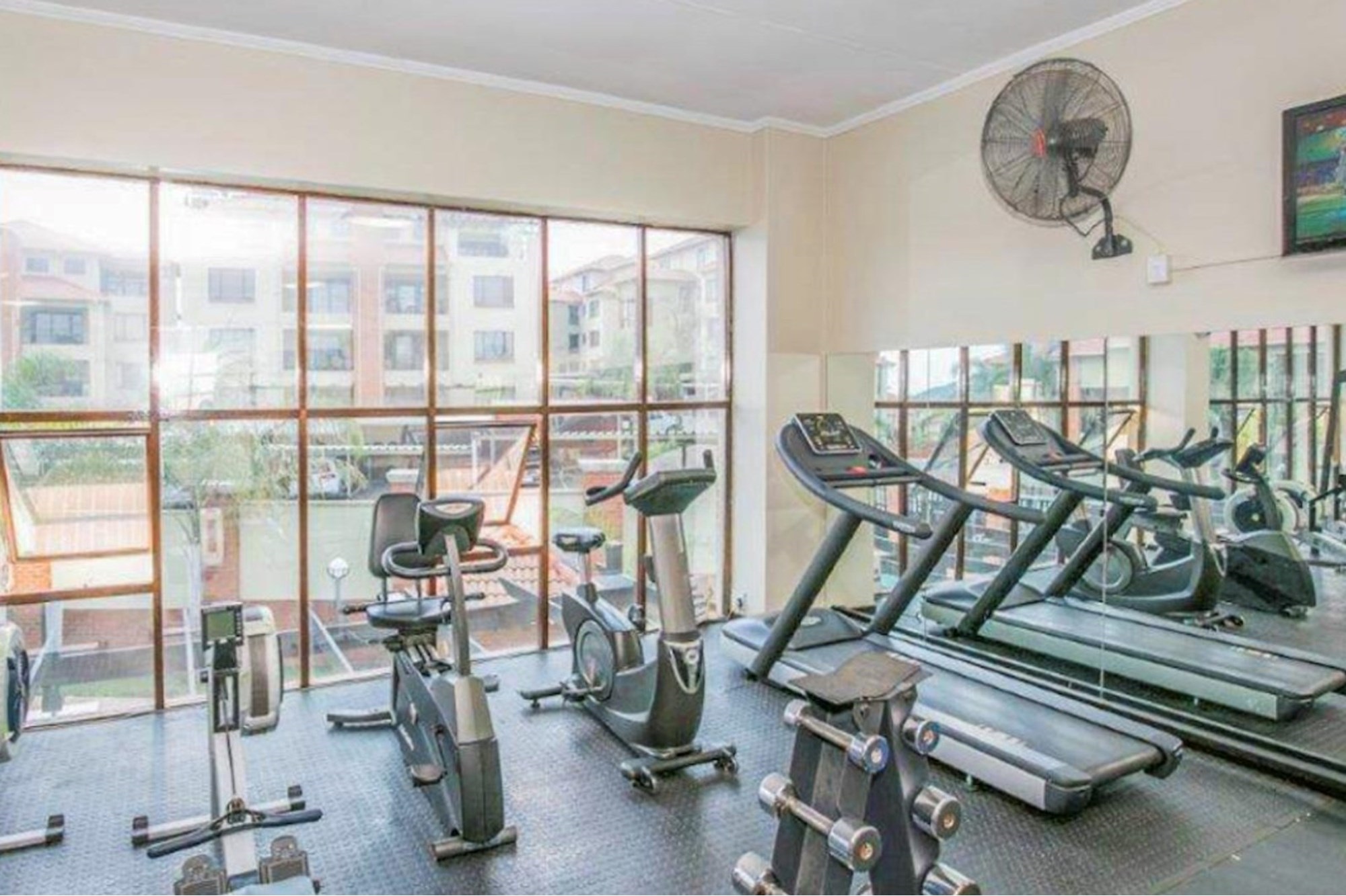 Swimming pool, fully equipped gym, squash courts, creche/play area