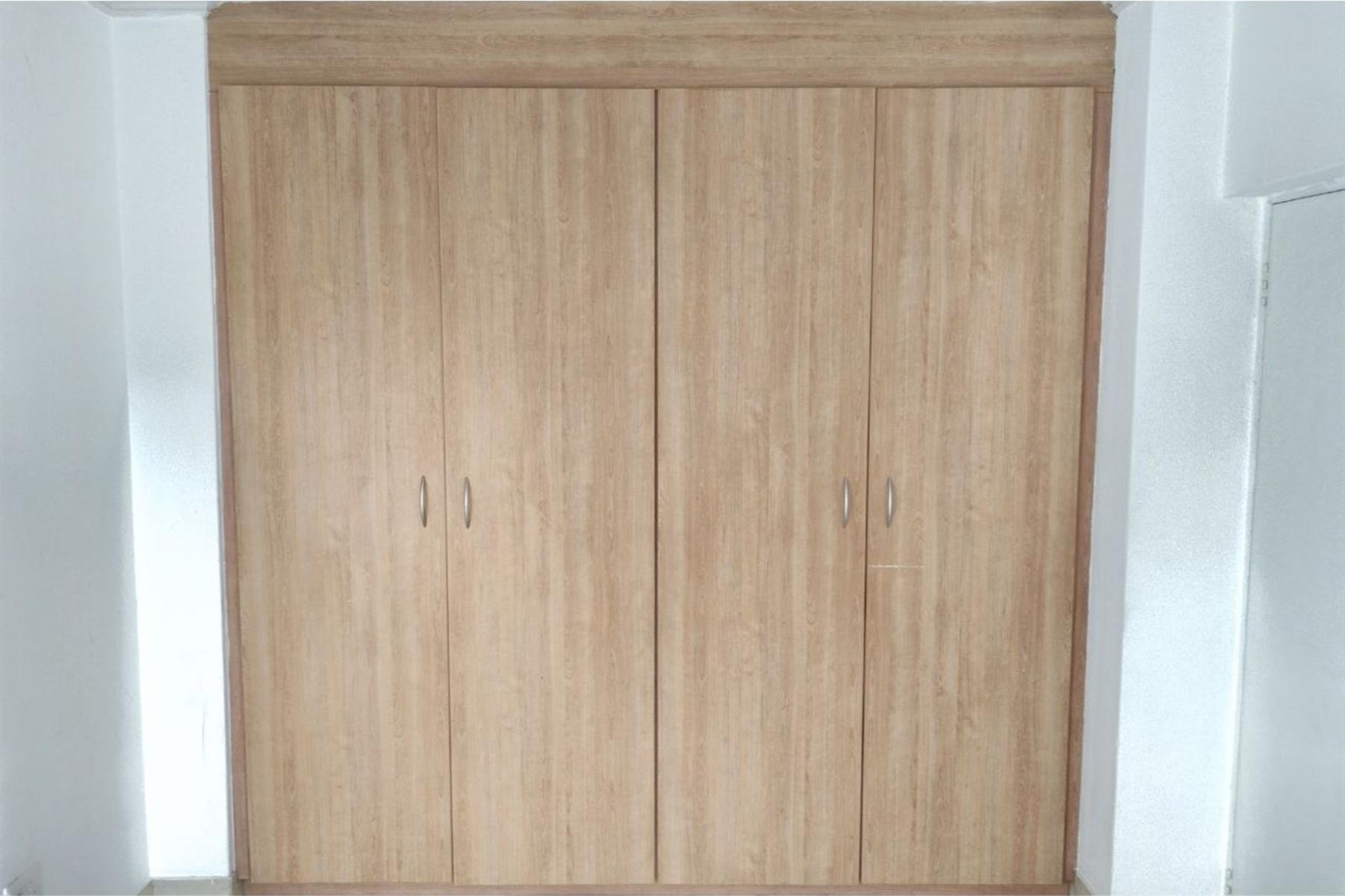 This bright and spacious open-plan kitchen and family room features a balcony. The kitchen is equipped with a double sink, ample cupboard space, granite countertops, and has room for one under-counter appliance as well as a fridge. The bedroom is large enough for a queen-size bed and offers plenty of built-in cupboards. The bathroom includes a generous-sized shower.