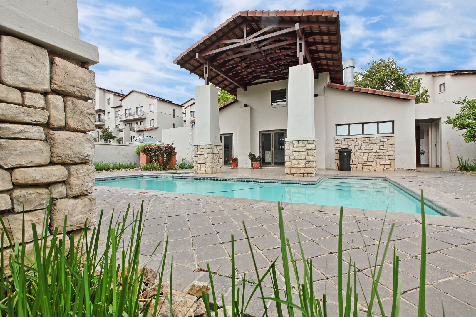 Owners and residents are welcome to enjoy the sparkling communal pool with sit down and take-out restaurant food available.