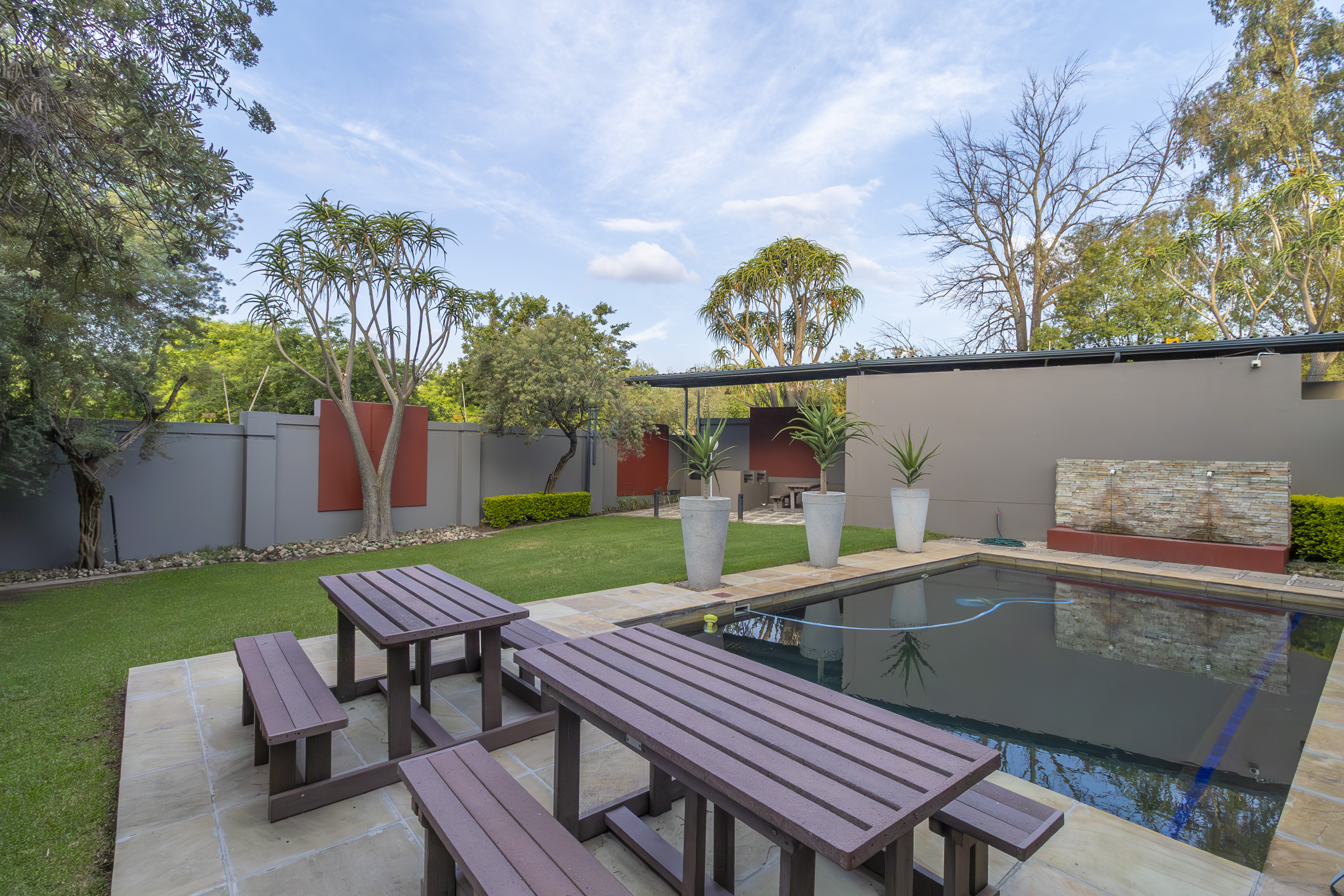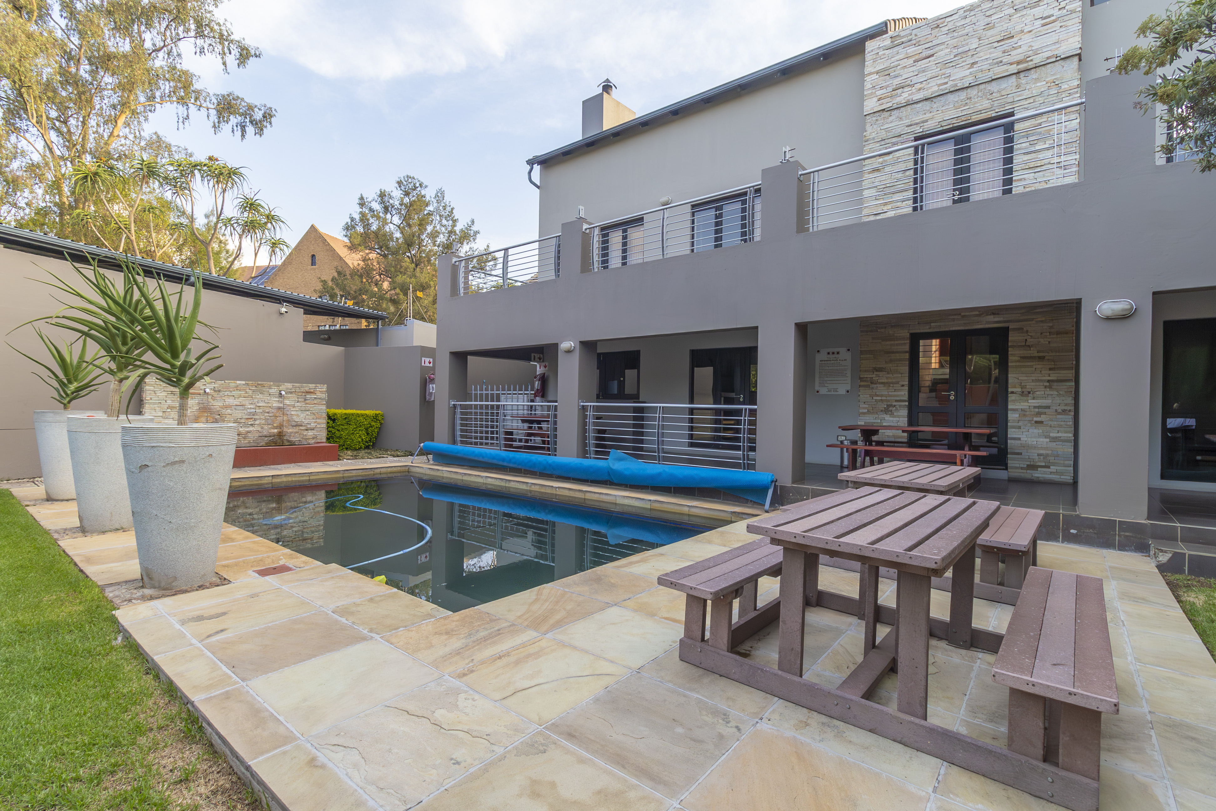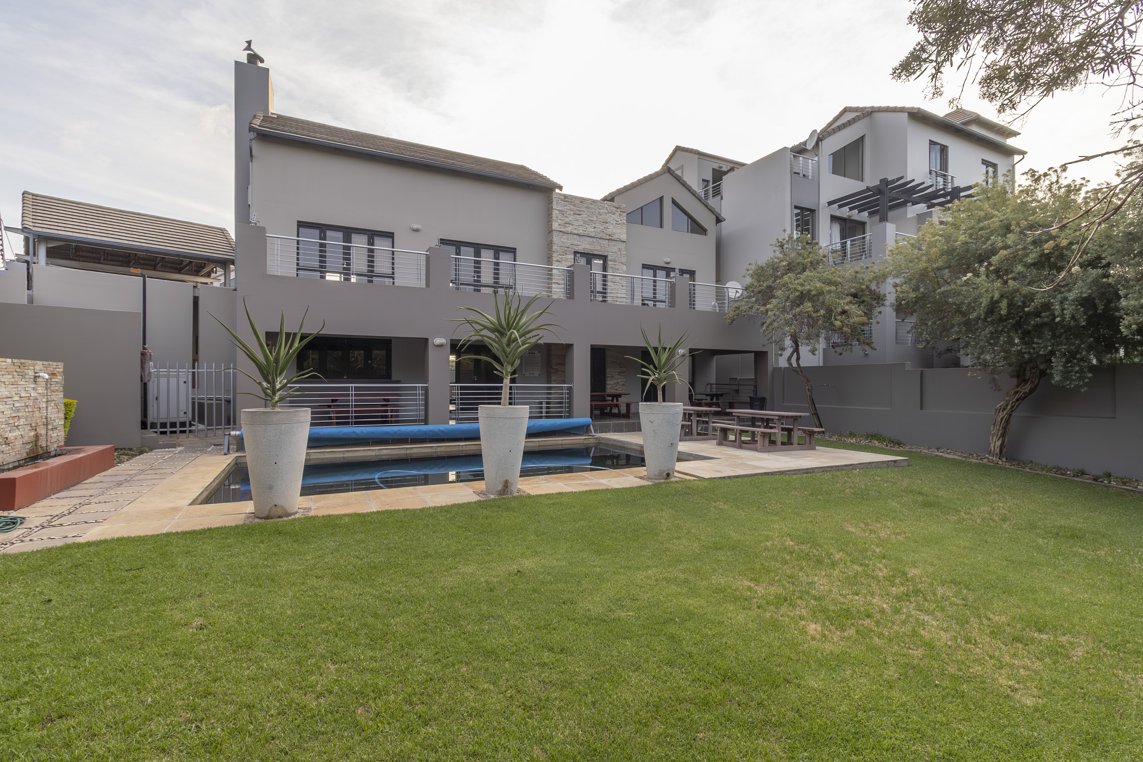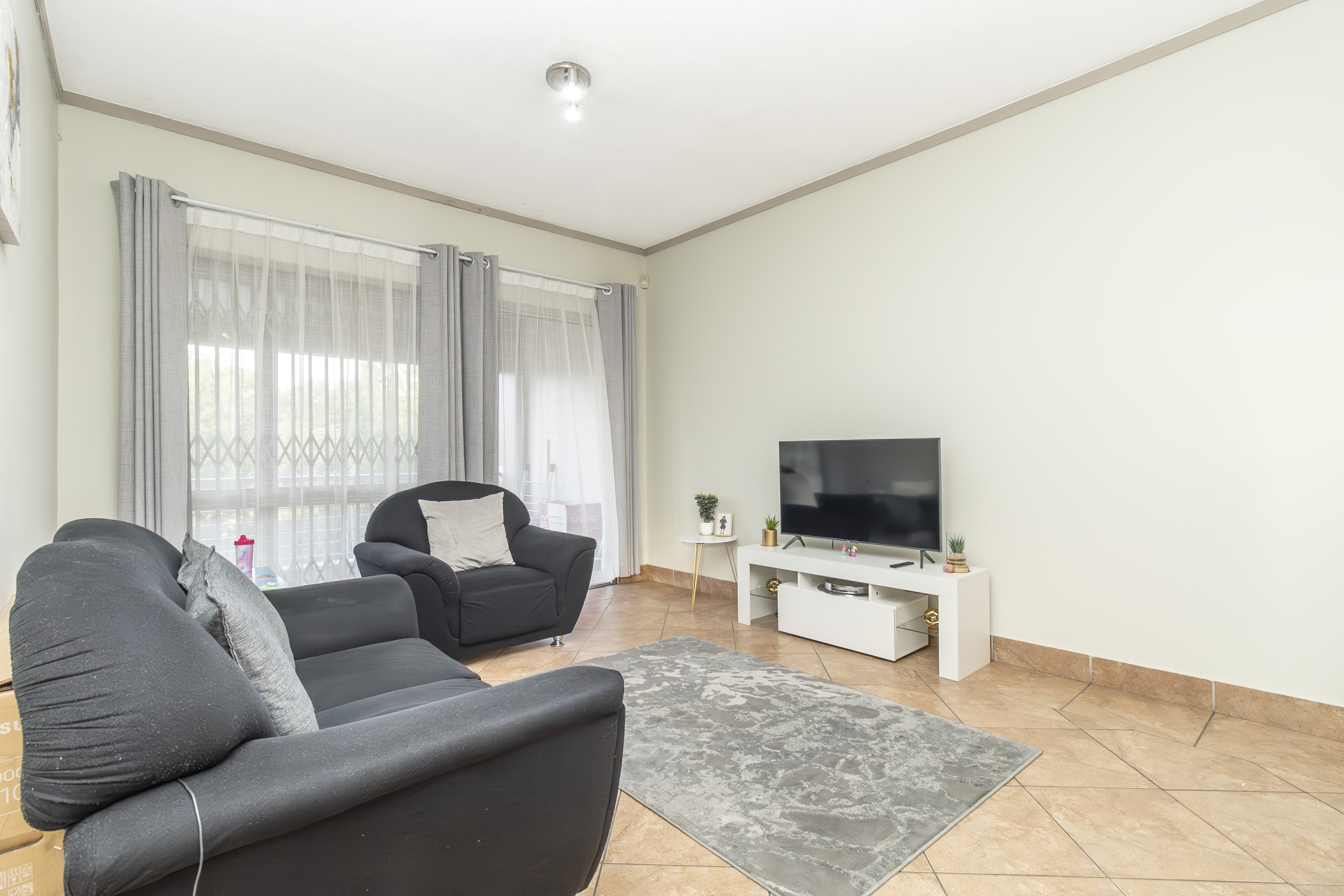 Open-plan kitchen that flows effortlessly into a cozy lounge and large private balcony with built in braai– just right for morning coffee or evening wine.