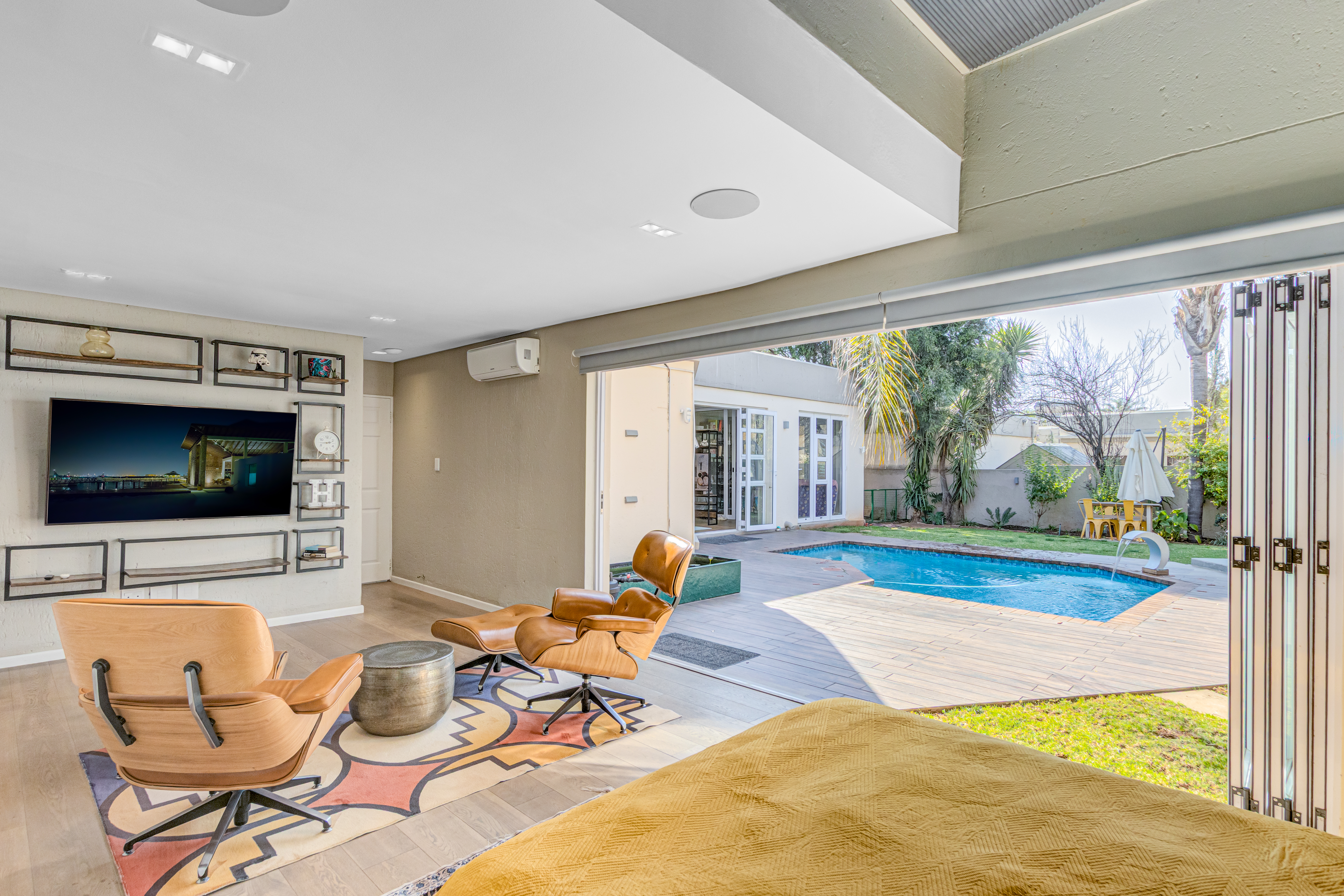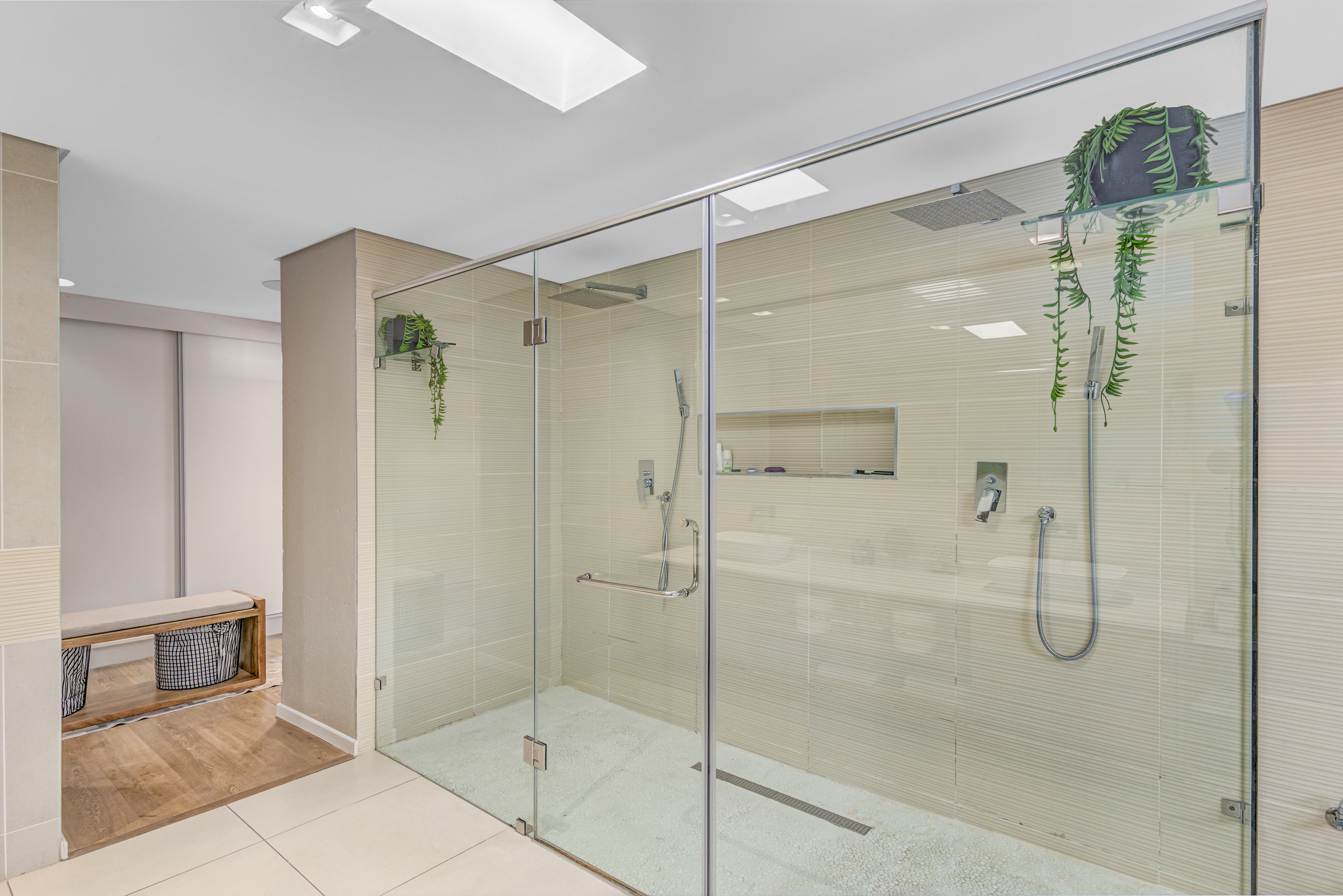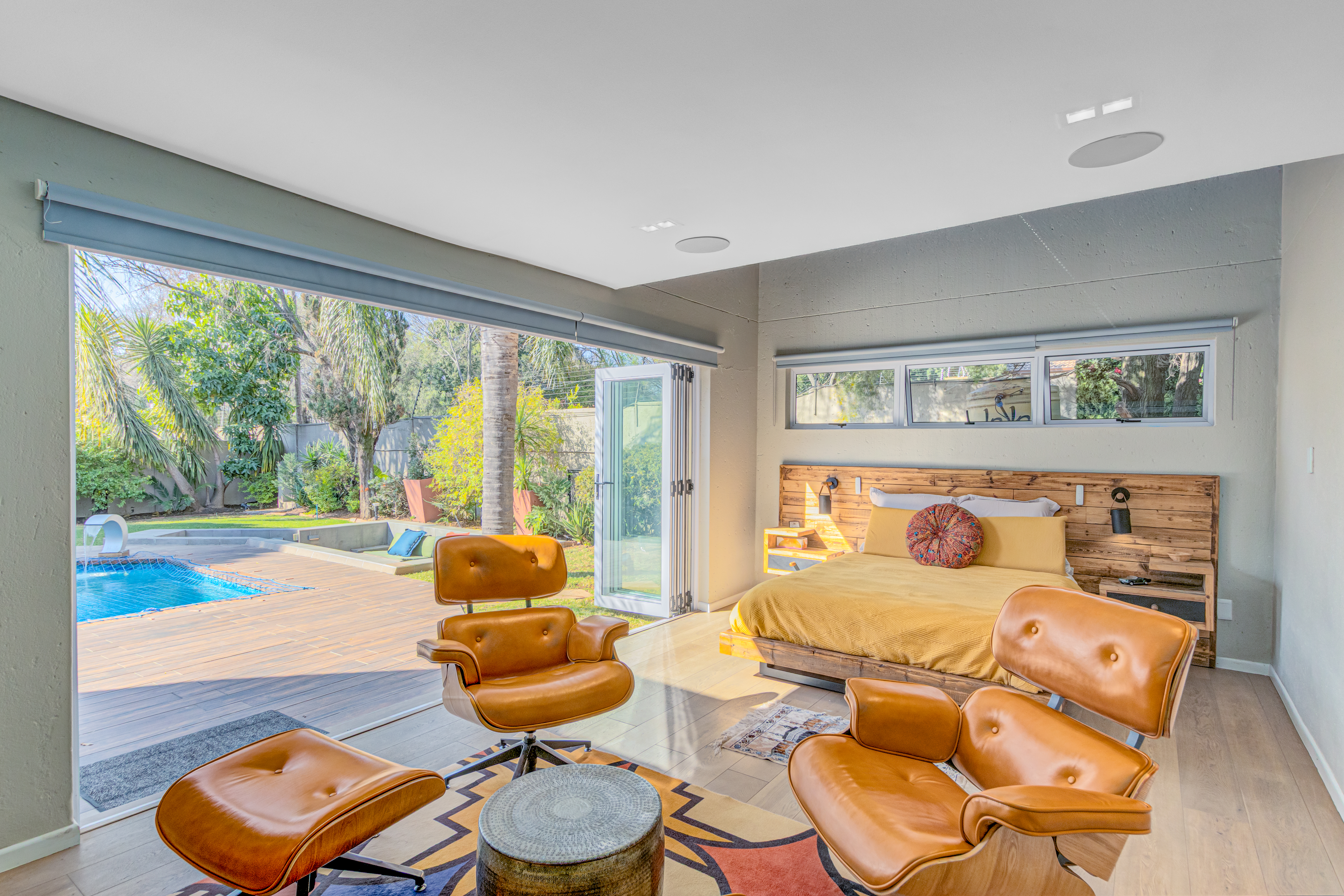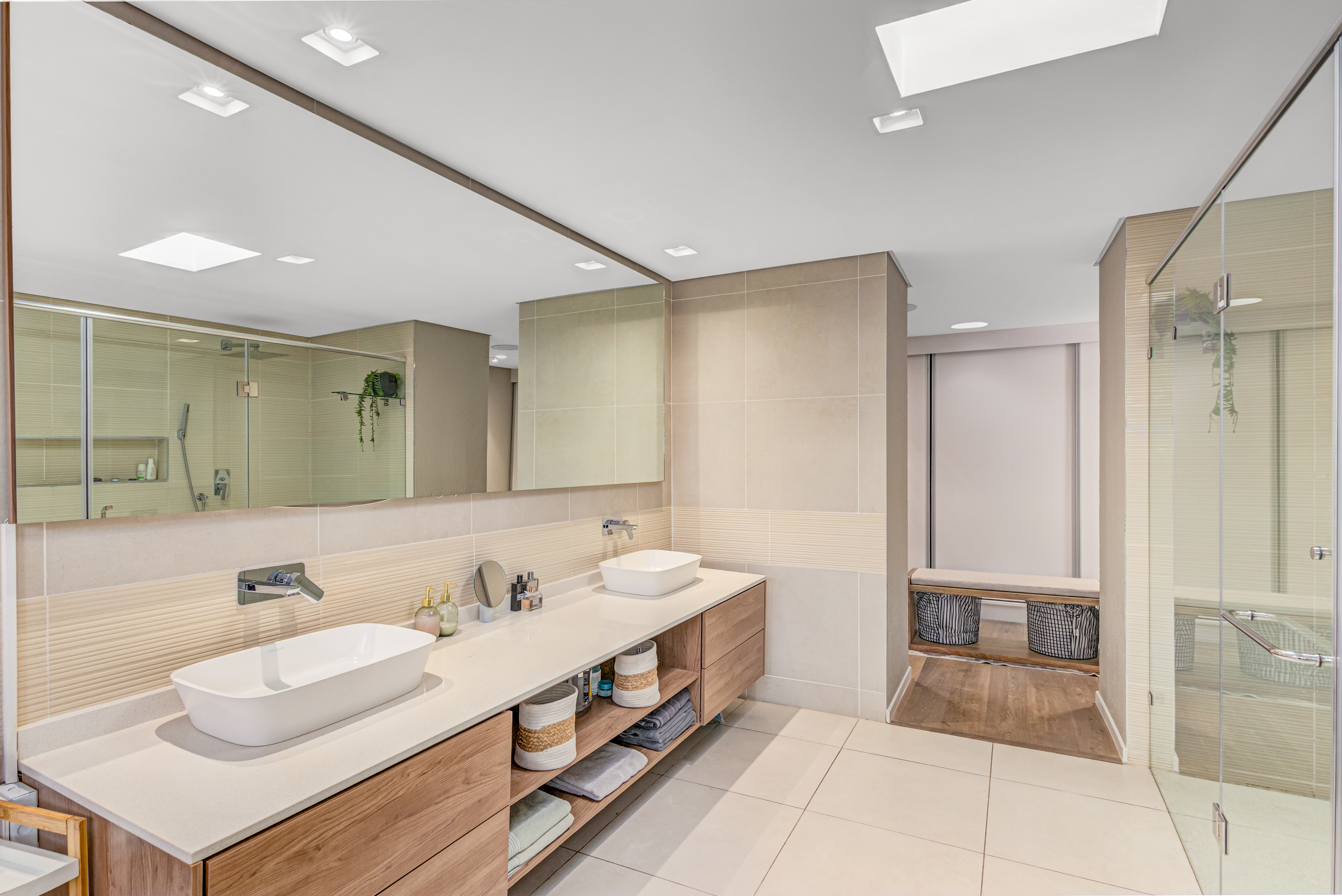 Luxurious Main Suite: A private retreat with skylight and stackable doors leading to the private pet-friendly garden.