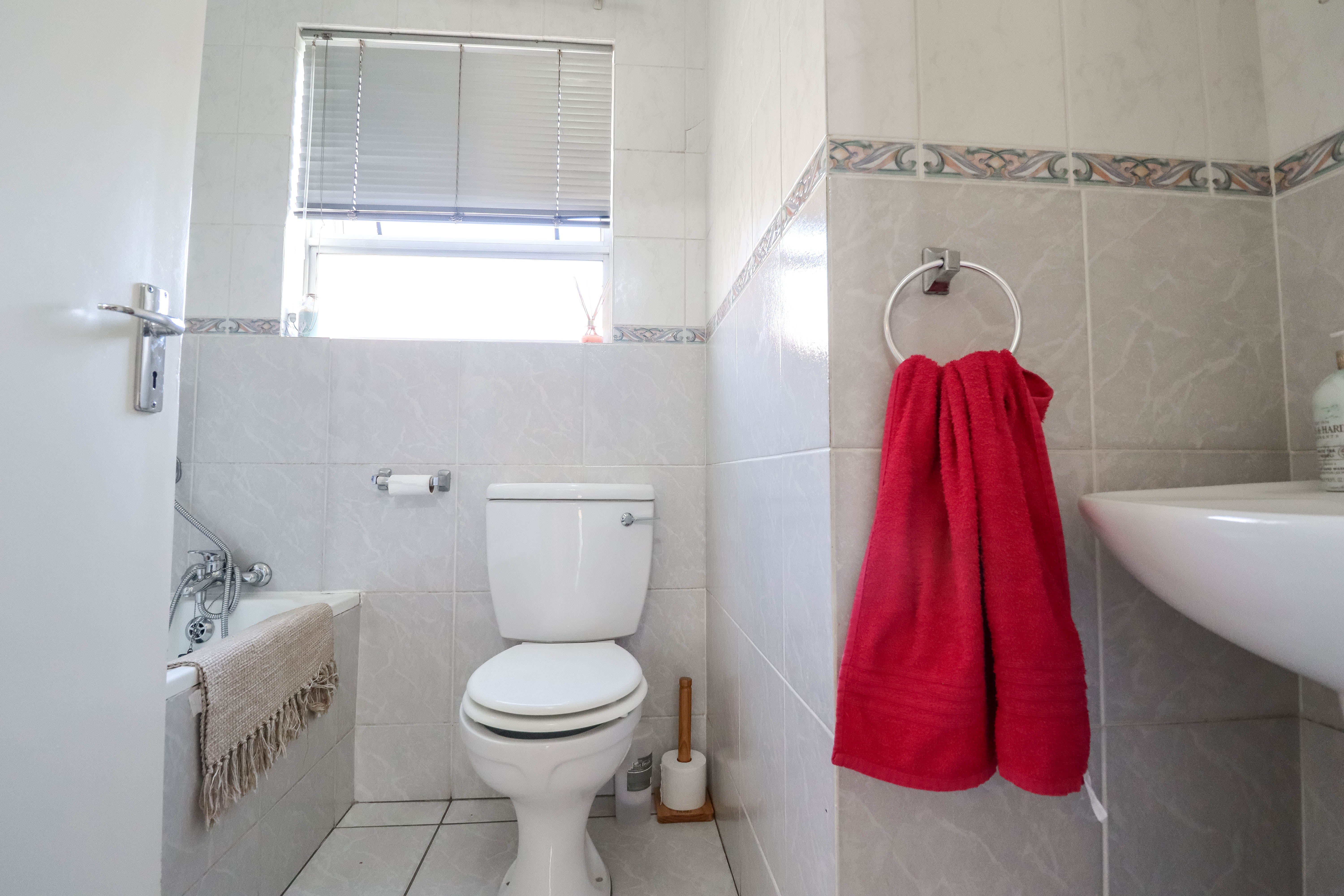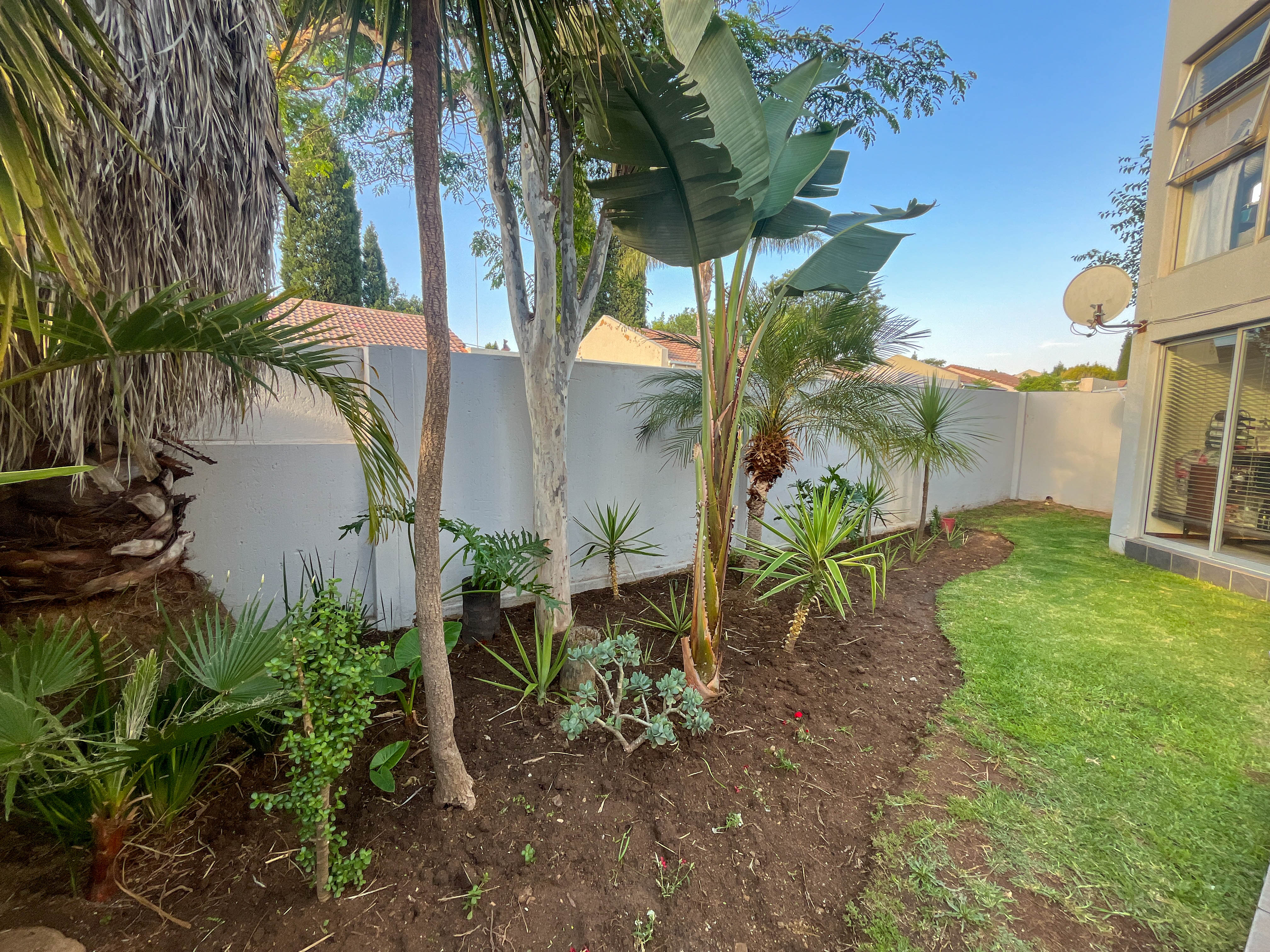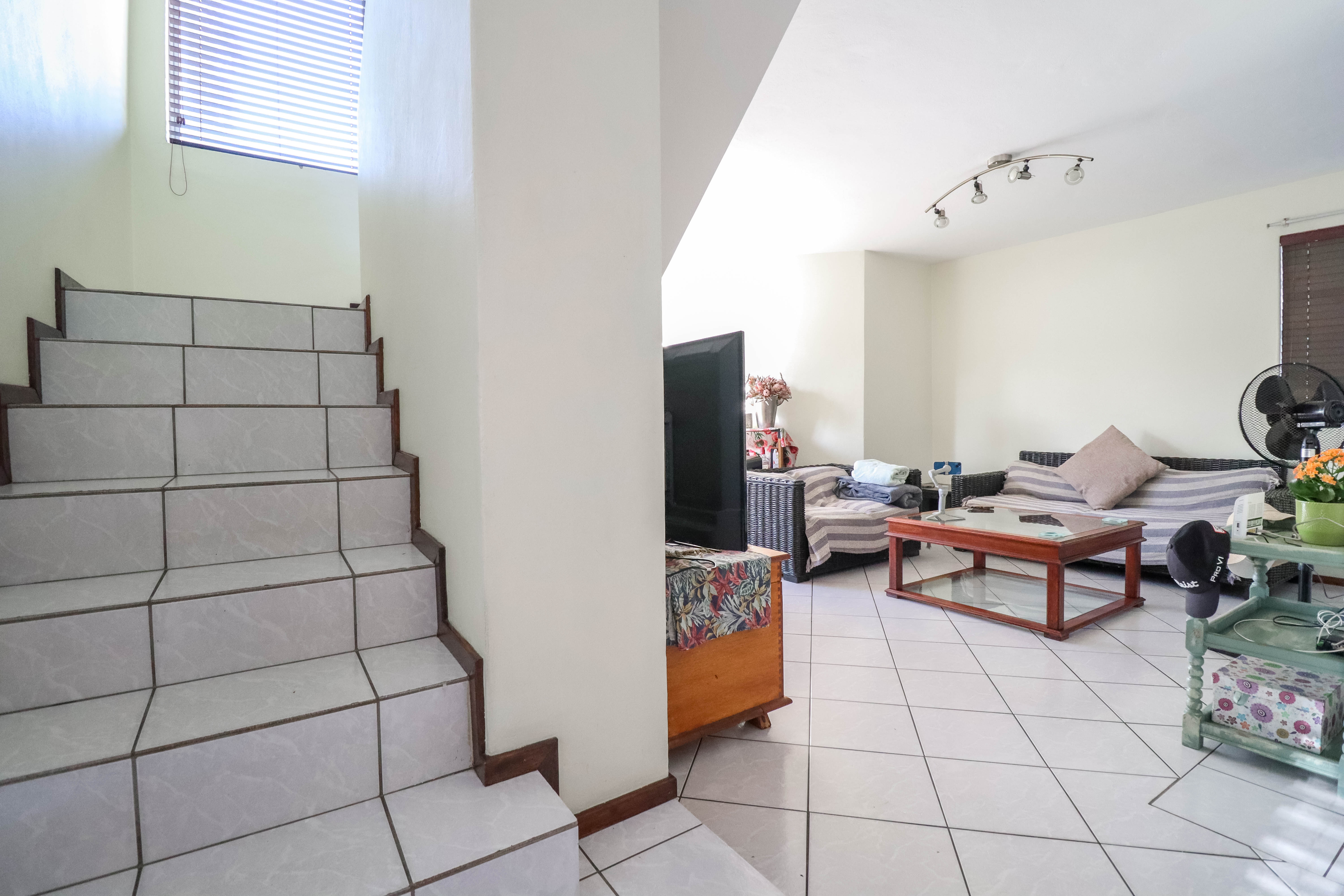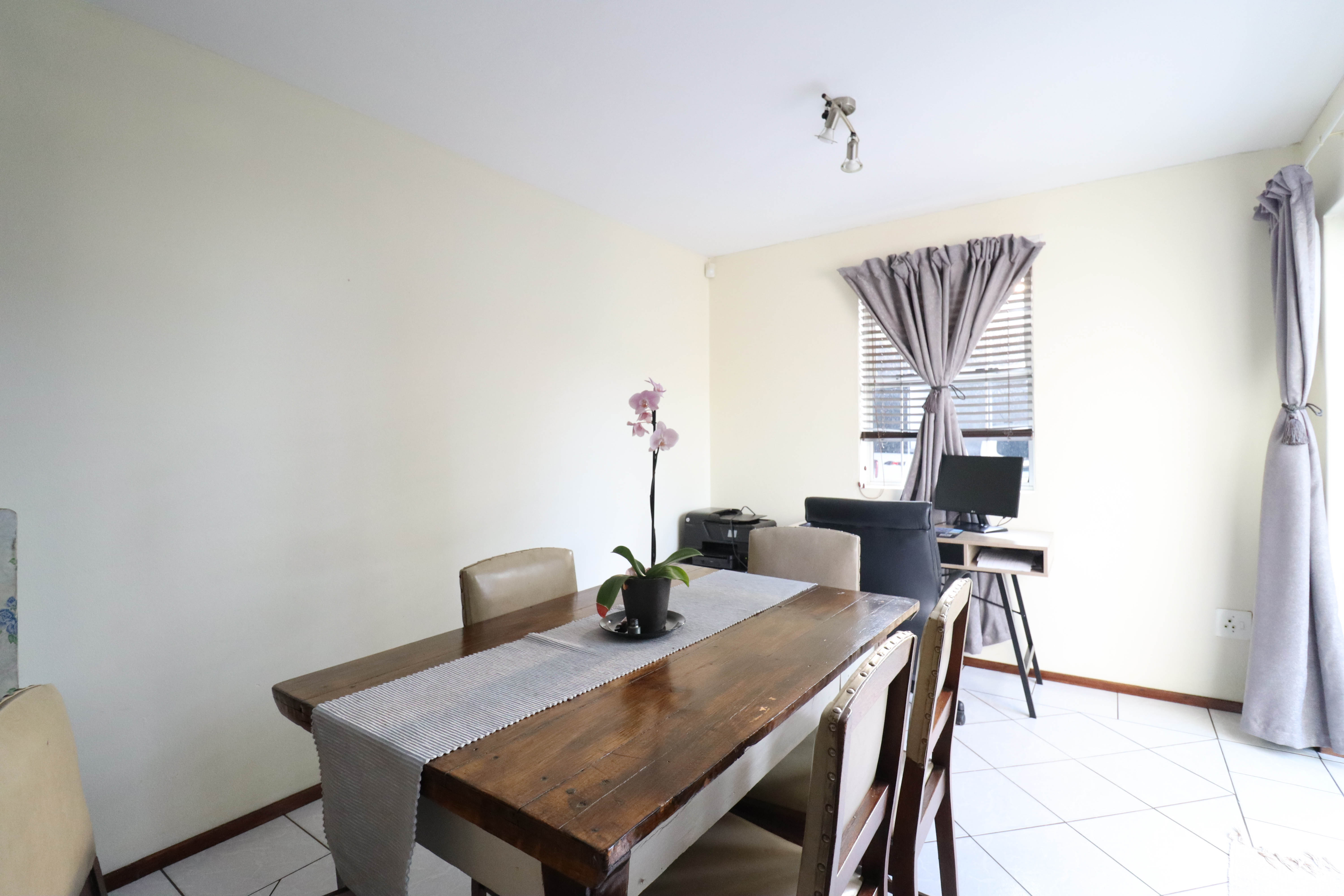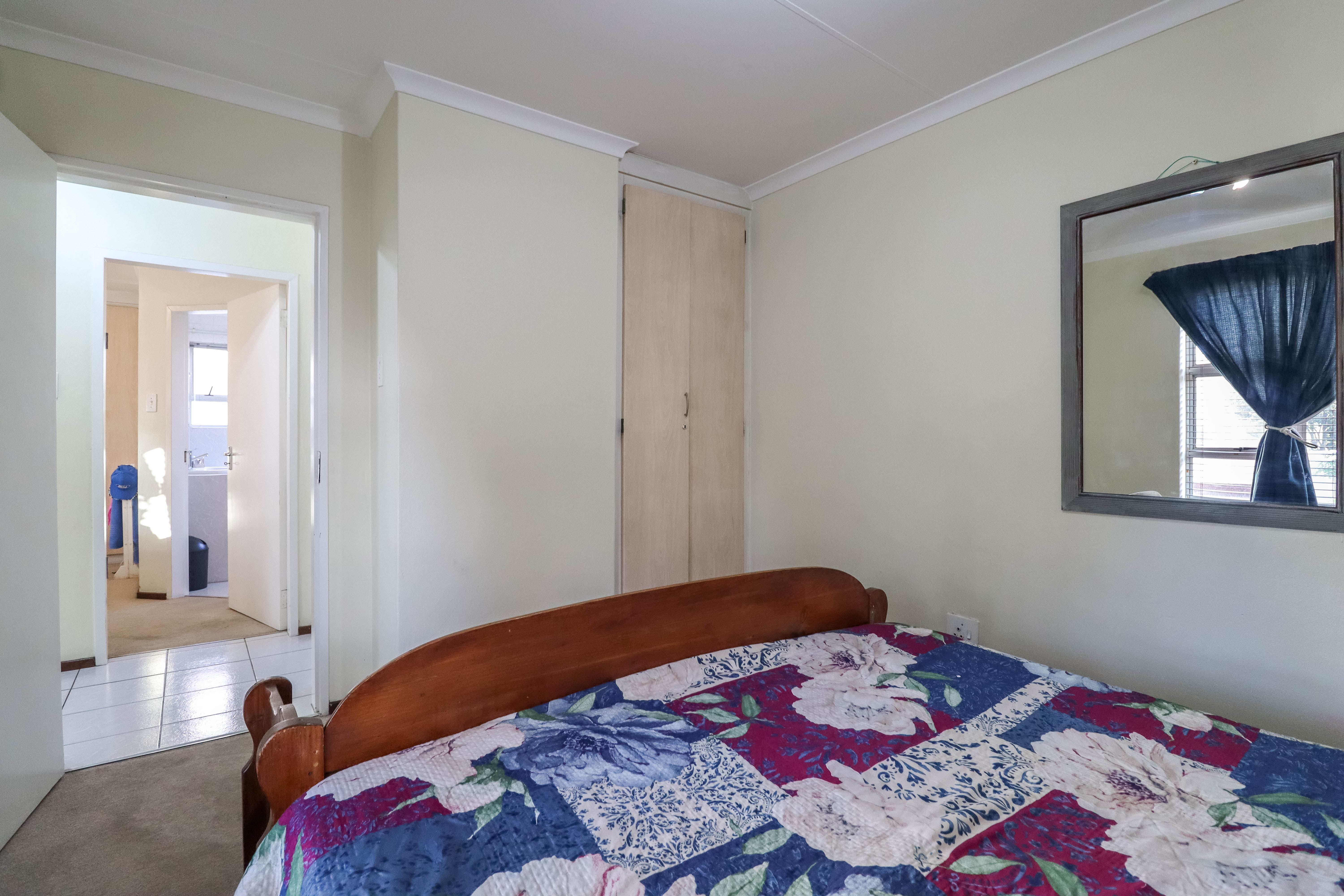 Beautiful two bedroomed cluster in a secure complex . Open plan tiled living and dining area, with sliders leading out to a private garden and open patio. Granite kitchen with built-in pantry cupboard and breakfast bar .Two bedrooms with ample built-in cupboards and two bathrooms (mes ) with oval tub and shower.