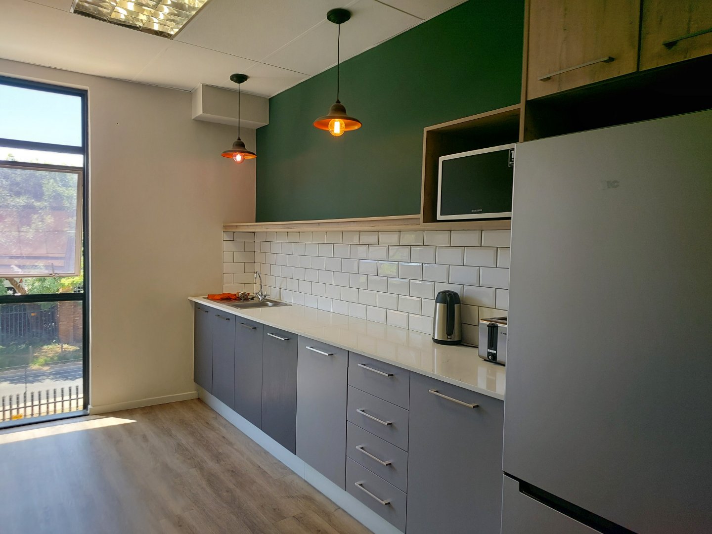 Upgrade your workspace with this well-appointed 88 sqm office in Sunninghill, designed to enhance your company’s presence. The unit offers a fresh, professional environment with soft flooring, generous natural illumination, and climate control for year-round comfort.