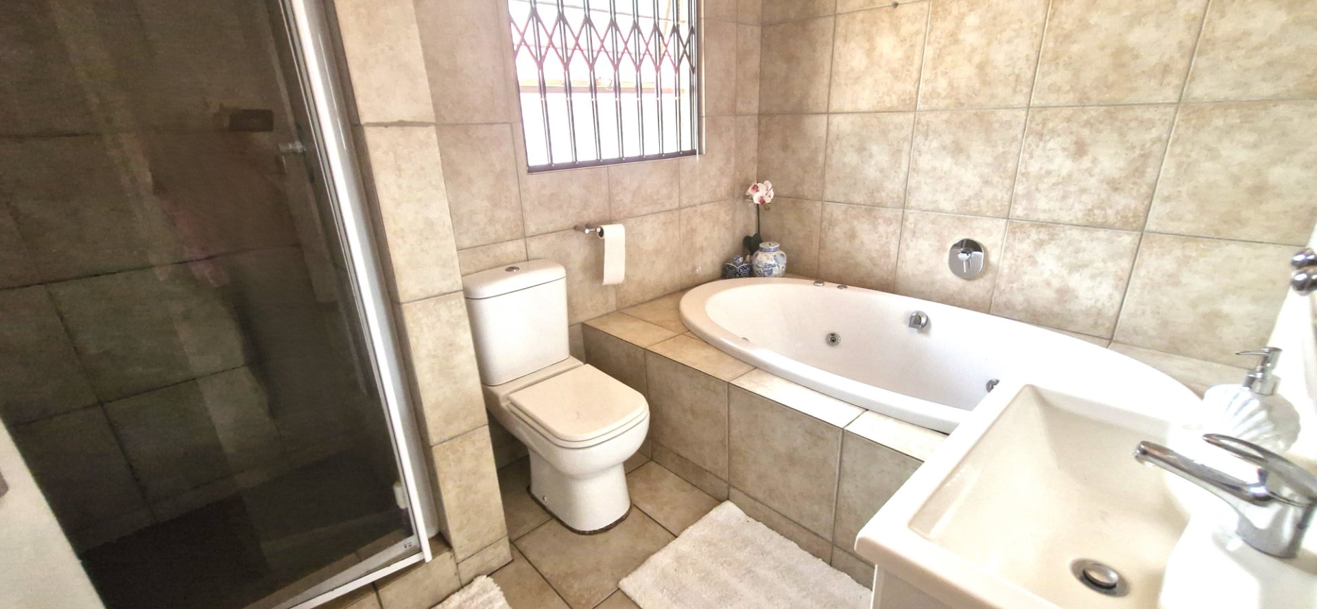 This beautifully maintained free-standing home offers 3 bedrooms, 2 bathrooms, a modern kitchen, open-plan lounge and dining room, and a welcoming entrance hall. Enjoy outdoor living with a sparkling swimming pool and a large, landscaped garden. Additional features include a double garage, staff quarters, and a full solar power system for energy efficiency. Perfect for comfortable family living with space, style, and sustainability. Good security .