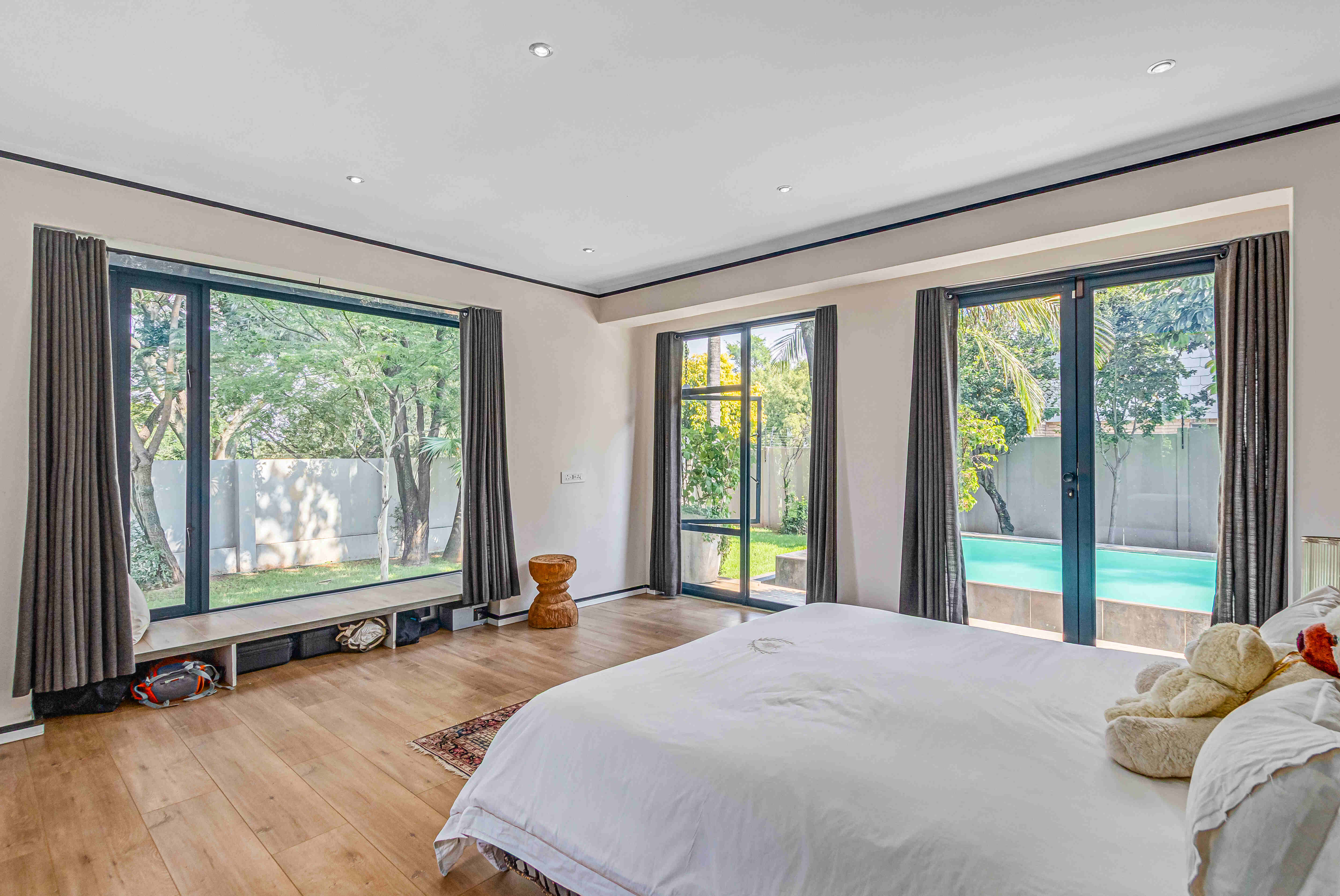 Second Bedroom: The second bedroom also features an elegant bay window that floods the space with natural light, offers direct access to the garden and pool, and includes its own en-suite bathroom-providing privacy and comfort for family members or guests.