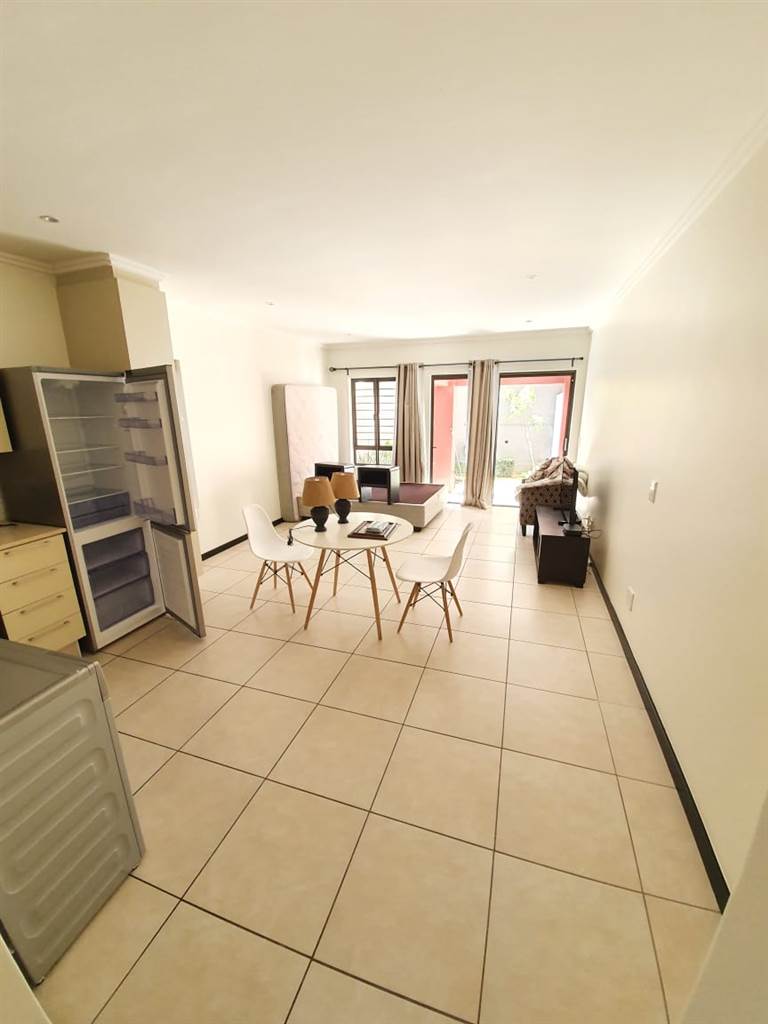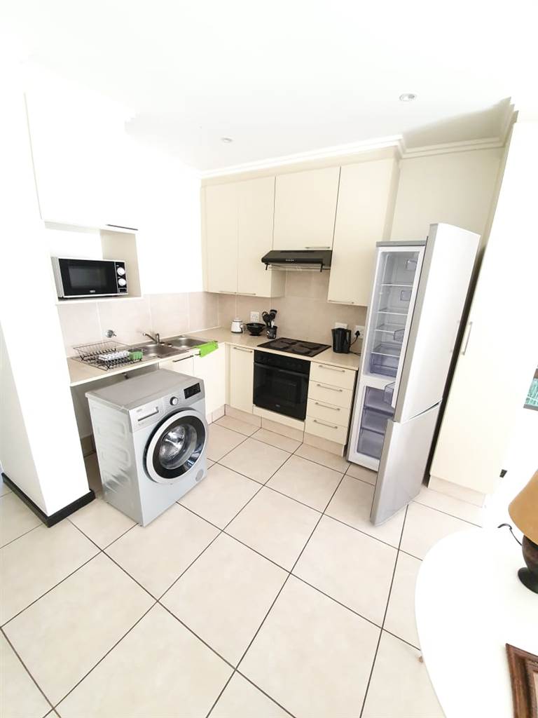 This unit offers up to date facilities, with an open plan kitchen, fully equipped with a 4 plate hob, oven and extractor fan, defy washing machine, and fridge, and built in cupboards and serving counters.