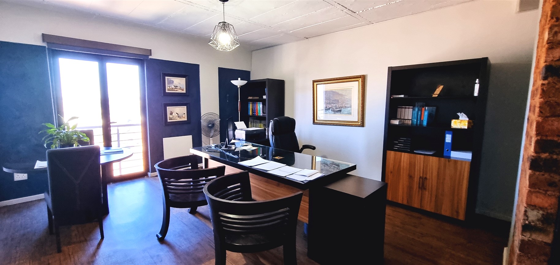 This industrial-style office space is a perfect blend of modern design and functionality, offering a unique