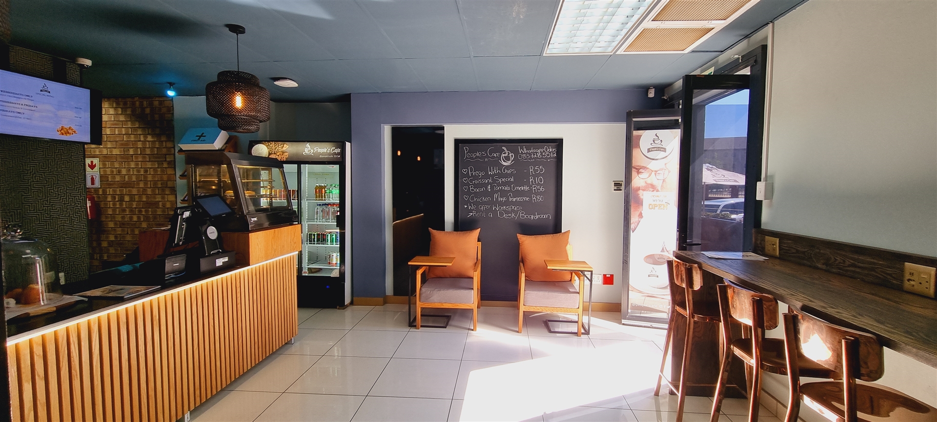 coffee shop provides a relaxed space for employees and visitors. It adds a sense of community to the office