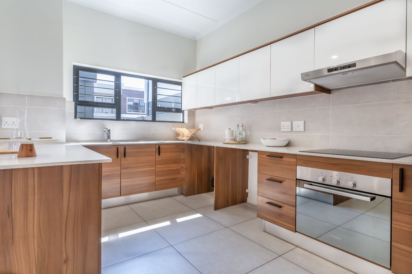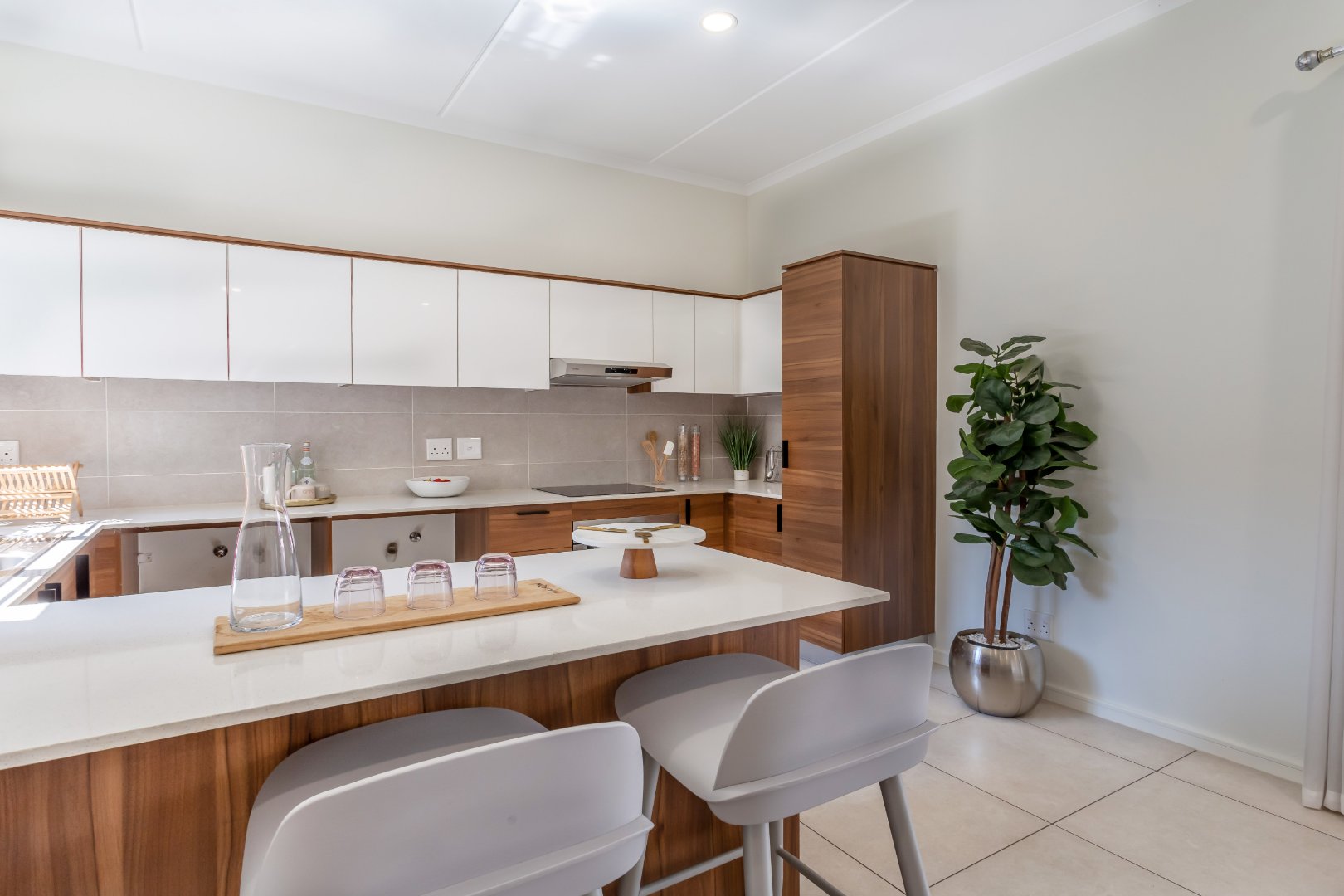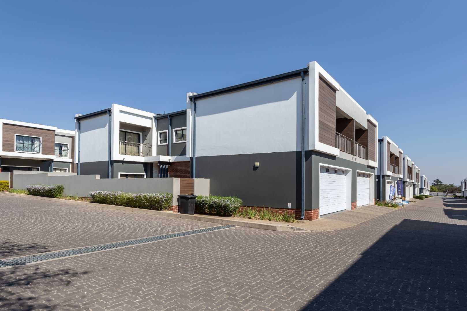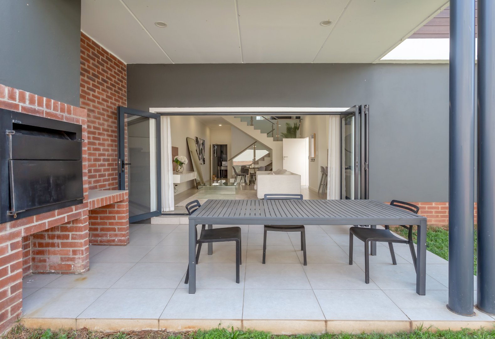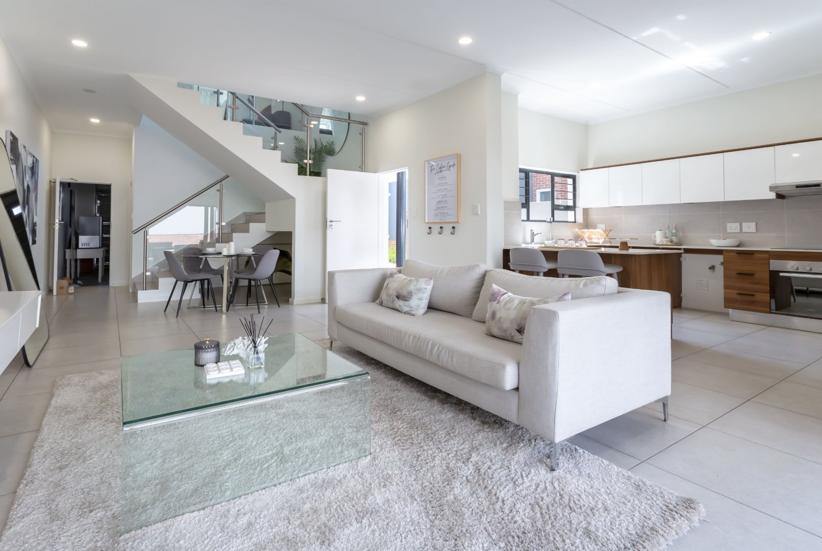 This sleek, modern duplex offers the perfect blend of luxury, style, and security in the heart of Sunninghill. Step inside to an open-plan living area that flows seamlessly from the designer kitchen with breakfast nook and dining space, to the lounge with aluminum stacker doors opening out to a covered patio with built-in braai and private garden – an entertainer’s delight.
