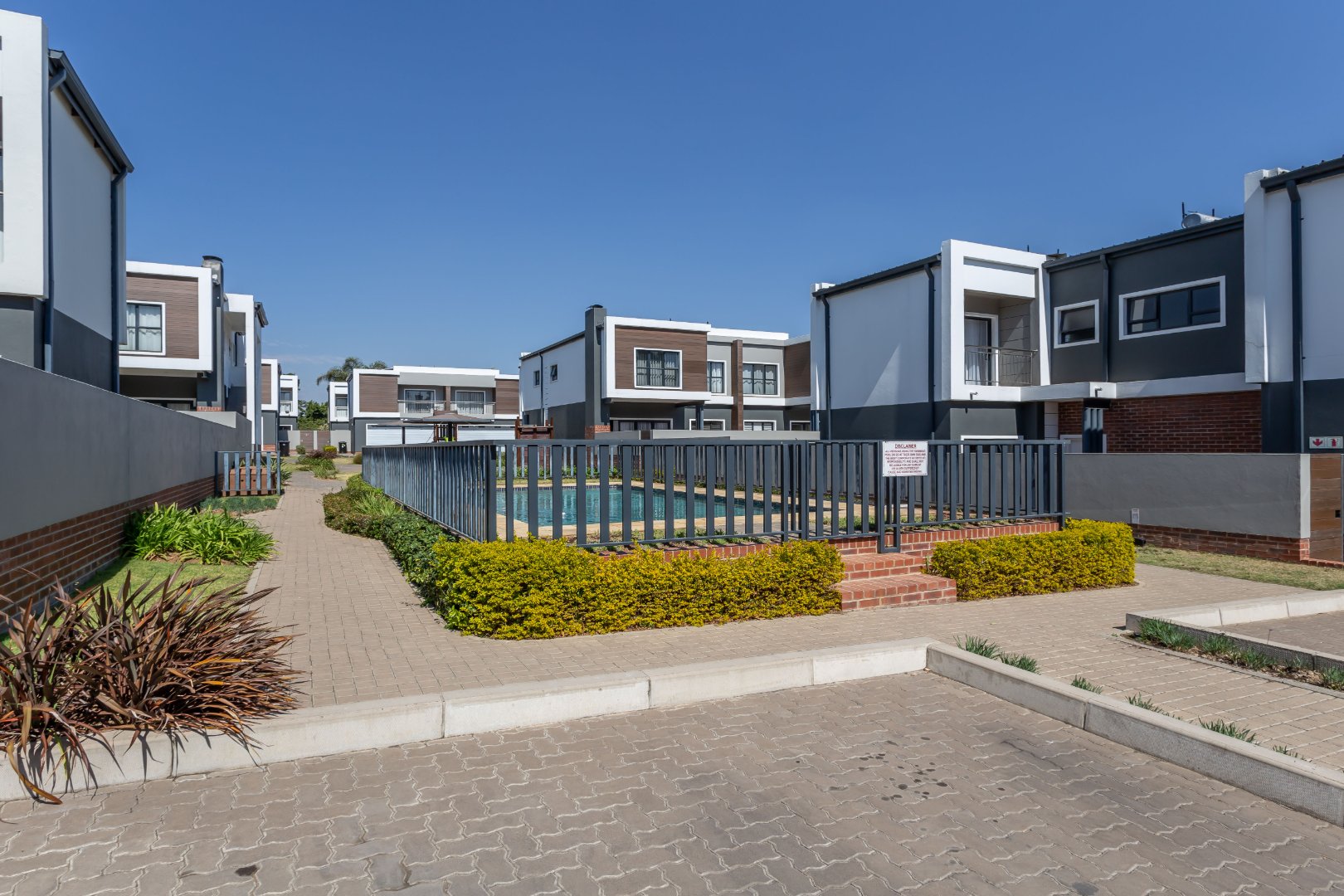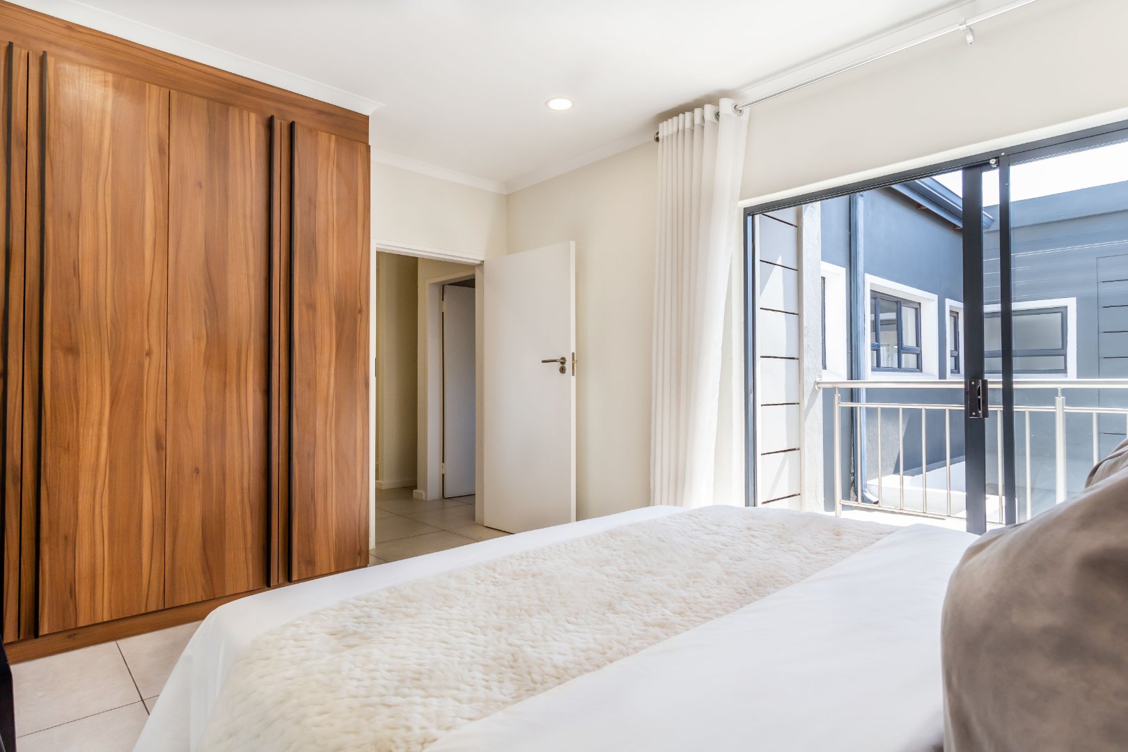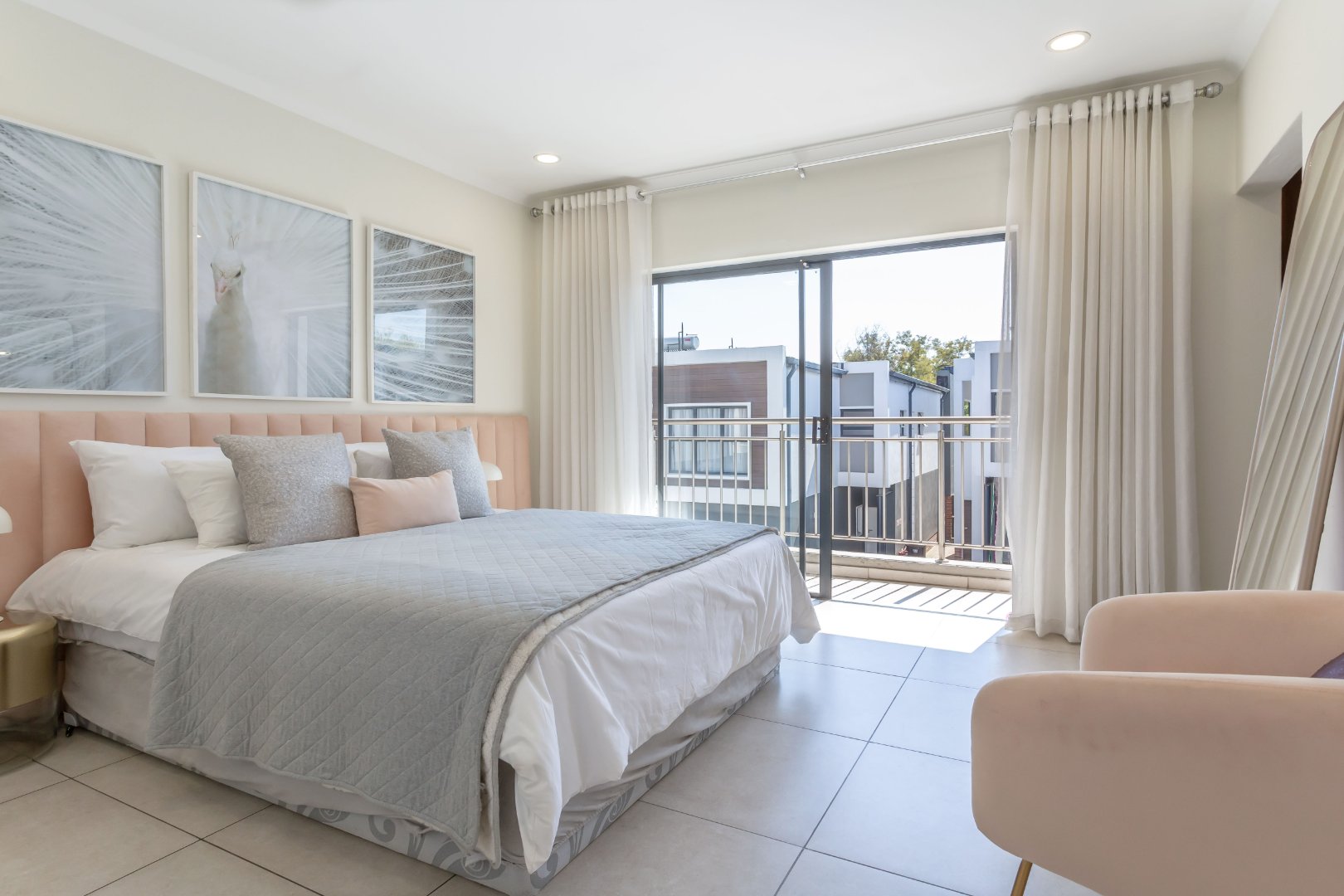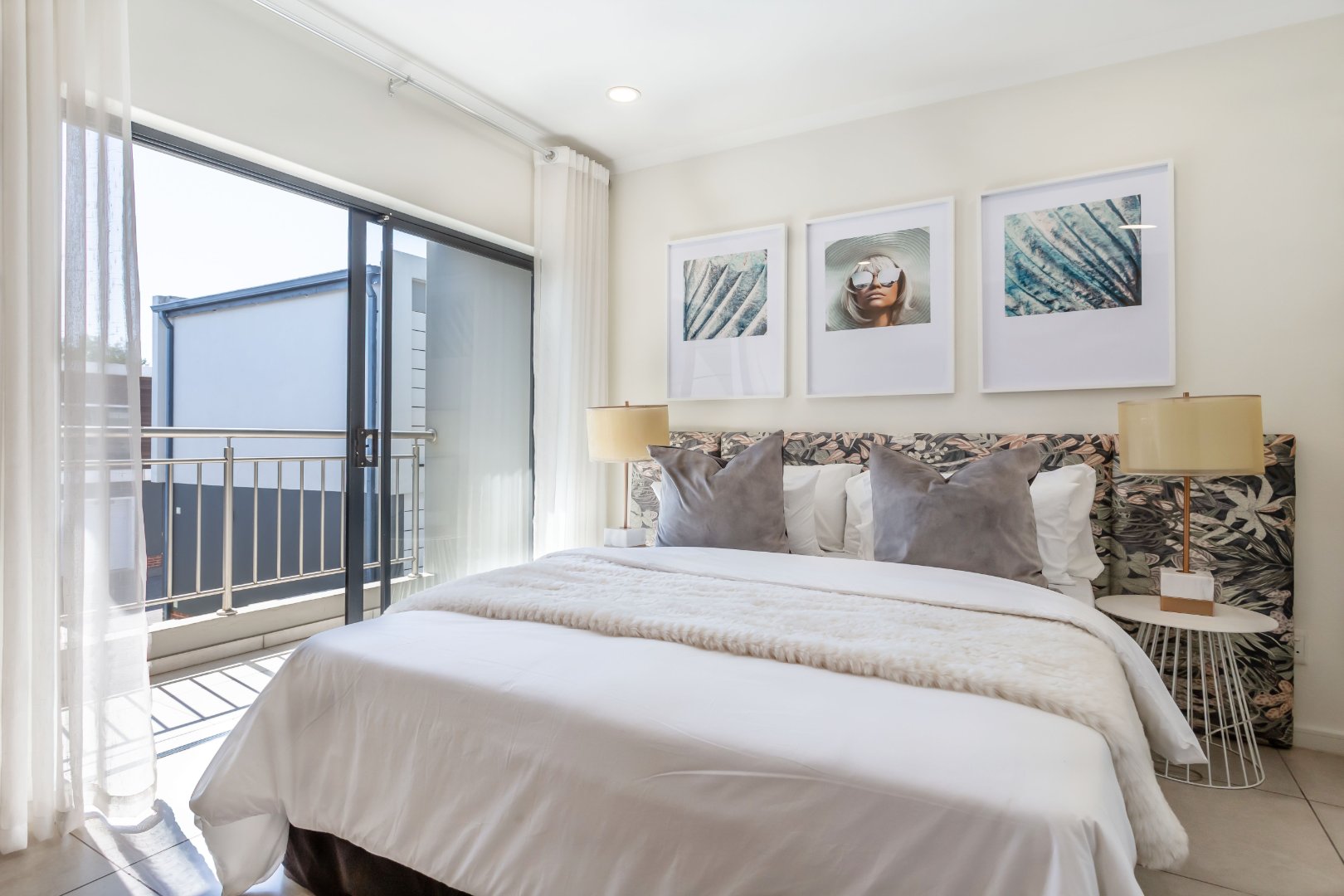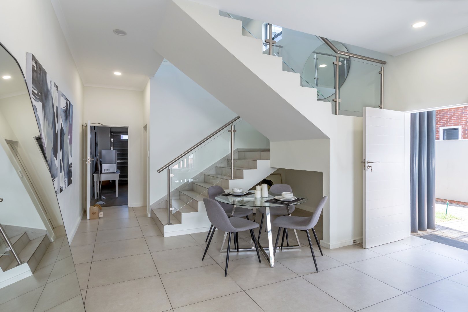 This sleek, modern duplex offers the perfect blend of luxury, style, and security in the heart of Sunninghill. Step inside to an open-plan living area that flows seamlessly from the designer kitchen with breakfast nook and dining space, to the lounge with aluminum stacker doors opening out to a covered patio with built-in braai and private garden – an entertainer’s delight.