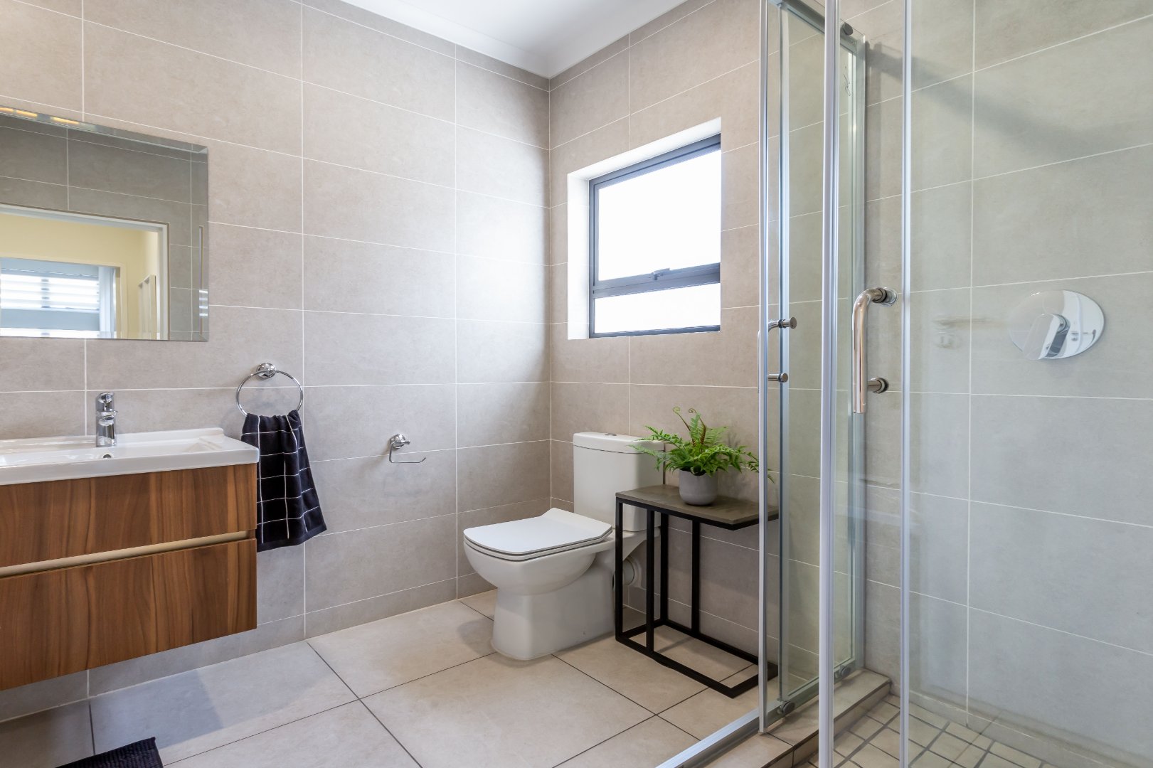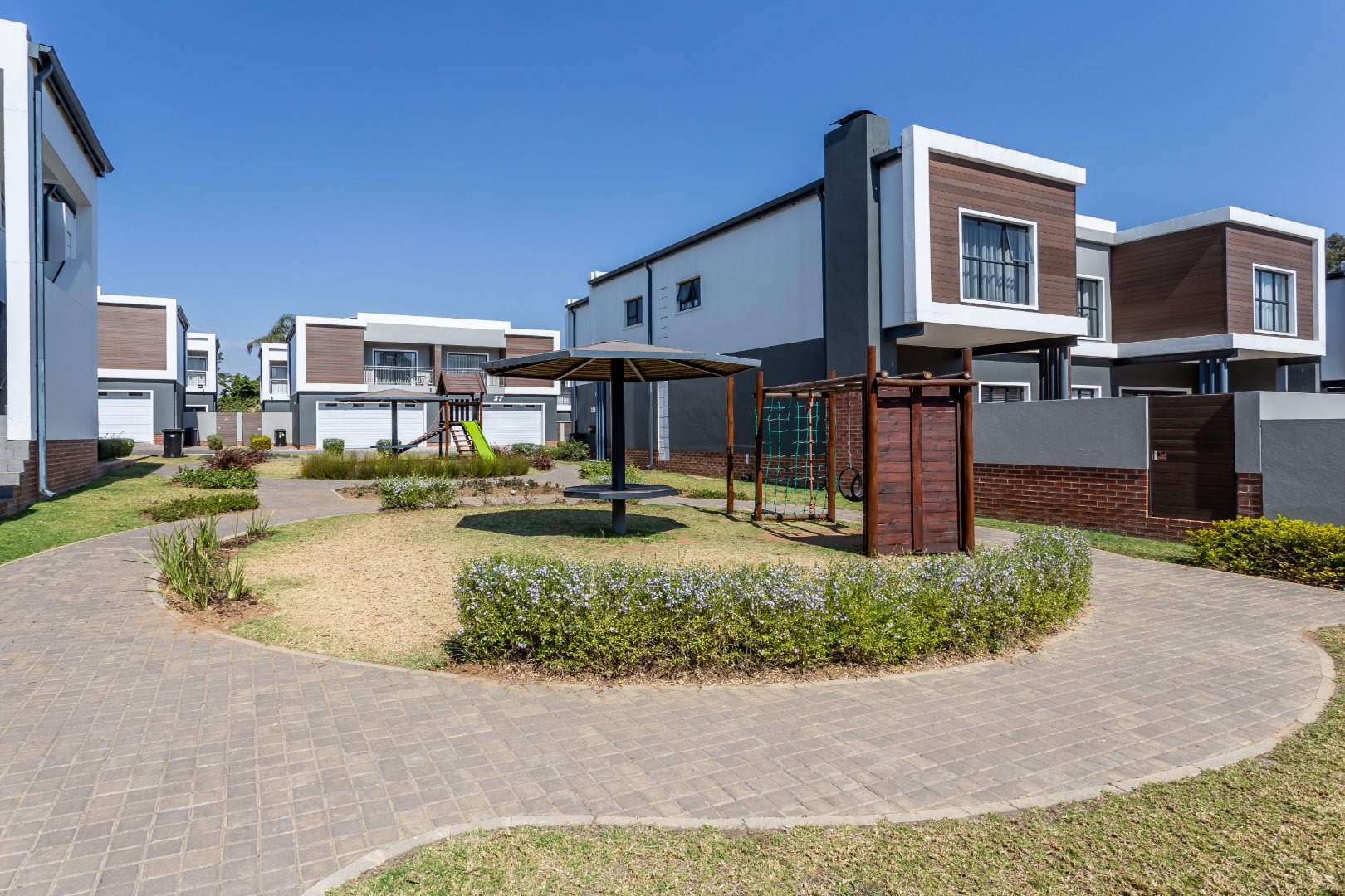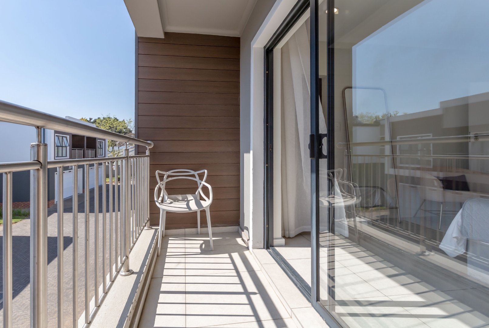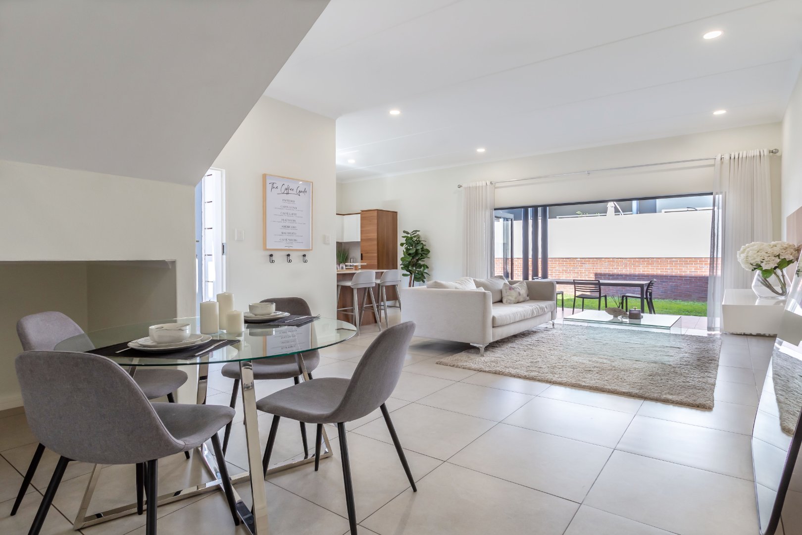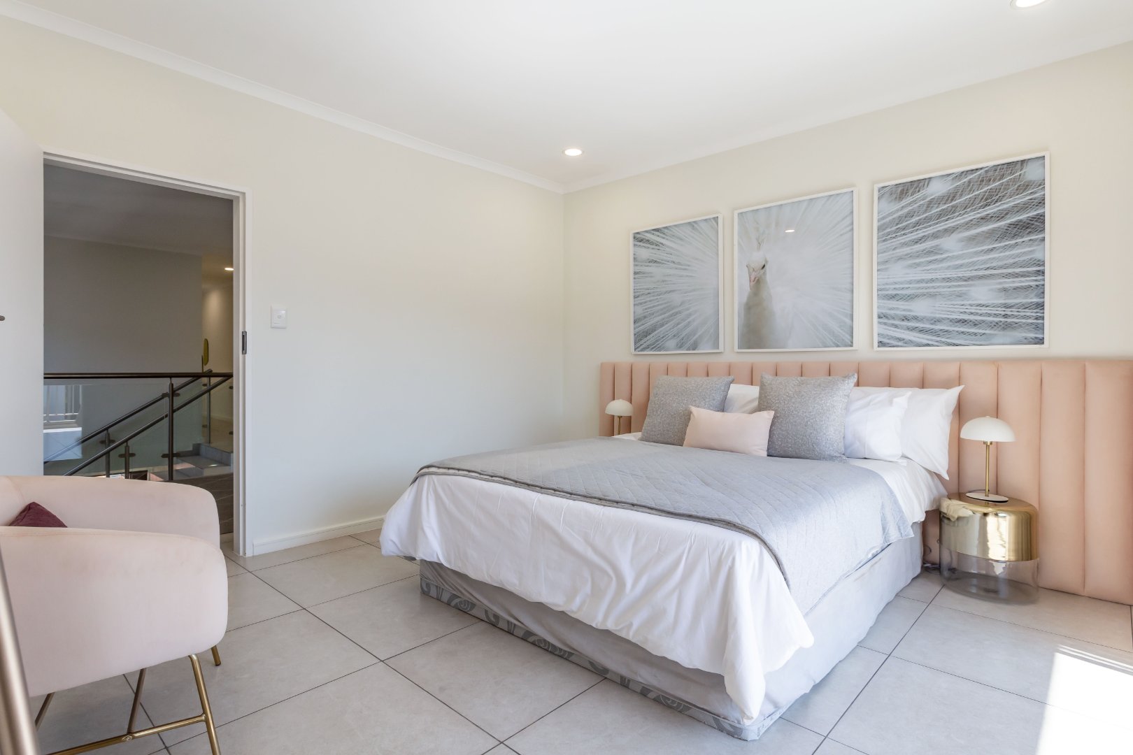 This sleek, modern duplex offers the perfect blend of luxury, style, and security in the heart of Sunninghill. Step inside to an open-plan living area that flows seamlessly from the designer kitchen with breakfast nook and dining space, to the lounge with aluminum stacker doors opening out to a covered patio with built-in braai and private garden – an entertainer’s delight.