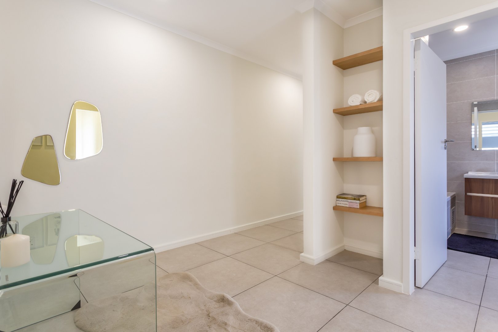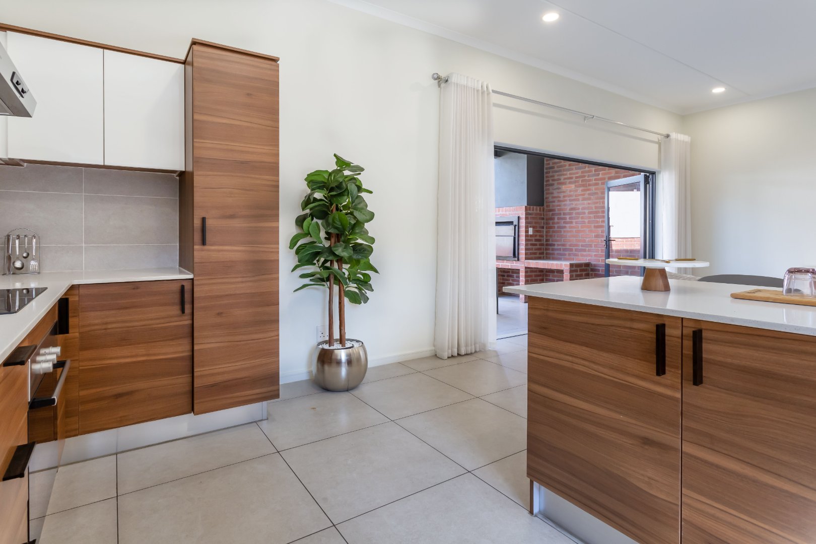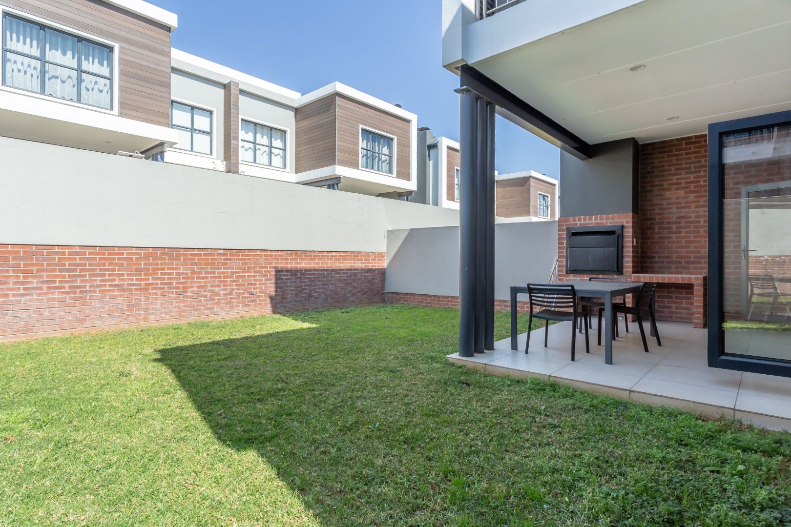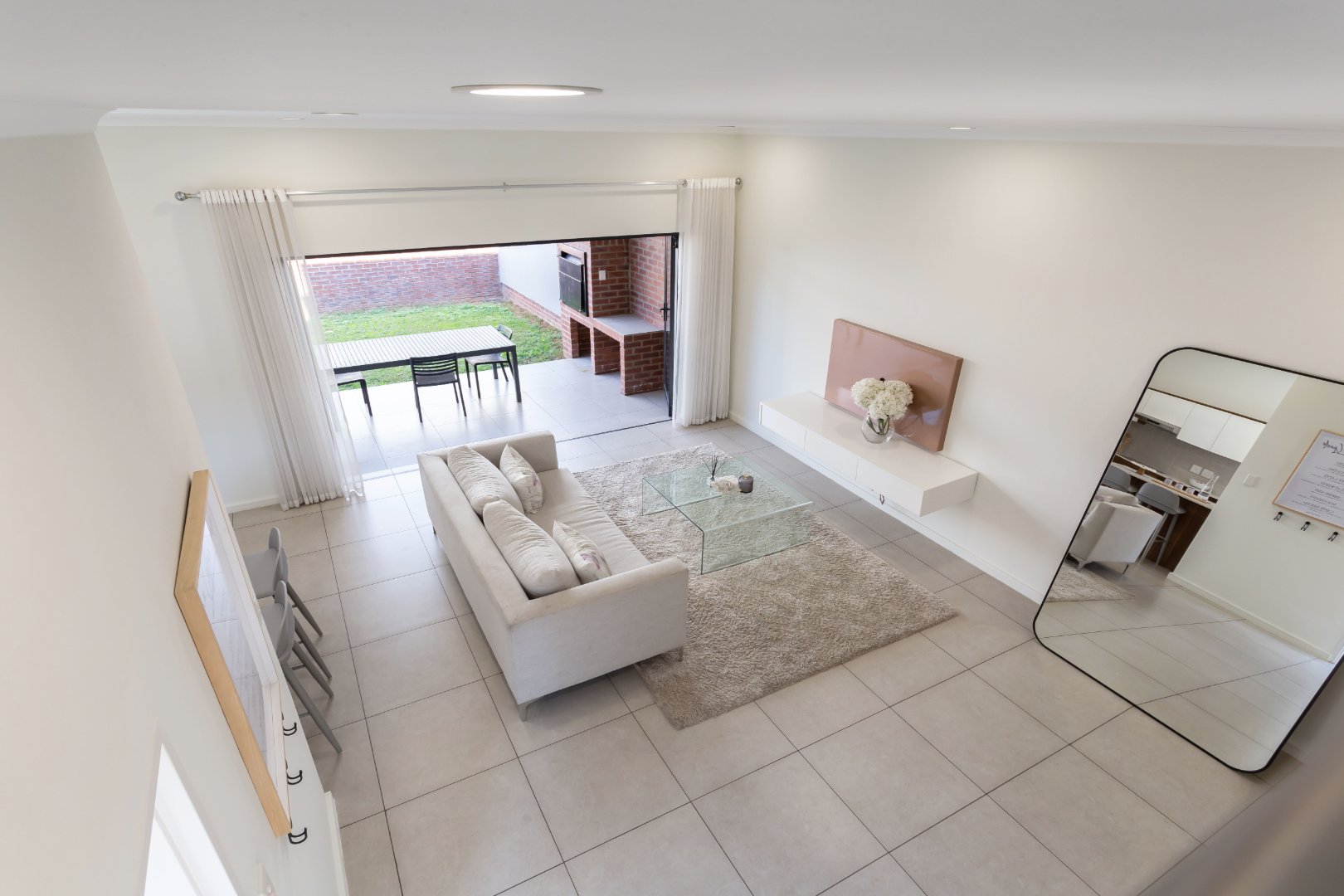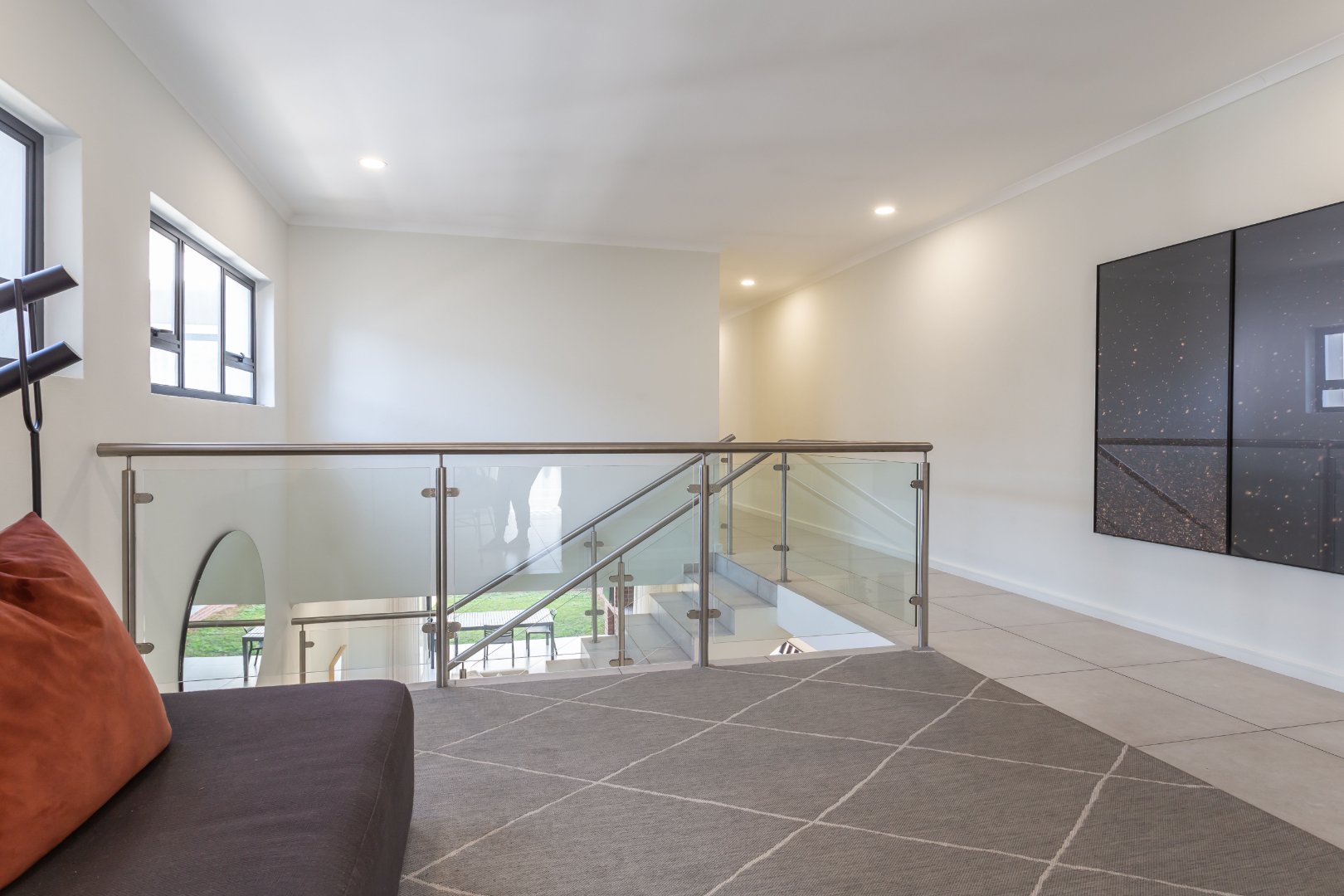 This sleek, modern duplex offers the perfect blend of luxury, style, and security in the heart of Sunninghill. Step inside to an open-plan living area that flows seamlessly from the designer kitchen with breakfast nook and dining space, to the lounge with aluminum stacker doors opening out to a covered patio with built-in braai and private garden – an entertainer’s delight.
