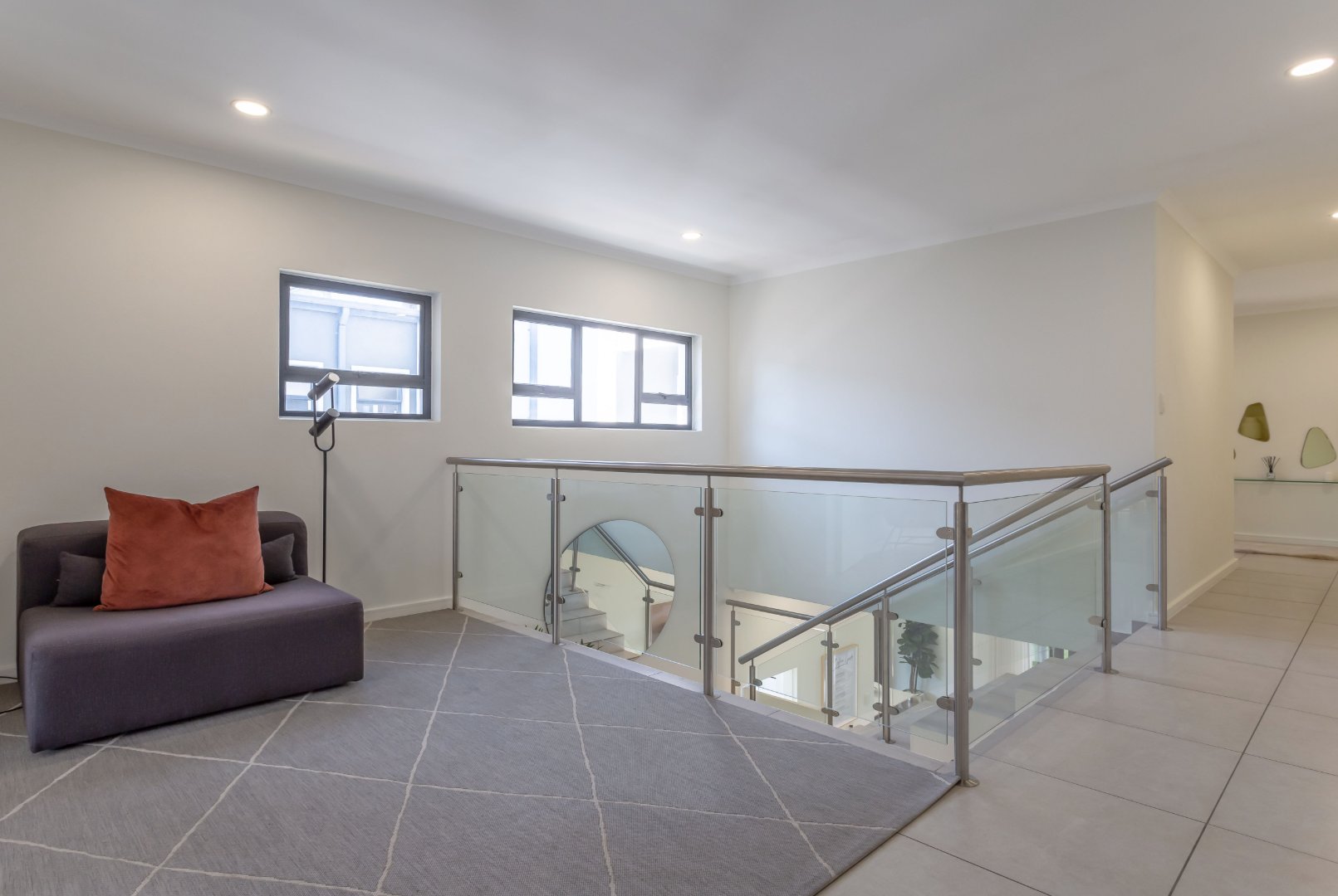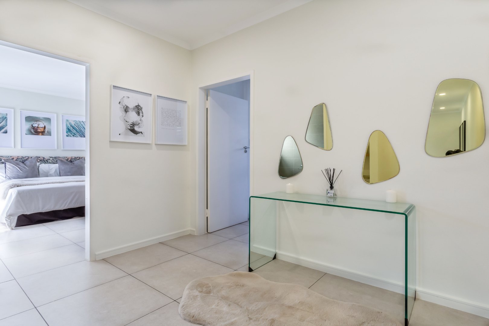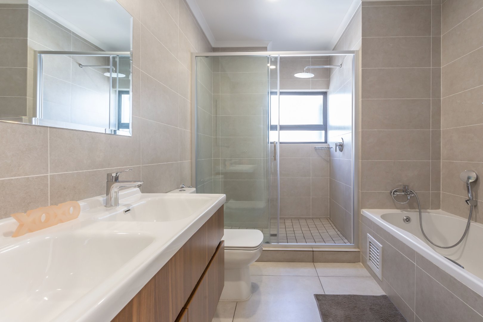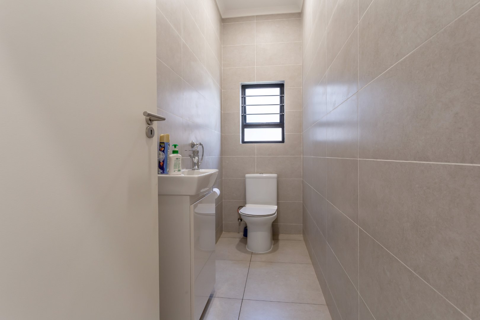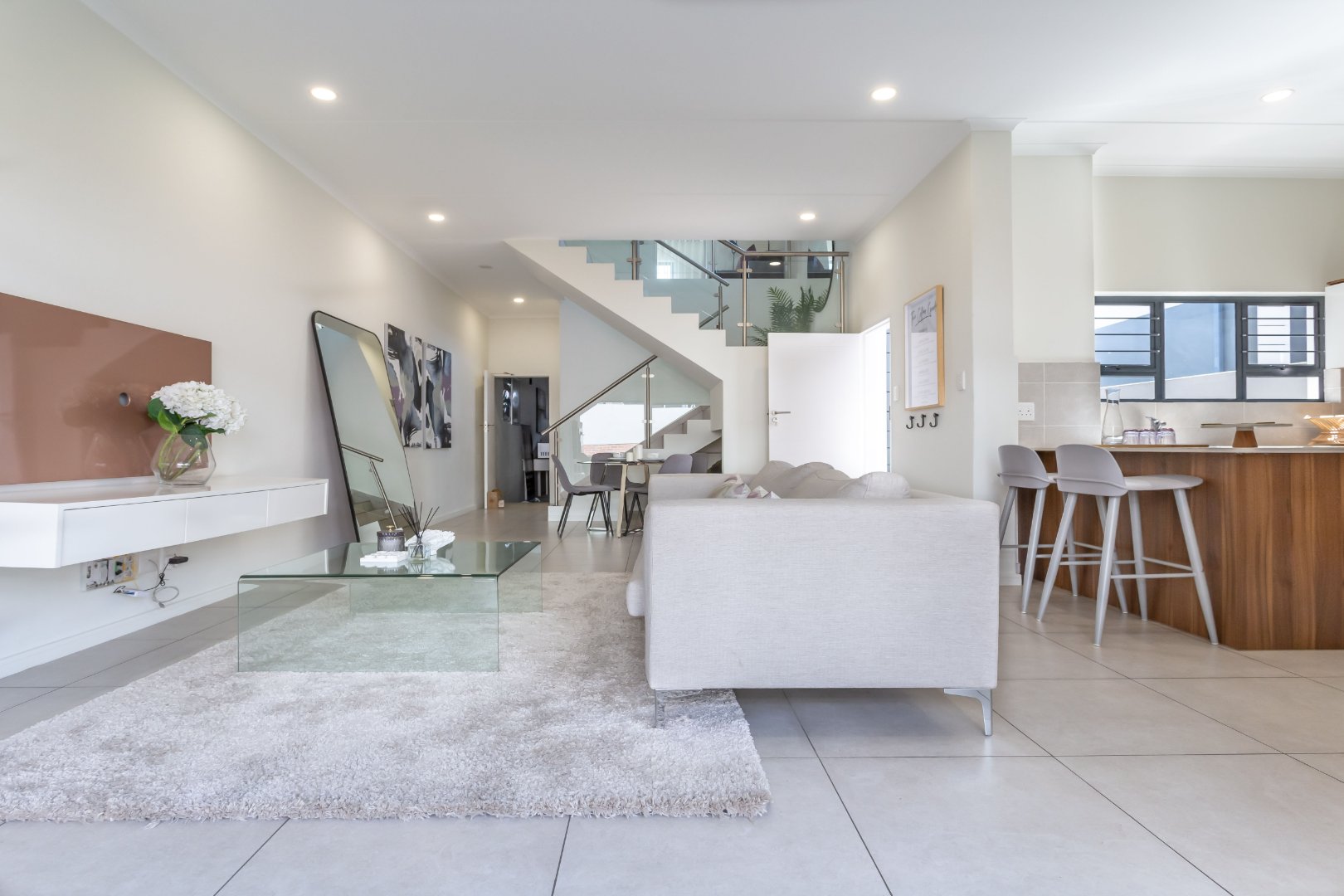 This sleek, modern duplex offers the perfect blend of luxury, style, and security in the heart of Sunninghill. Step inside to an open-plan living area that flows seamlessly from the designer kitchen with breakfast nook and dining space, to the lounge with aluminum stacker doors opening out to a covered patio with built-in braai and private garden – an entertainer’s delight.