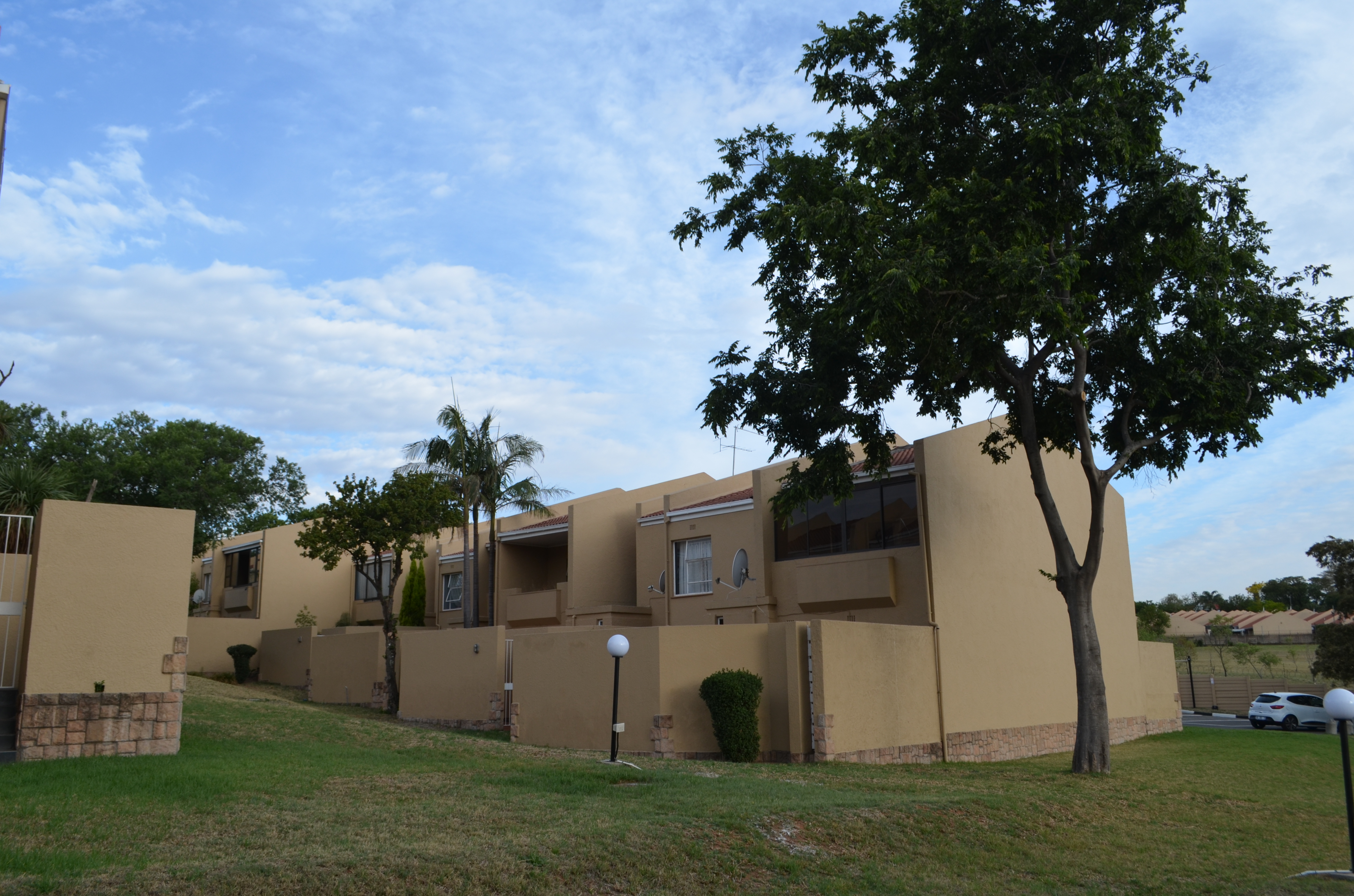The complex has great security and is close to shops, highways and hospitals. If you are looking for space this townhouse has it. It is one hundred and sixty one square metres like a house. There are five rooms for helpers with shower rooms and kitchen area and these at rented out at R500 per month and are subject to availability.