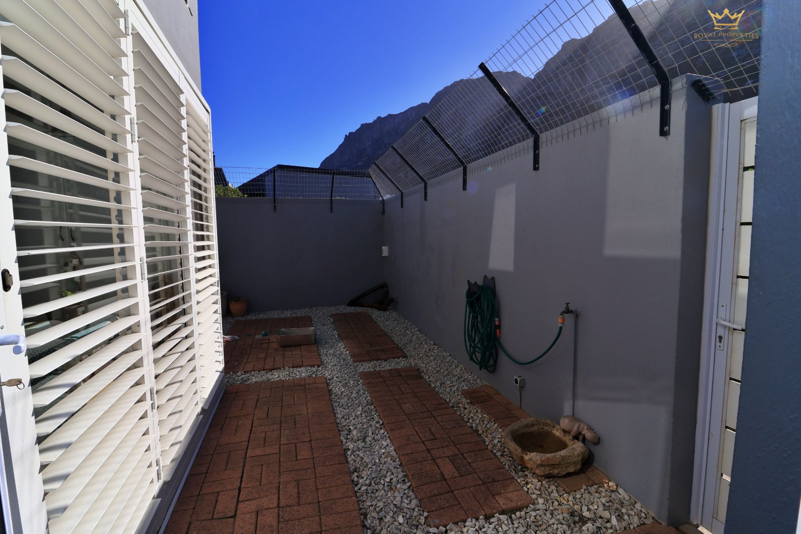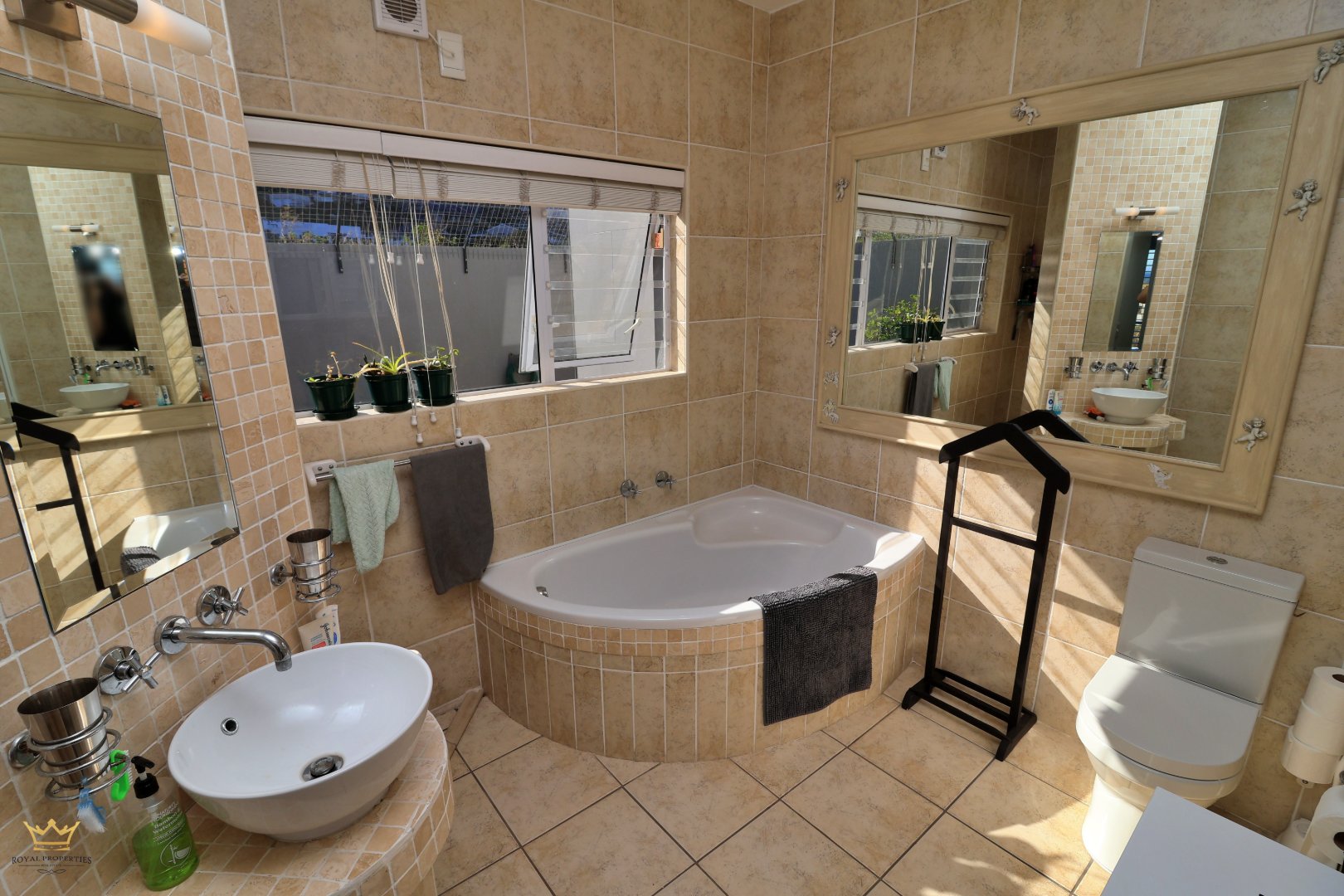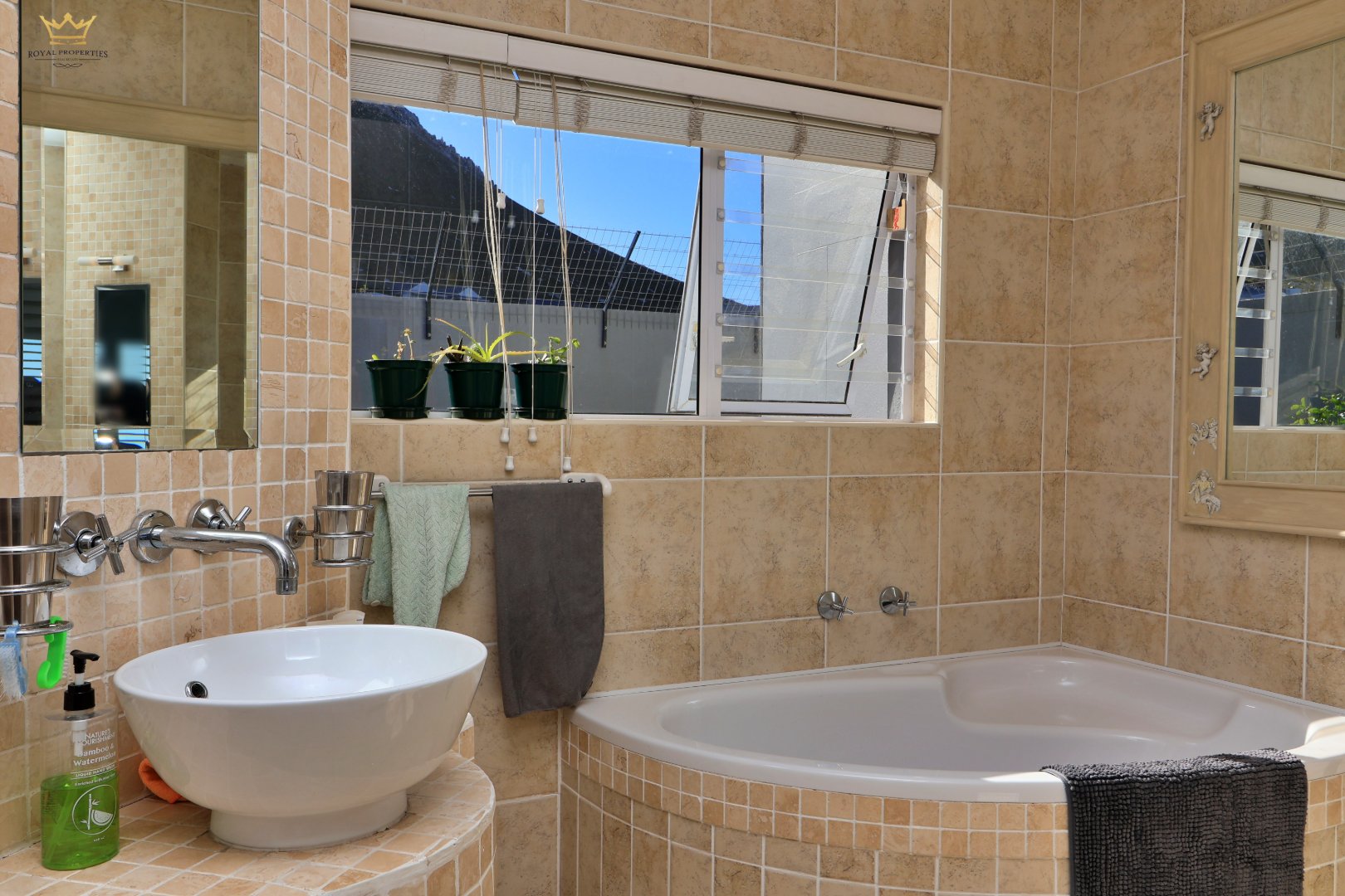 The property features a spacious, automated double garage with integrated laundry facilities, additional storage rooms, and a discreet side entrance accessible via a paved walkway. For enthusiast gardeners and nature lovers, the 1,338 m2 fynbos garden boasts water features, natural ponds, and a large garden shed—an oasis of tranquillity amid native flora and fauna.