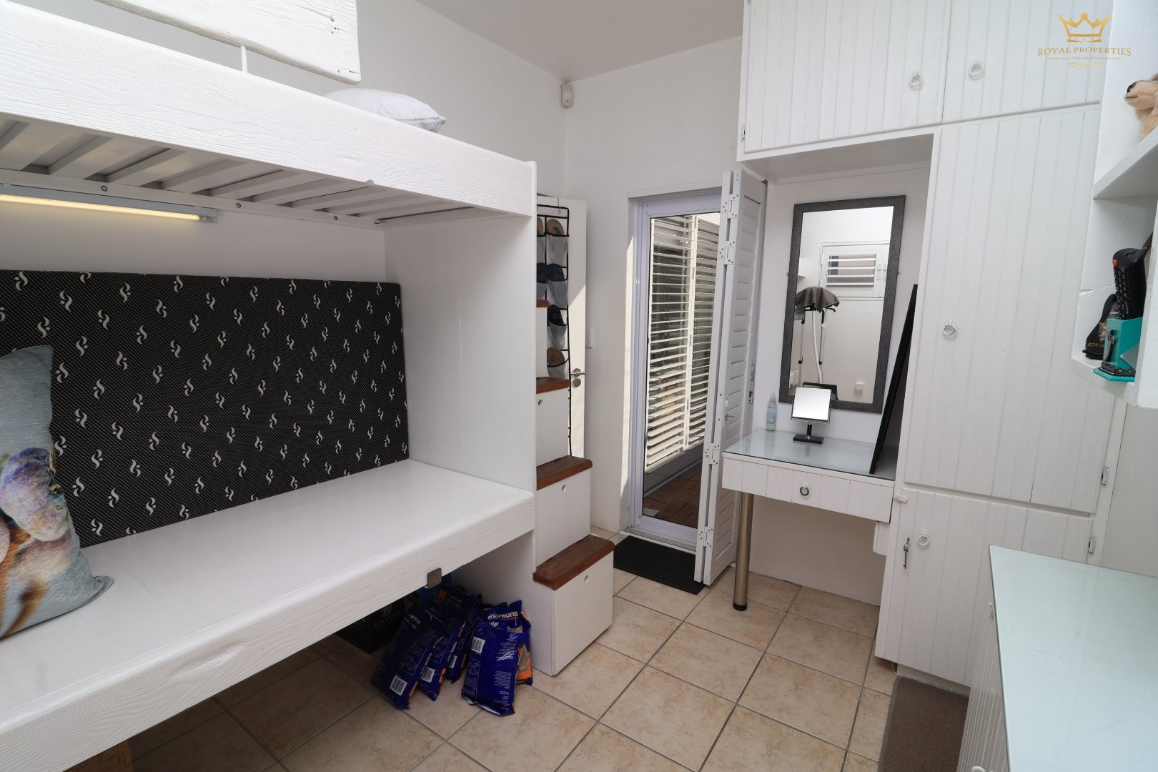Enhancements such as American shutters on all doors and windows, a separate generator switchboard, and a secure cattery add to the functionality and security of this idyllic retreat. The residence’s clever layout, using Heritage architect Raymond Smith’s innovative space-saving design, ensures every square meter is optimized for comfort and style.