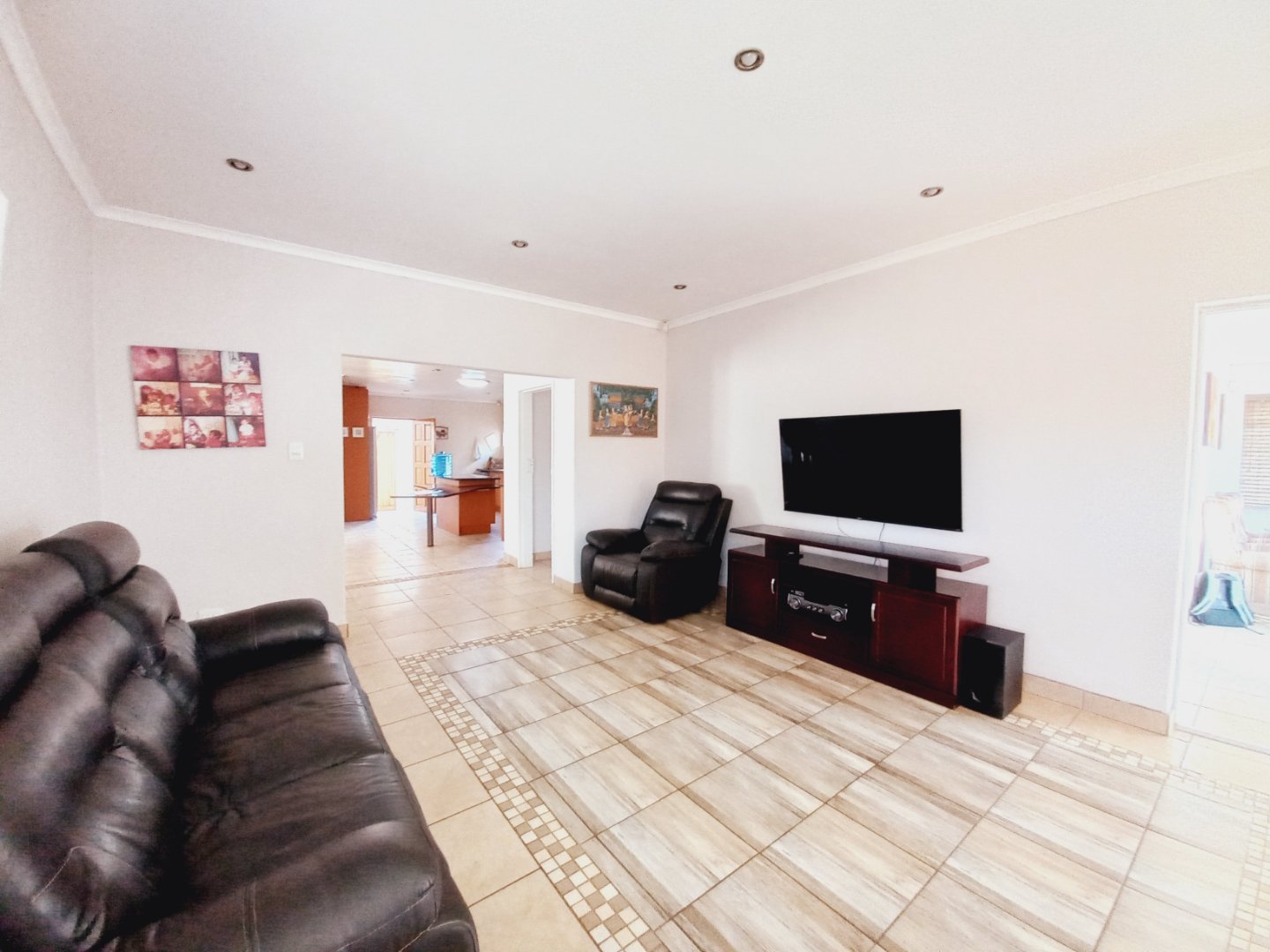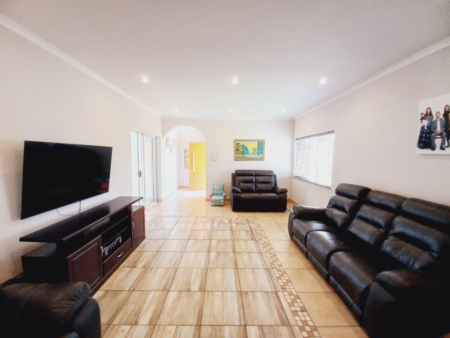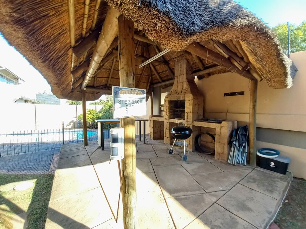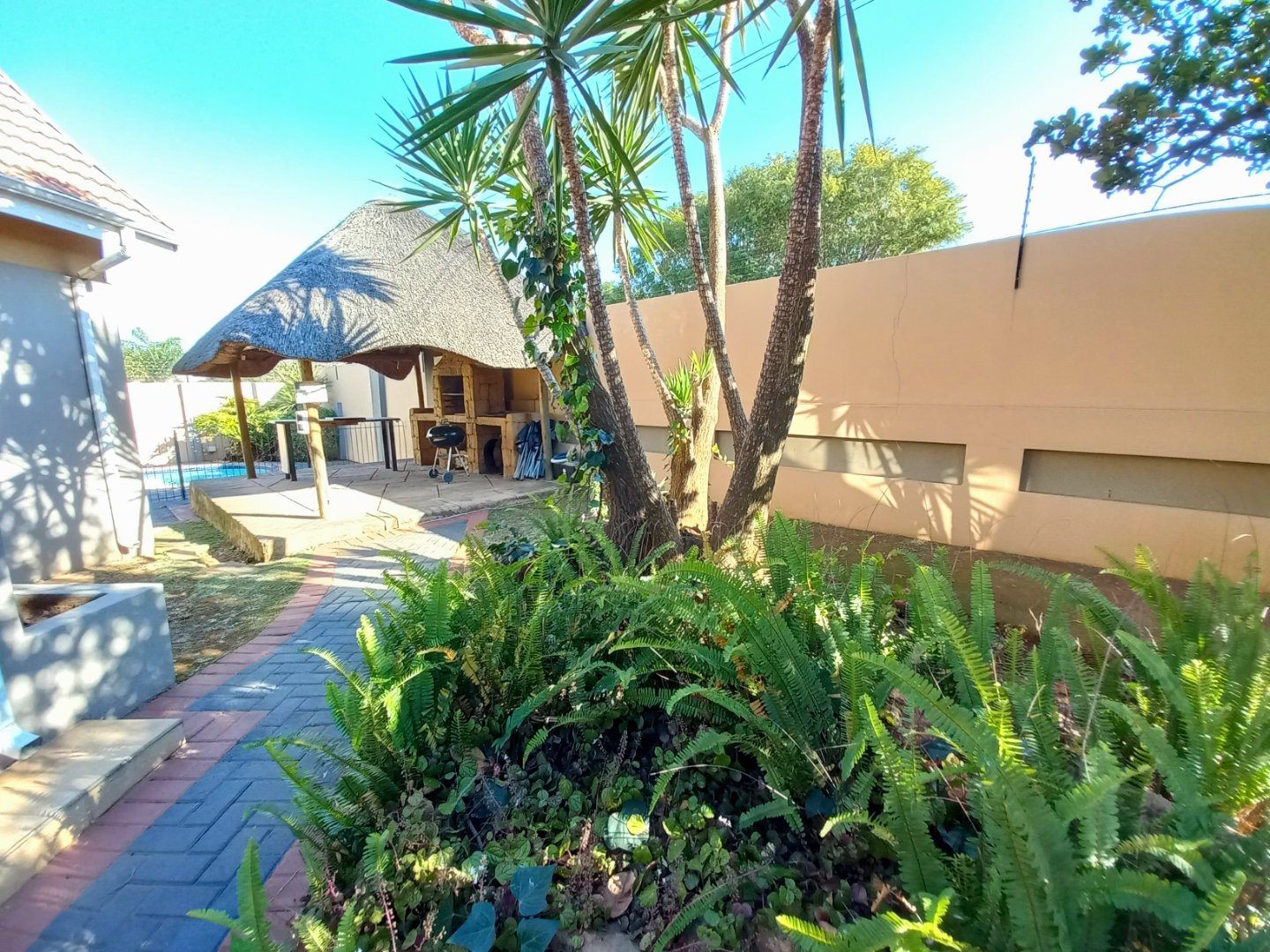 Entertainer’s dream outdoors: sparkling solar-heated pool, thatched lapa with electricity and built-in braai, pool safety net included