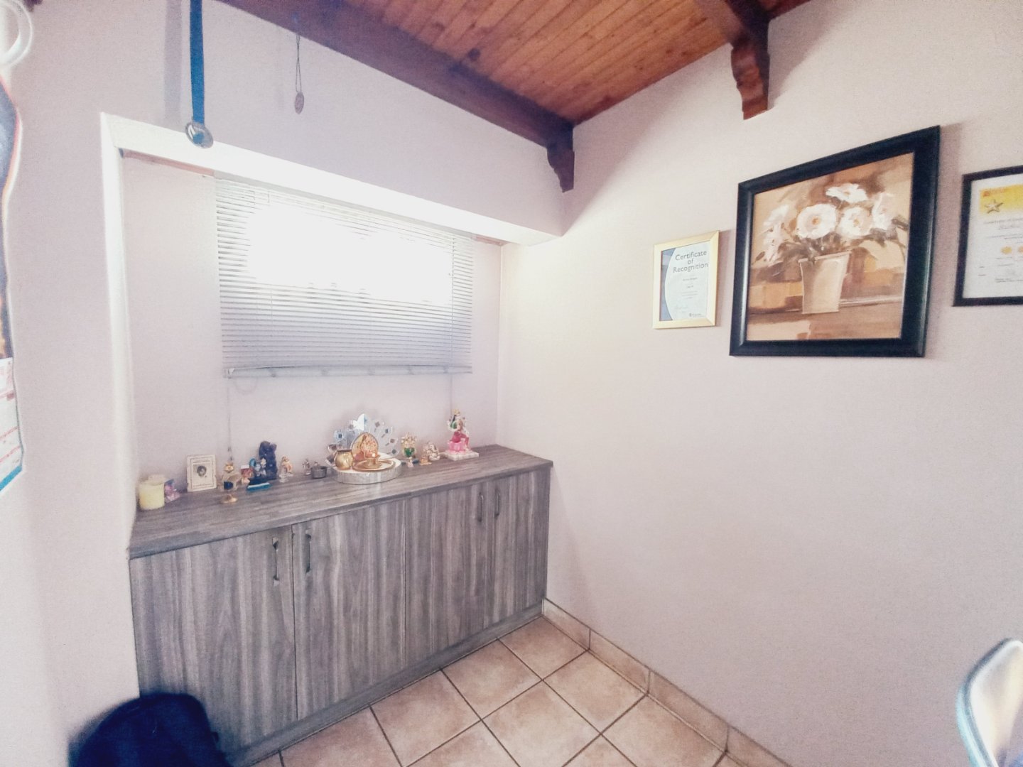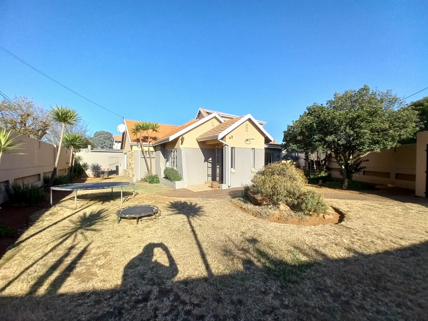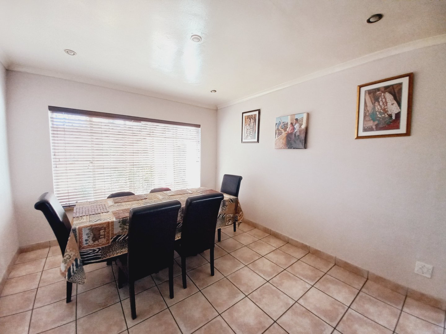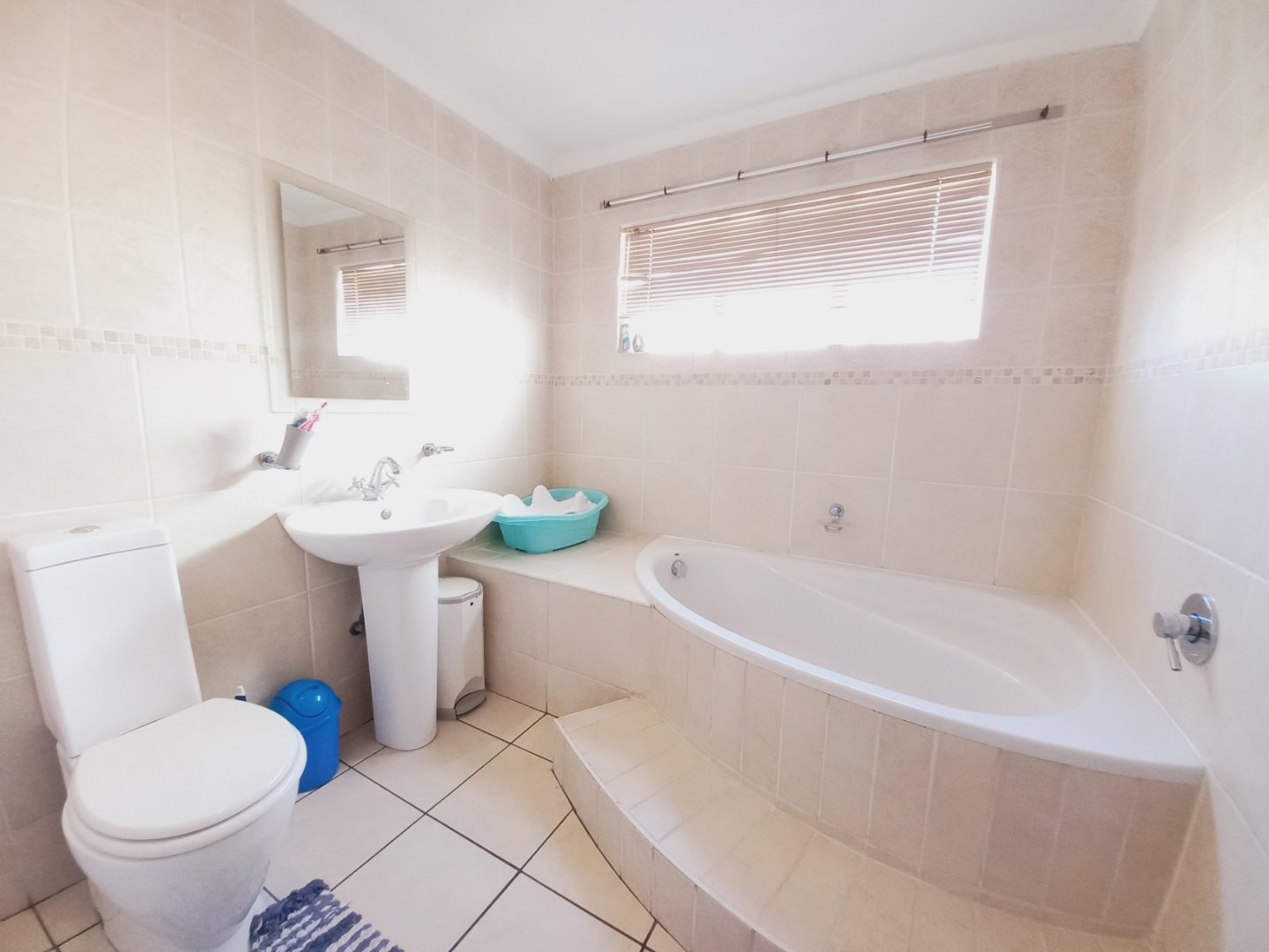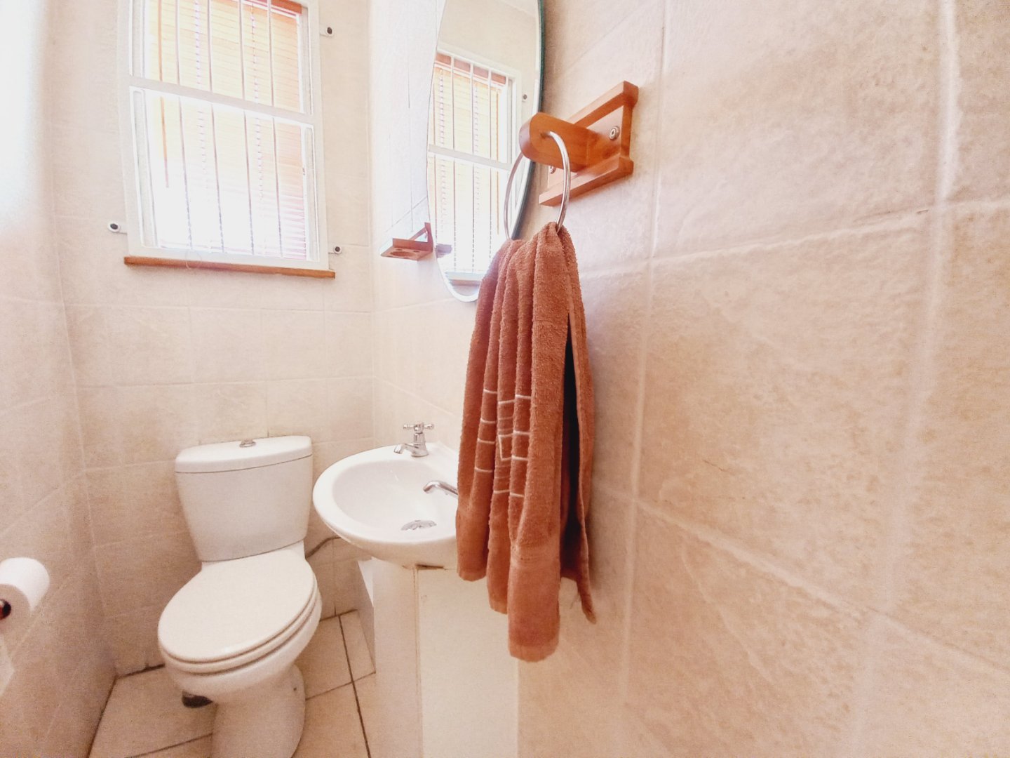 Upstairs, two more airy bedrooms with built-ins share a handy guest cloakroom, keeping the sleeping zones distinct from the living areas. Outside, summer living comes alive around the solar-heated pool and a thatched lapa equipped with electricity and a built-in braai—your all-season entertainment hub. With high perimeter walls, electric fencing, security gates, and an alarm system, peace of mind is paramount. Added bonuses such as a solar geyser, two JoJo tanks, fitted blinds, and a pool safety net round out this move-in-ready gem—your chance to secure a lifestyle of comfort, convenience, and effortless entertaining in sought-after Sunnyridge.
