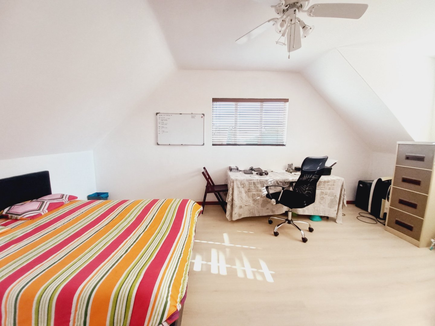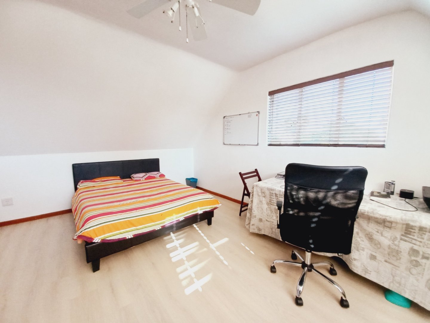 Step through the secure front gate into a sun-splashed lounge that flows to a flexible family room and a dedicated study—perfect for both relaxation and productivity. At the heart of the home, an open-plan dining area merges seamlessly with a stylish granite-topped kitchen featuring a central island, gas cooking, and eye-level oven; it’s designed for effortless family meals as well as larger gatherings. Two ground-floor bedrooms offer laminated floors and generous cupboards, with the main suite enjoying a private, tiled en-suite and air-conditioning, while the full family bathroom services the rest of the level.