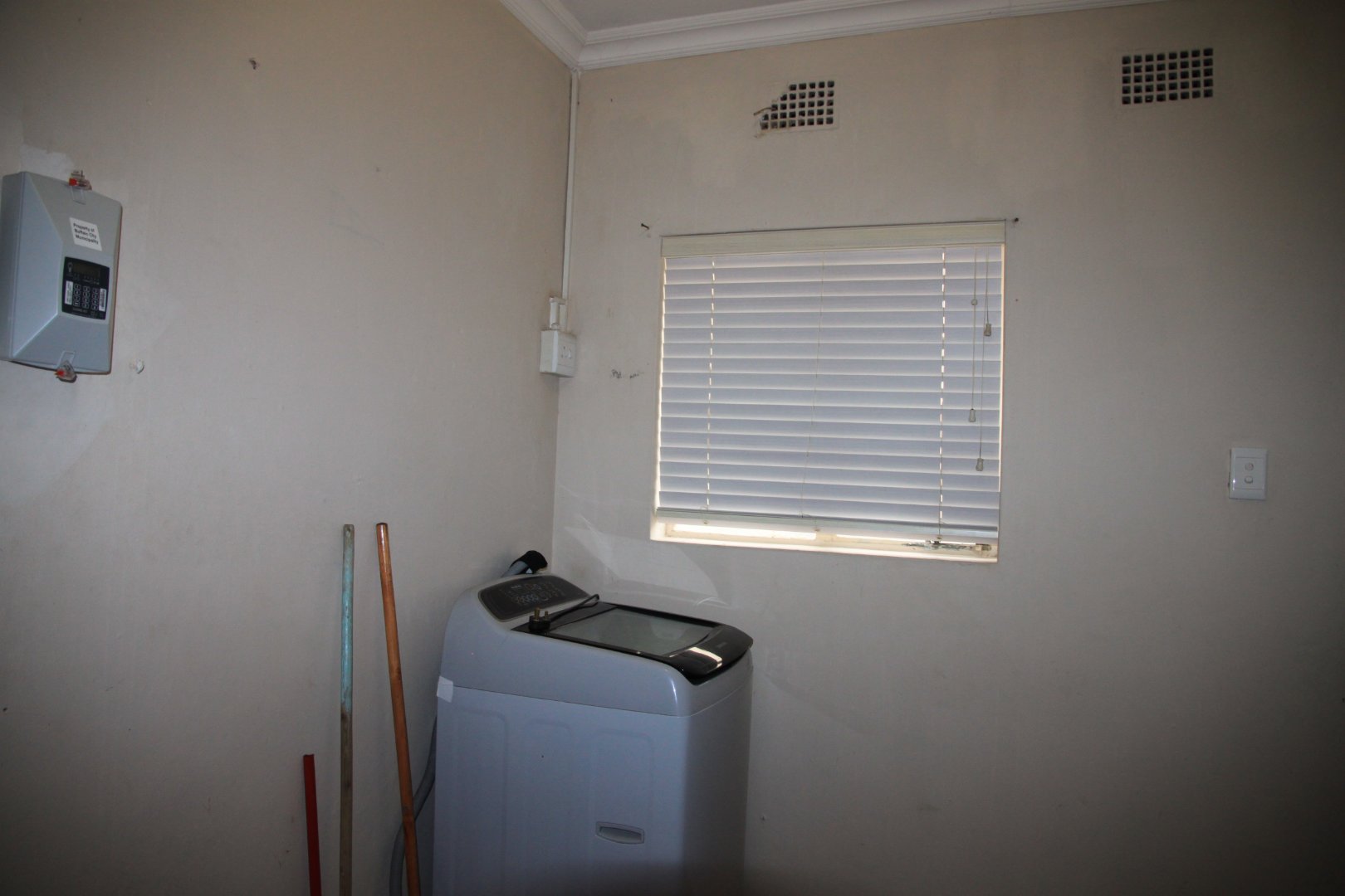 The kitchen is fully fitted with cupboards and has a laundry room attached to the back of this kitchen.