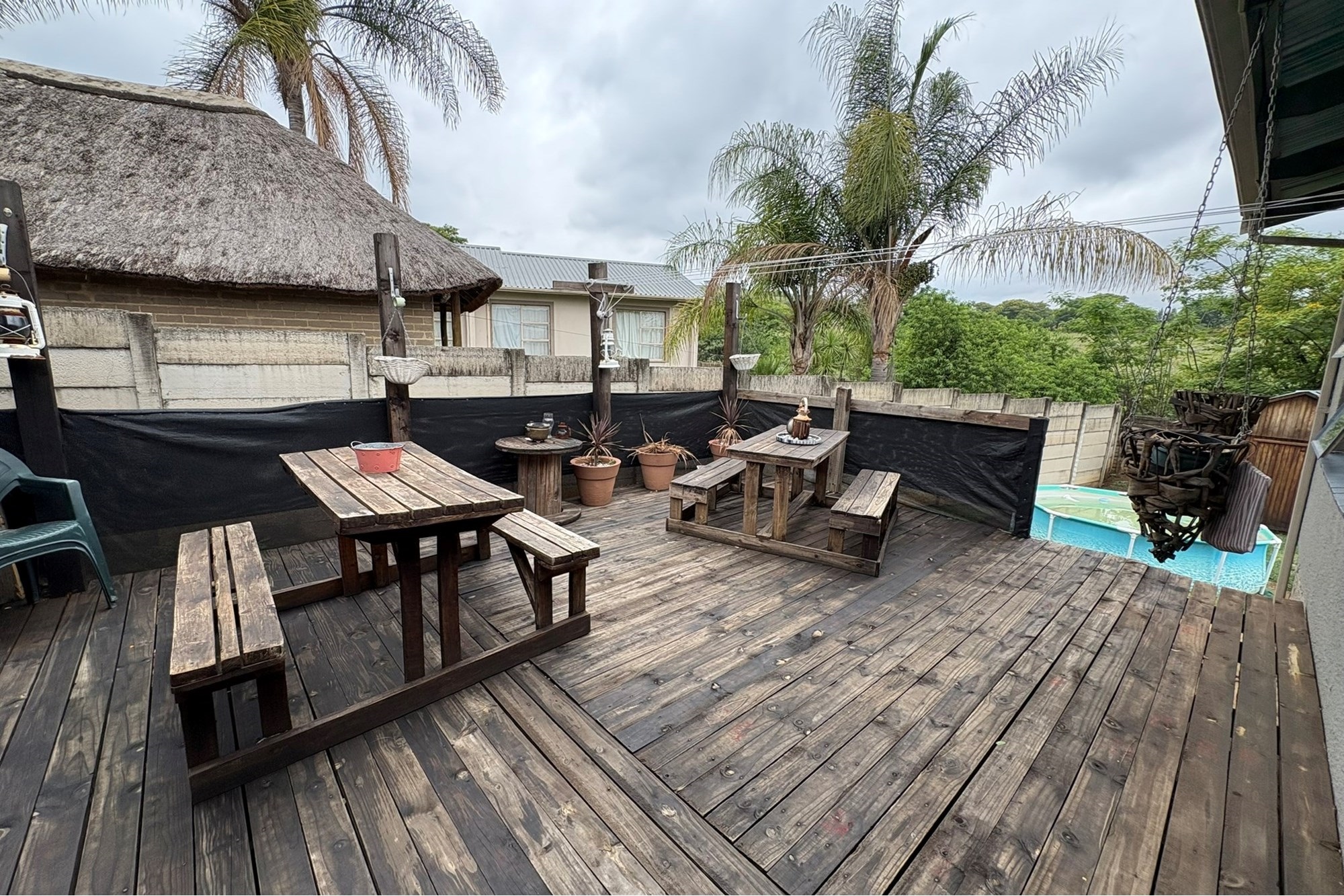 Step outside to a newly built deck, ideal for relaxing or enjoying a coctail with family and friends. The property also features a domestic room with a toilet, a single garage, a large yard, and a Wendy house for garden tool storage.