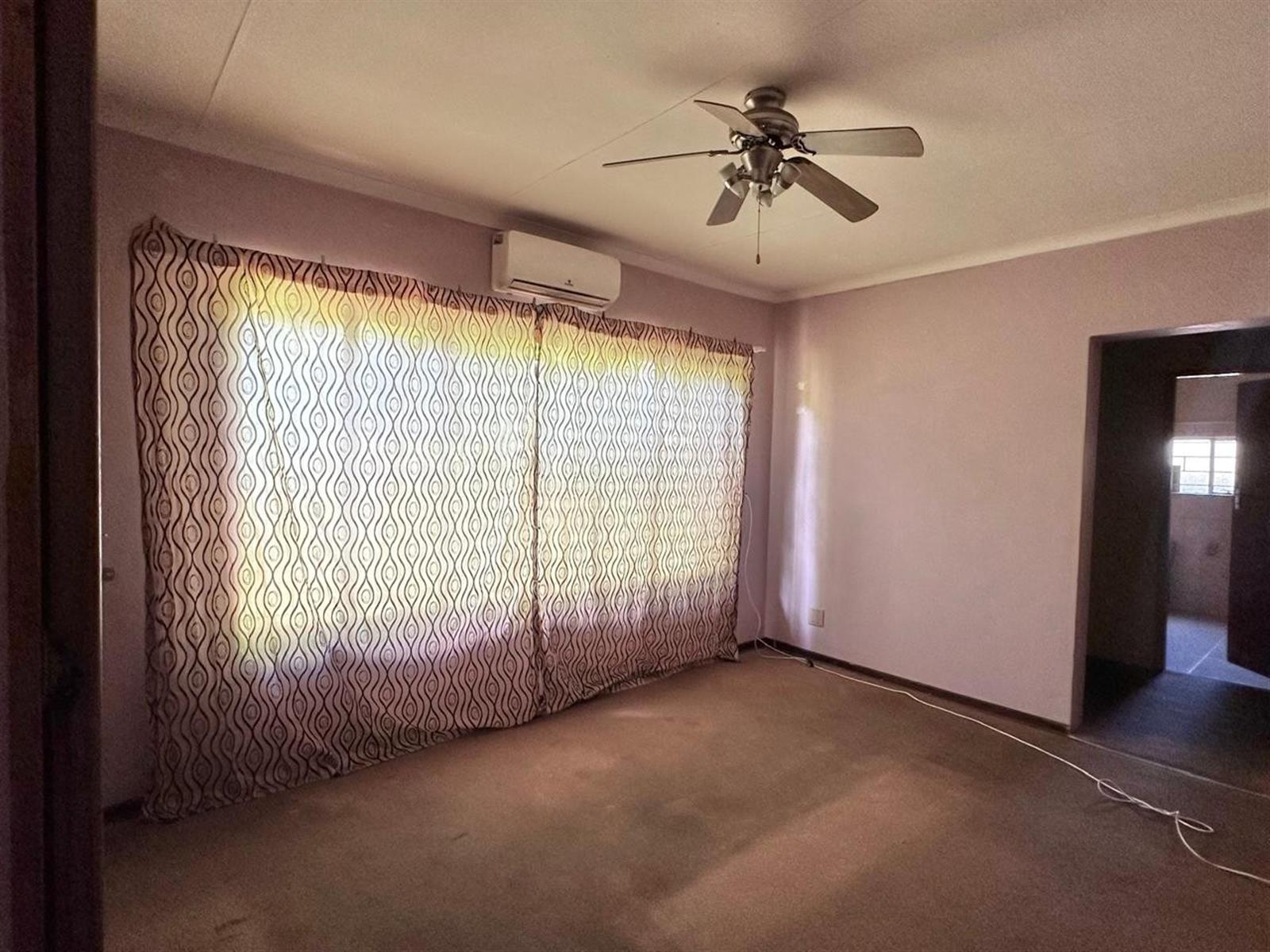 The living room is inviting and cozy, featuring carpeted floors, a fully working fireplace, air-conditioning, steel windows, and a ceiling fan — perfect for both winter evenings and summer days. Flowing seamlessly into the dining area, tiled and fitted with a ceiling fan, this space is ideal for family meals and entertaining.