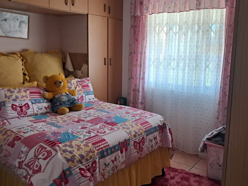 The home features a welcoming lounge and dining area, perfect for quality family time. The kitchen is fitted with built-in cupboards and includes an electric stove. Two of the bedrooms have built-in cupboards, and attractive ceiling finishes add charm and character throughout.