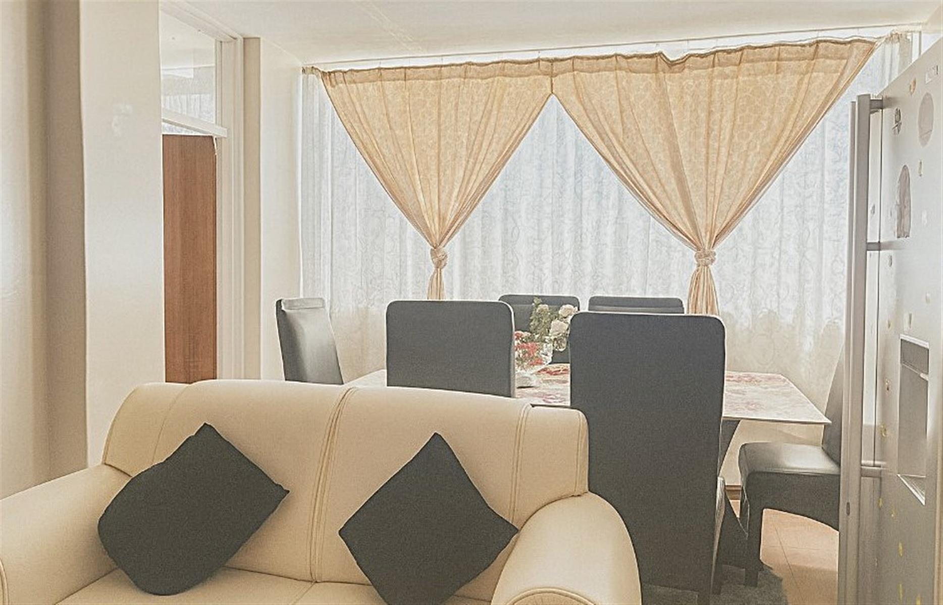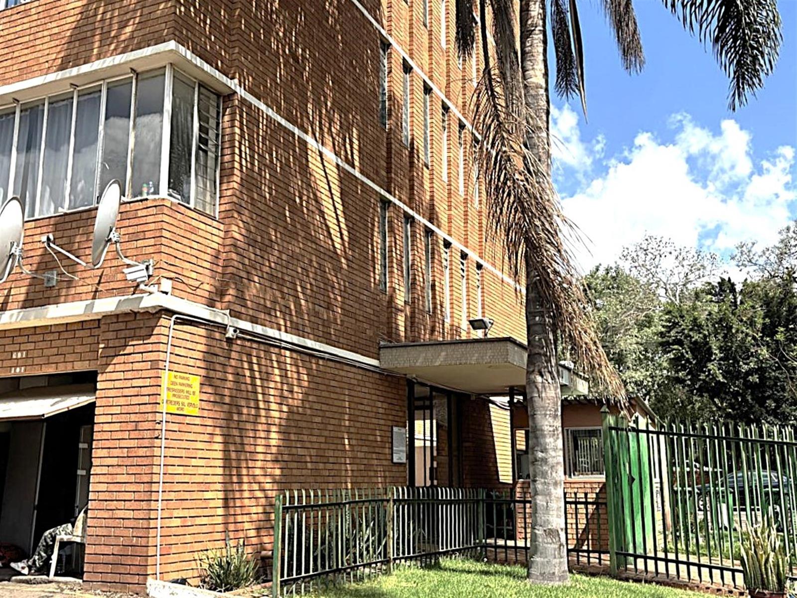Sunny, spacious upper floor 70sqm 1.5 bed Apartment in a secure, older, well-built apartment block located in vibrant, convenient Sunnyside. Comprising 1.5beds (enclosed balcony), lounge-dining room combo, kitchen, bathroom with hook up for washing machine, separate toilet.