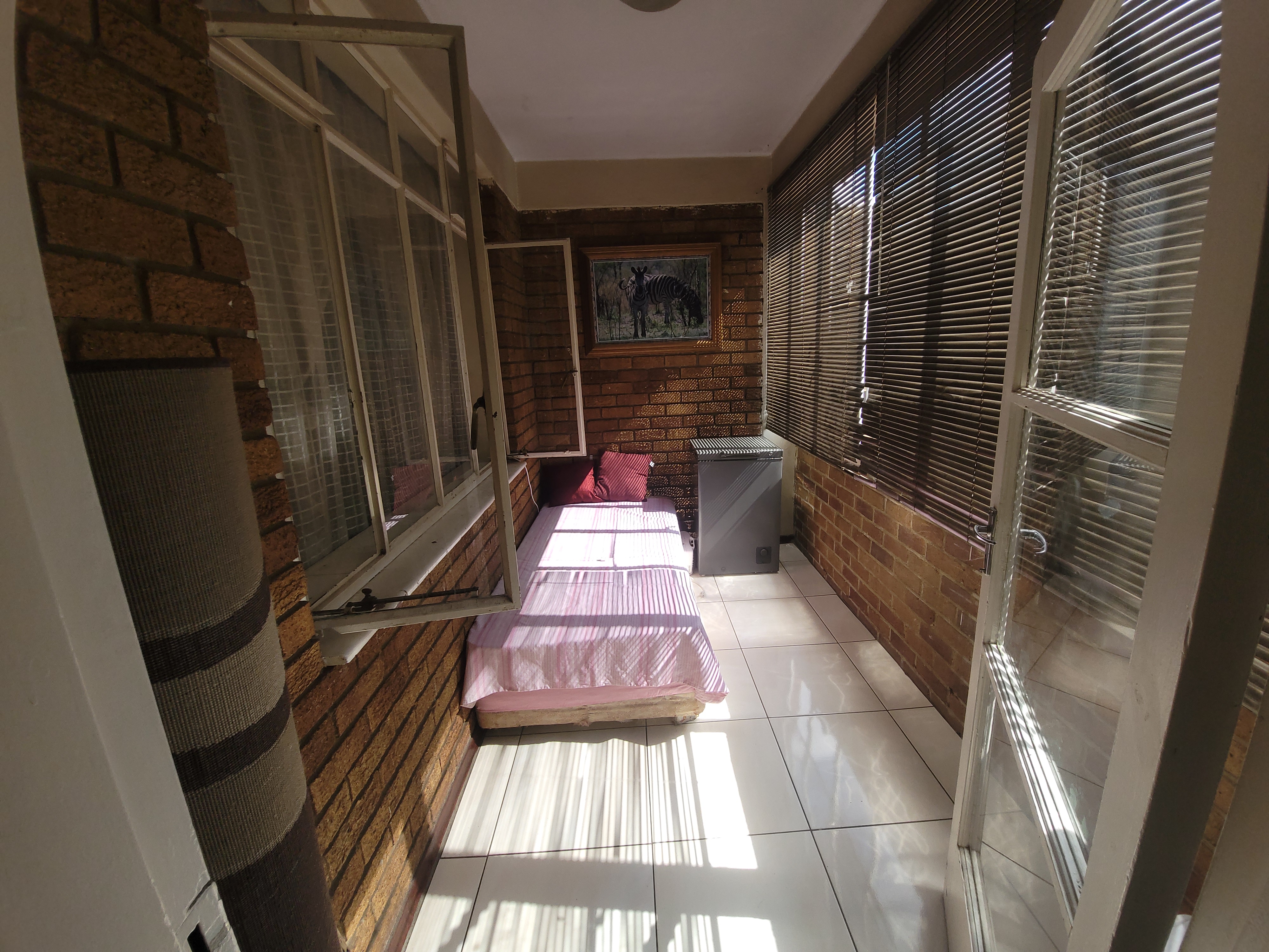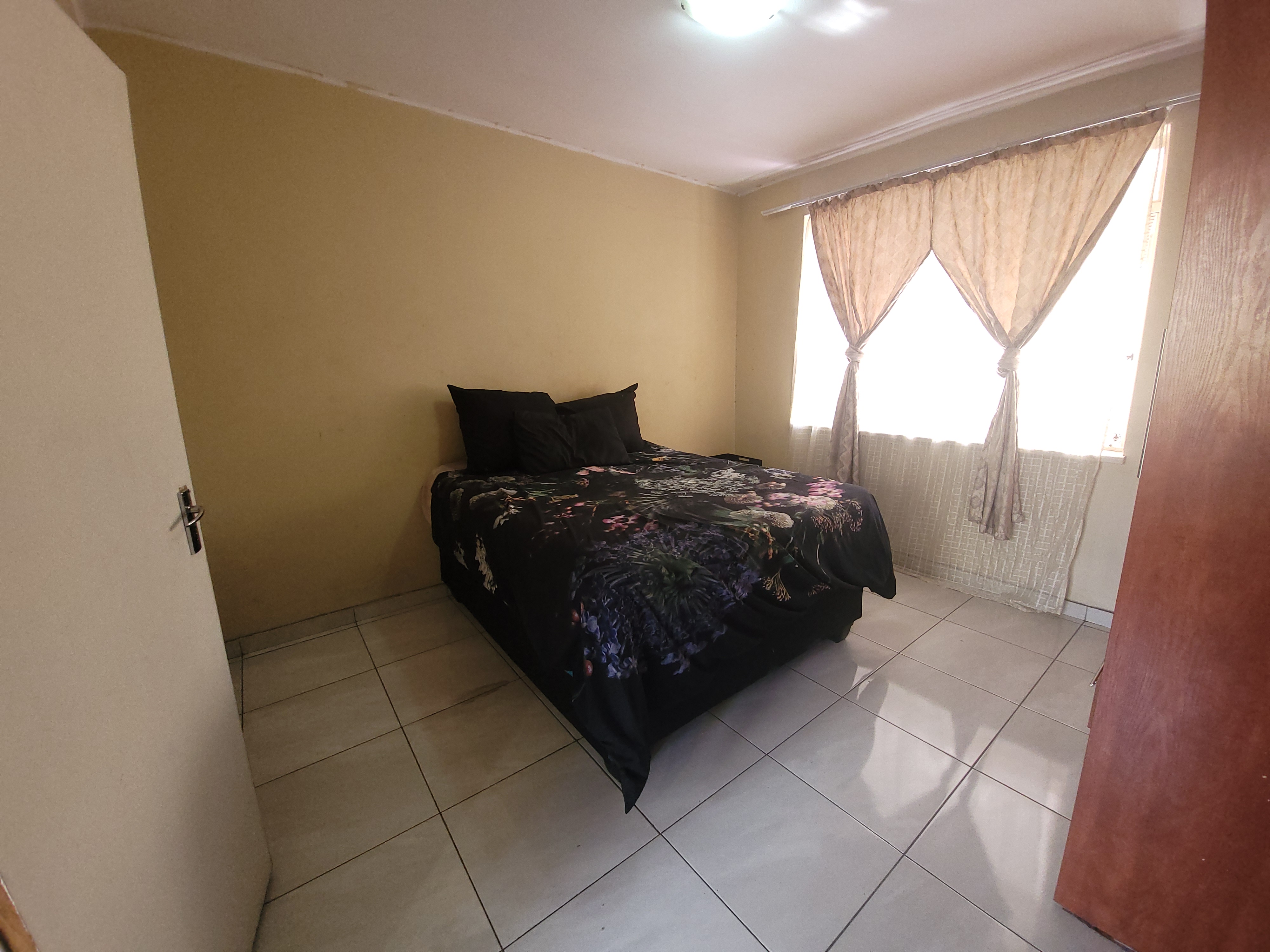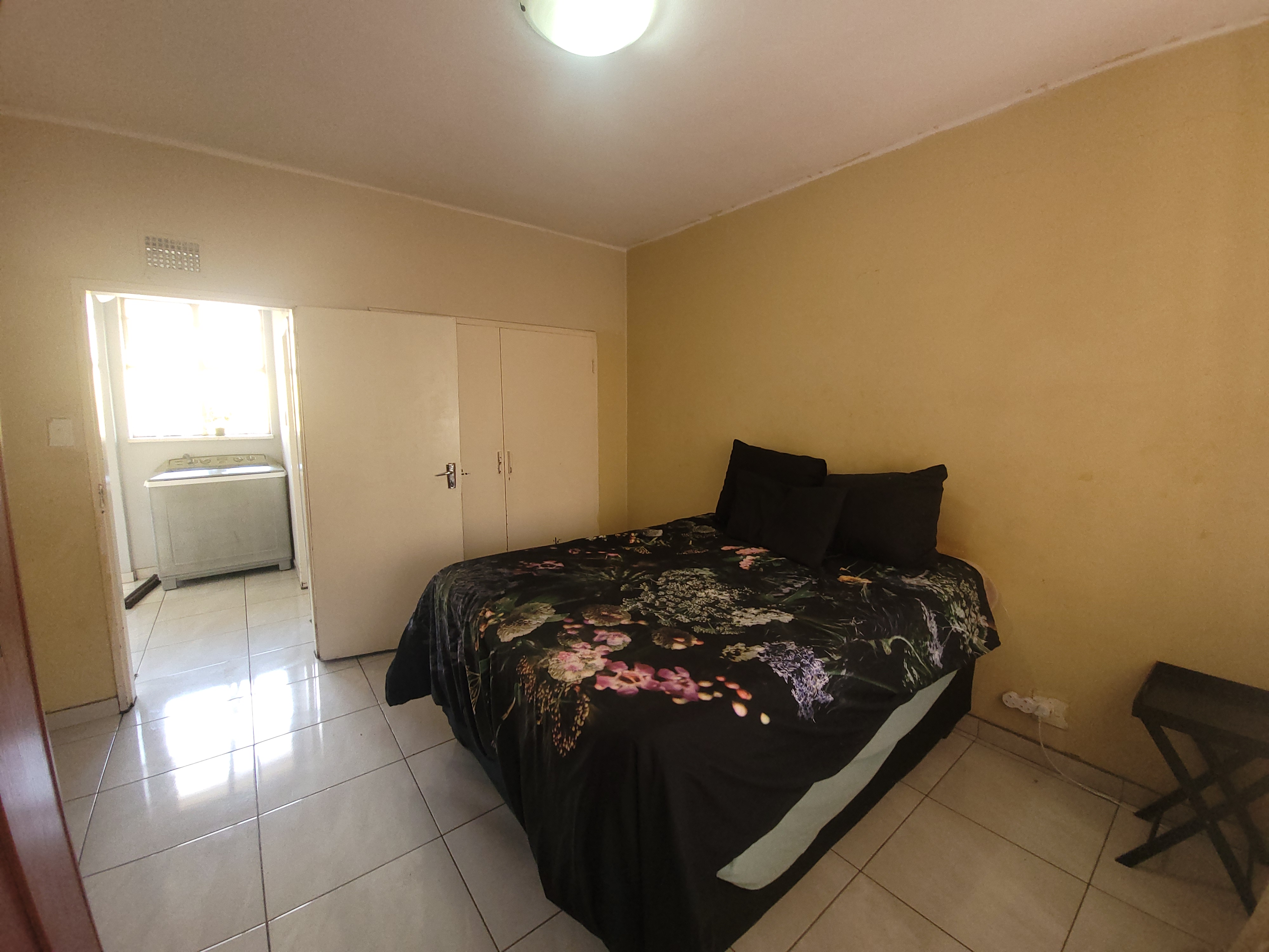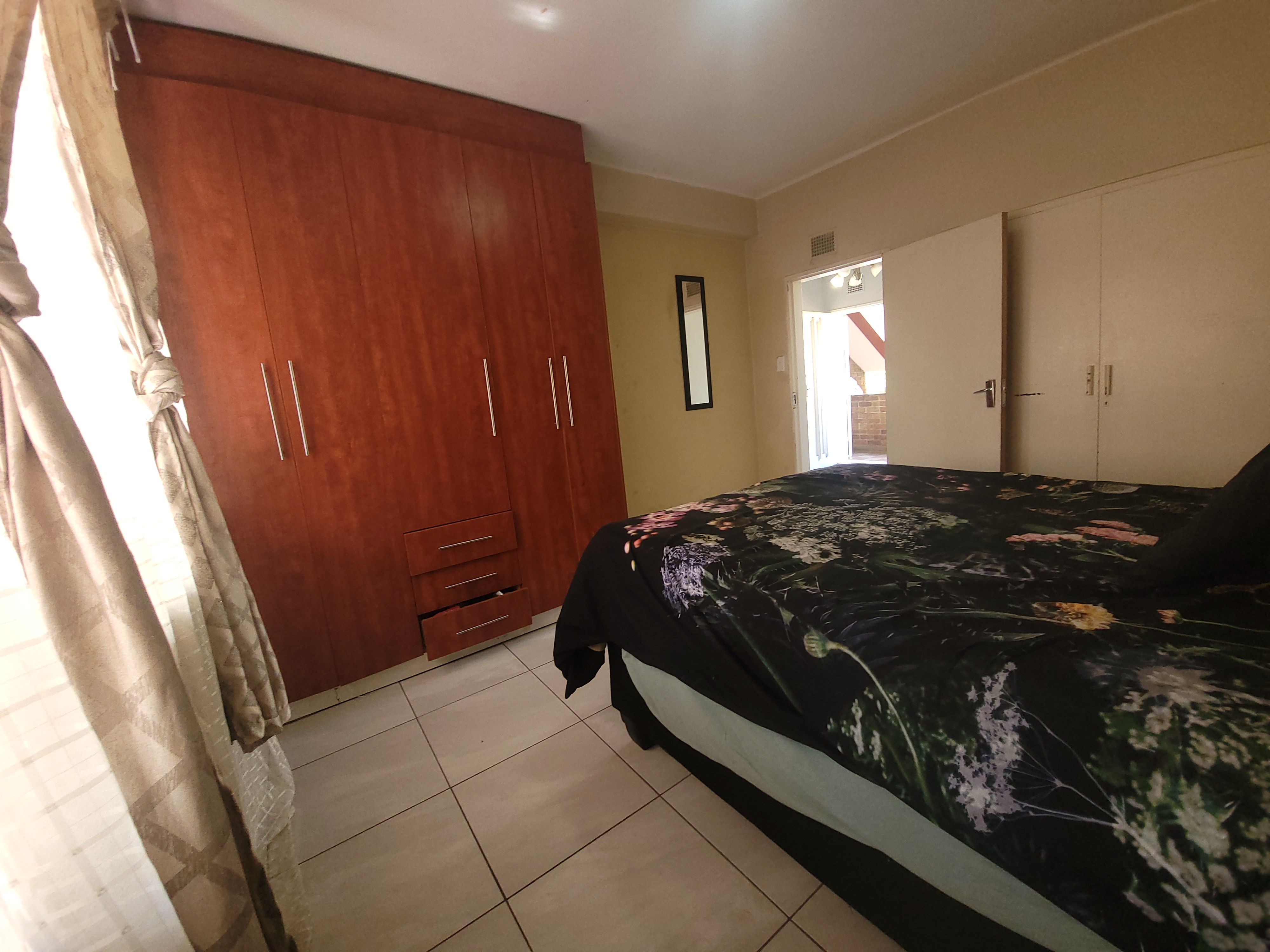 The bedroom is fitted with nice , built-in cupboards, providing ample storage space.