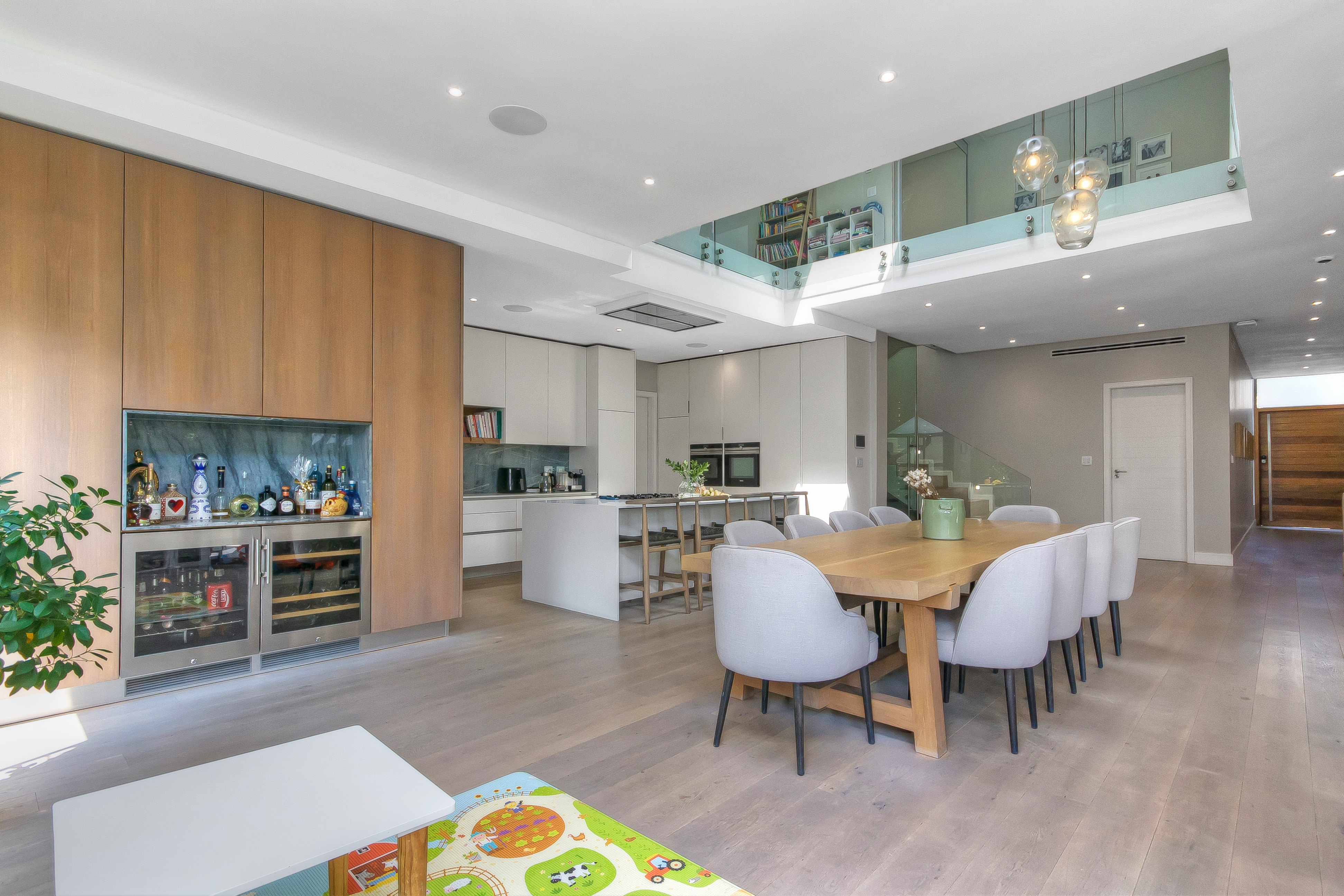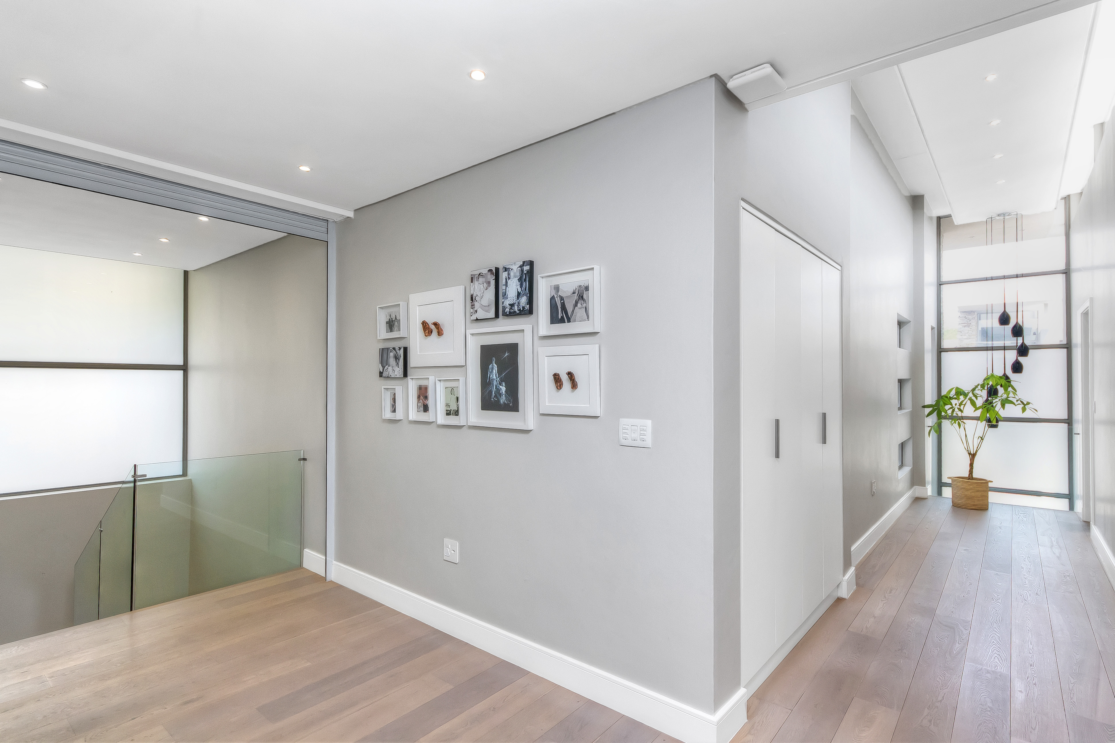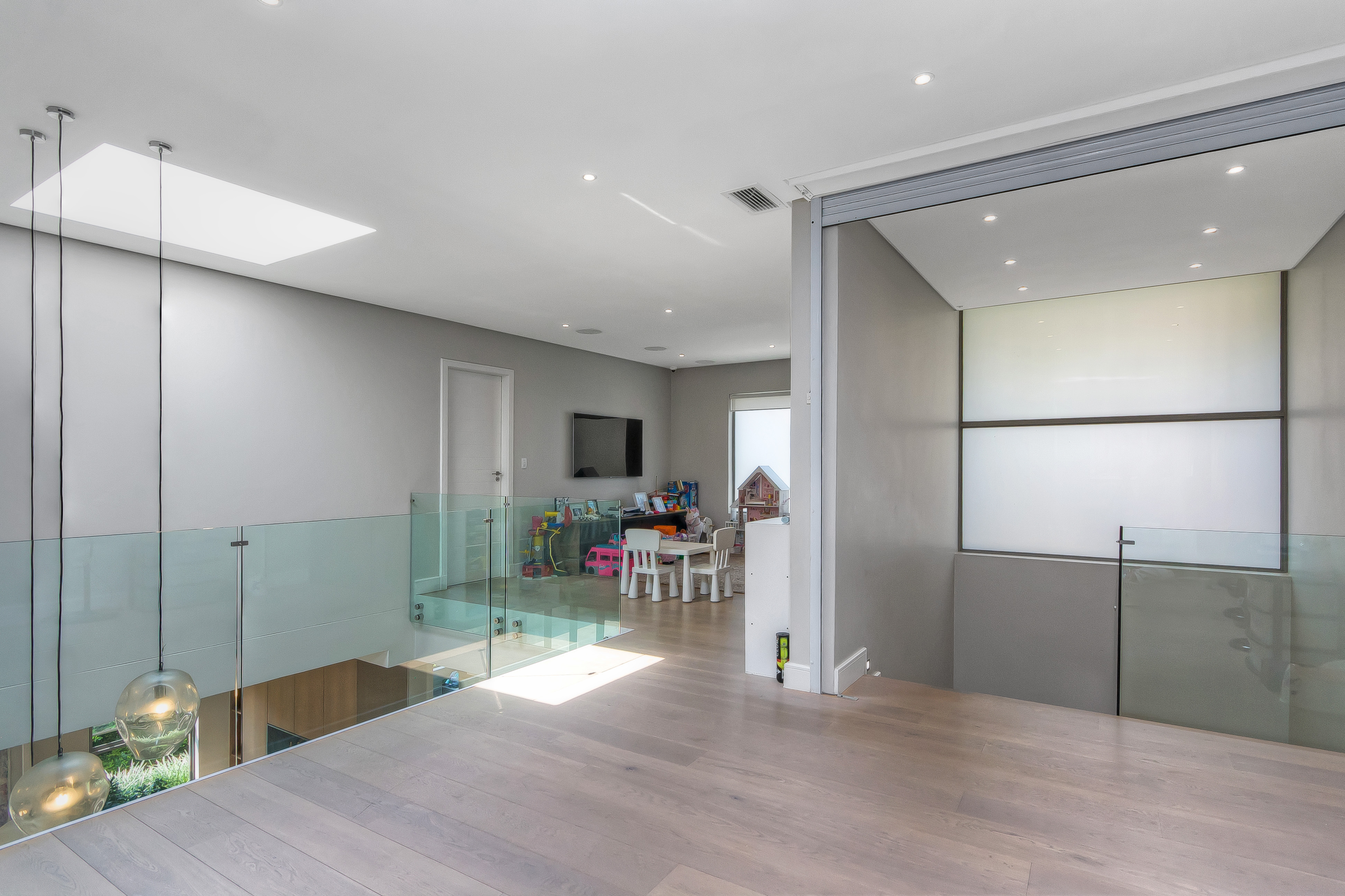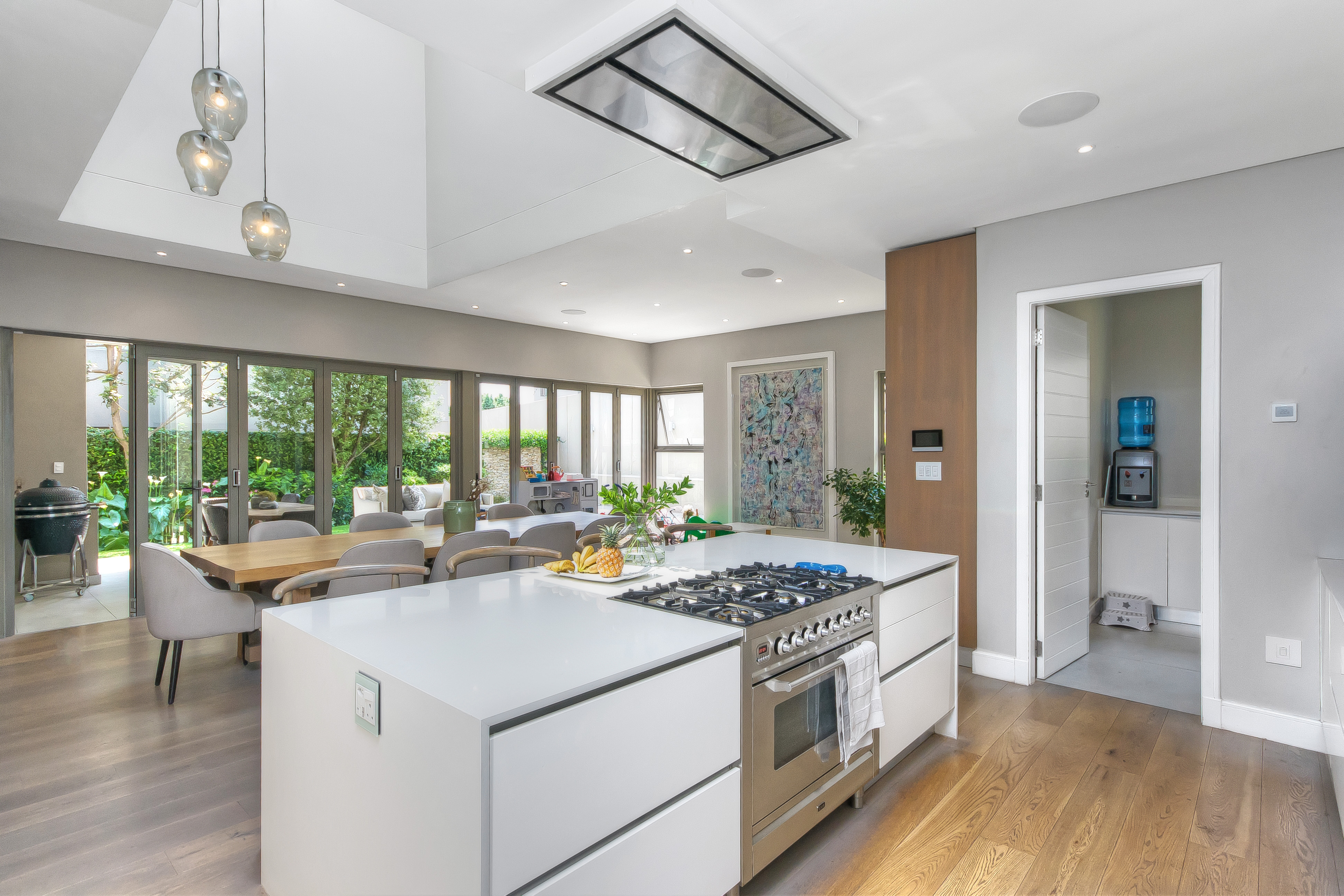 The living areas are generous and flow beautifully, featuring a full eat-in kitchen with a scullery and laundry, as well as a walk-in wine cellar. Multiple lounges open onto the expansive entertainment patio, which forms the heart of the home. Here, indoor and outdoor living merge seamlessly, leading out to the landscaped garden and swimming pool – the perfect setting for family life and hosting guests.