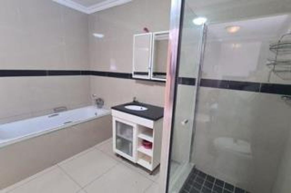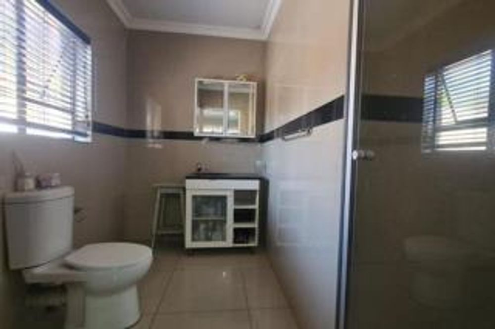 The home features four well appointed bedrooms, each equipped with built-in cupboards. Every bedroom has its own bathroom, except for one room where the bathroom is conveniently located just across the passage. Each bedroom also has its own exterior door, leading directly outside, a unique feature that enhances privacy and ease of access. The rooms are spacious and can comfortably accommodate furniture while still allowing plenty of room to move around.