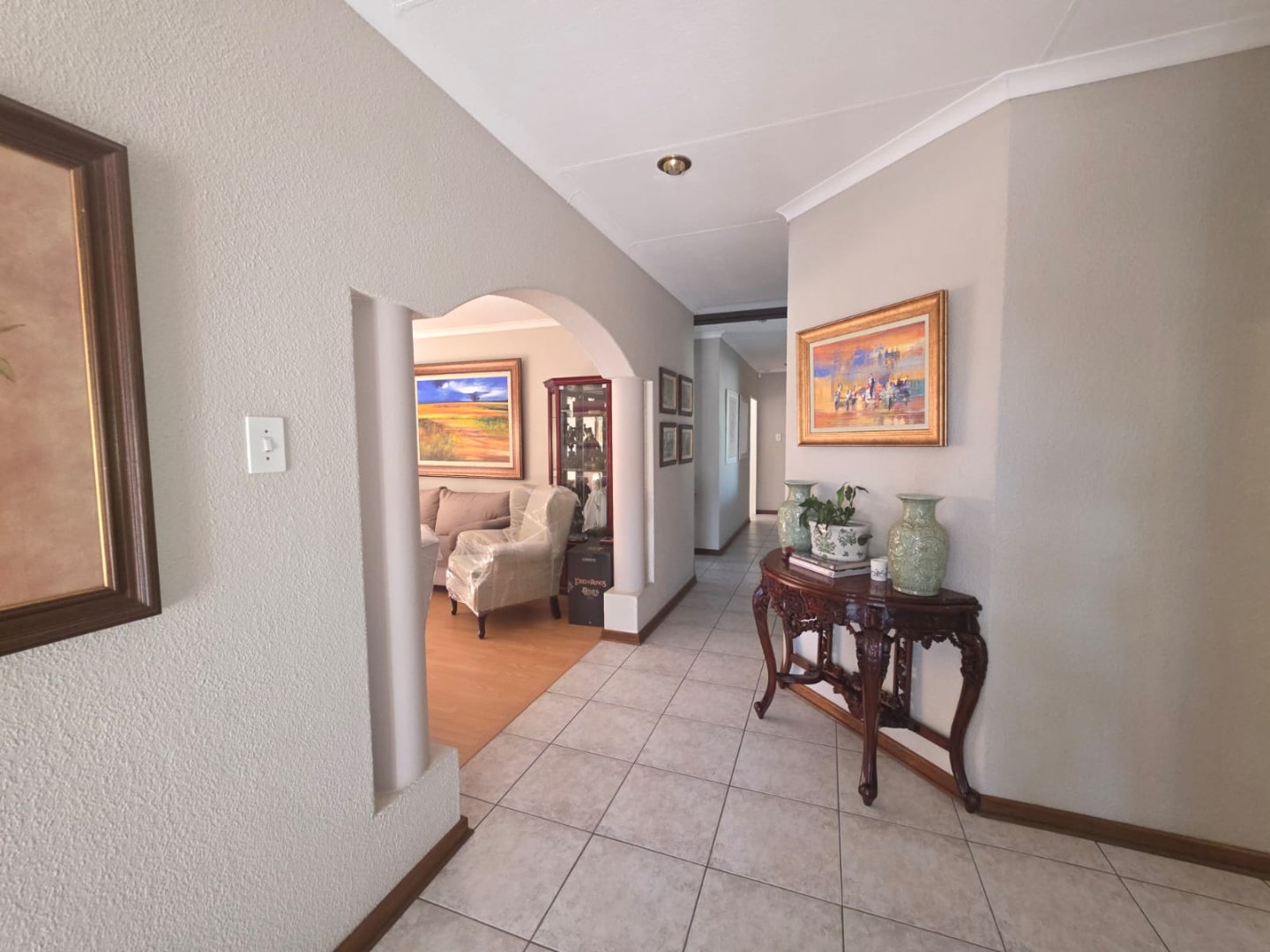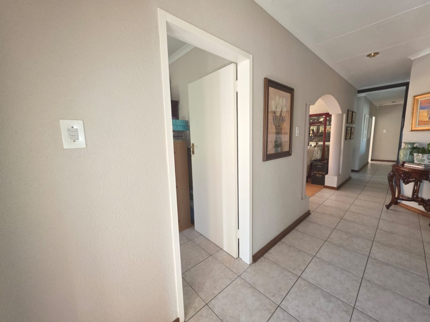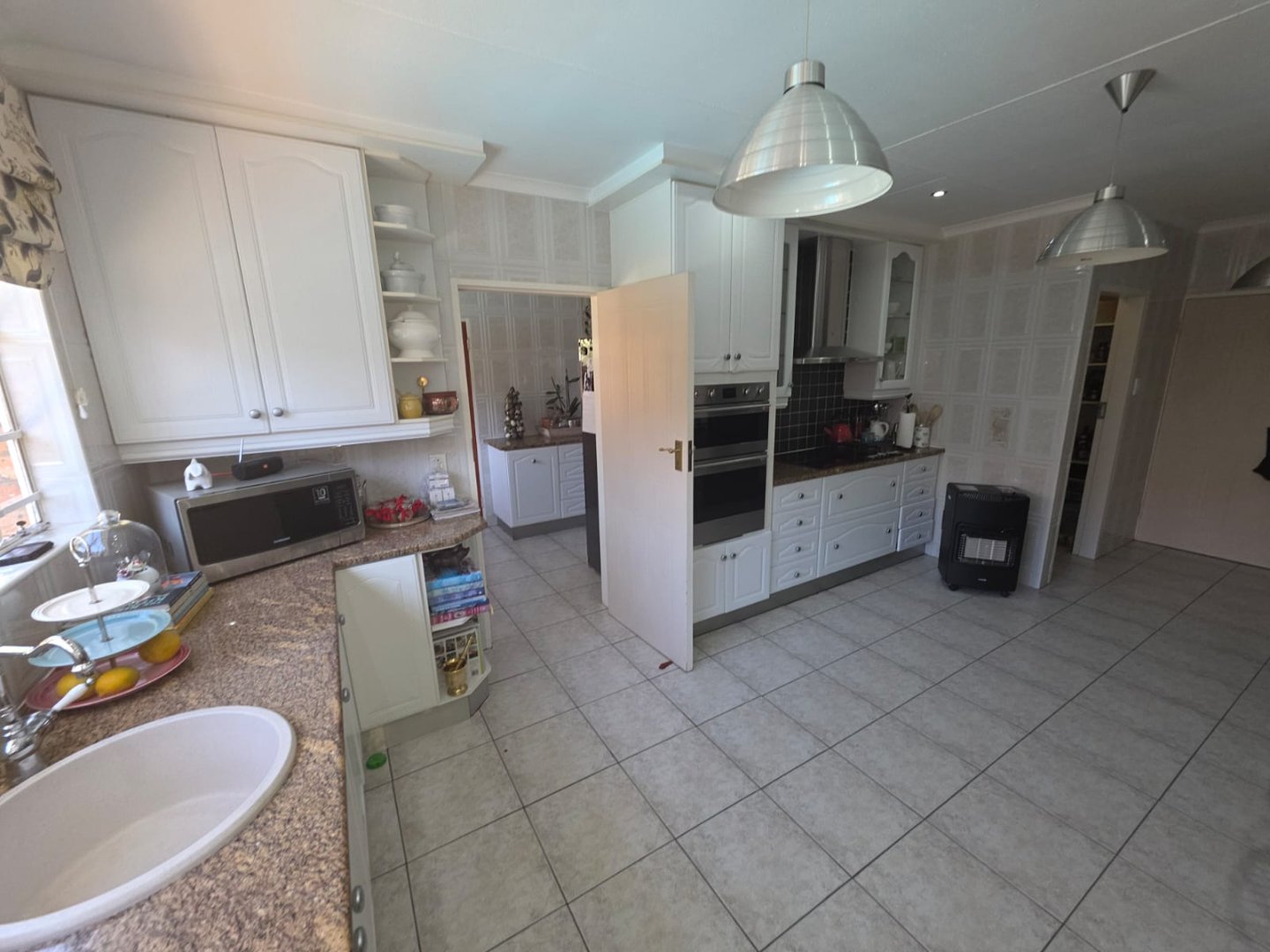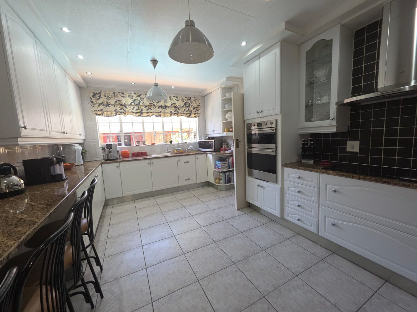 The well-equipped kitchen includes a pantry and a separate scullery, ideal for keeping the main area tidy. One of the bedrooms boasts an en-suite, while a guest loo and two additional bathrooms cater to family and visitors. The property also includes staff quarters and a triple garage, offering ample accommodation and storage.