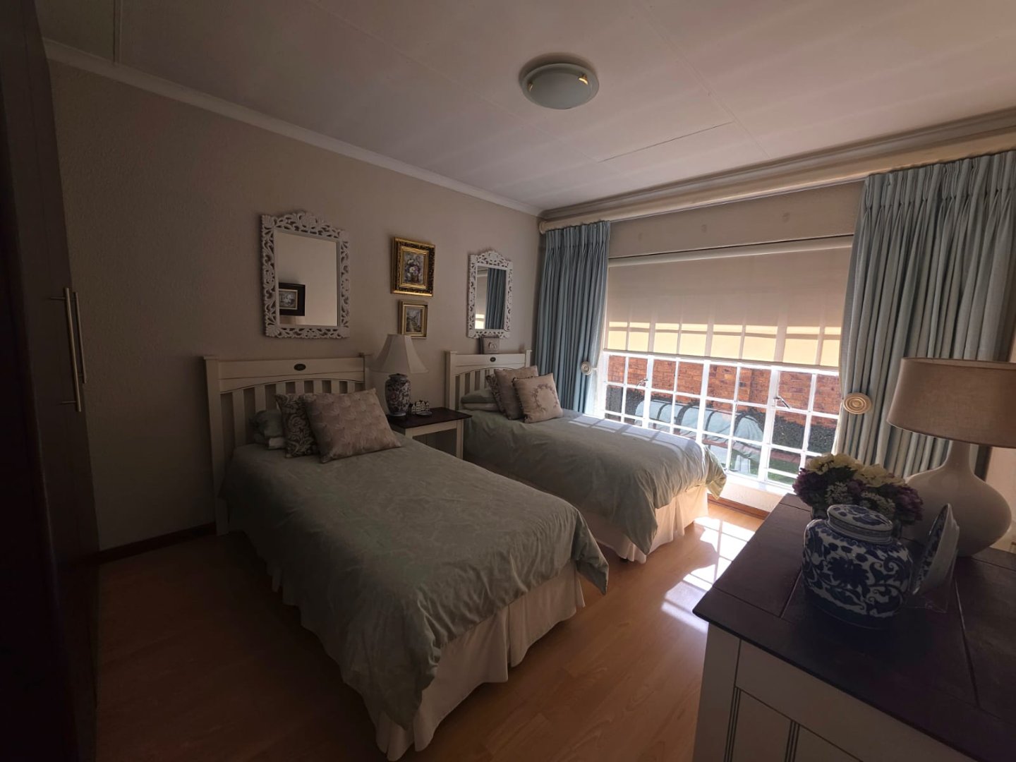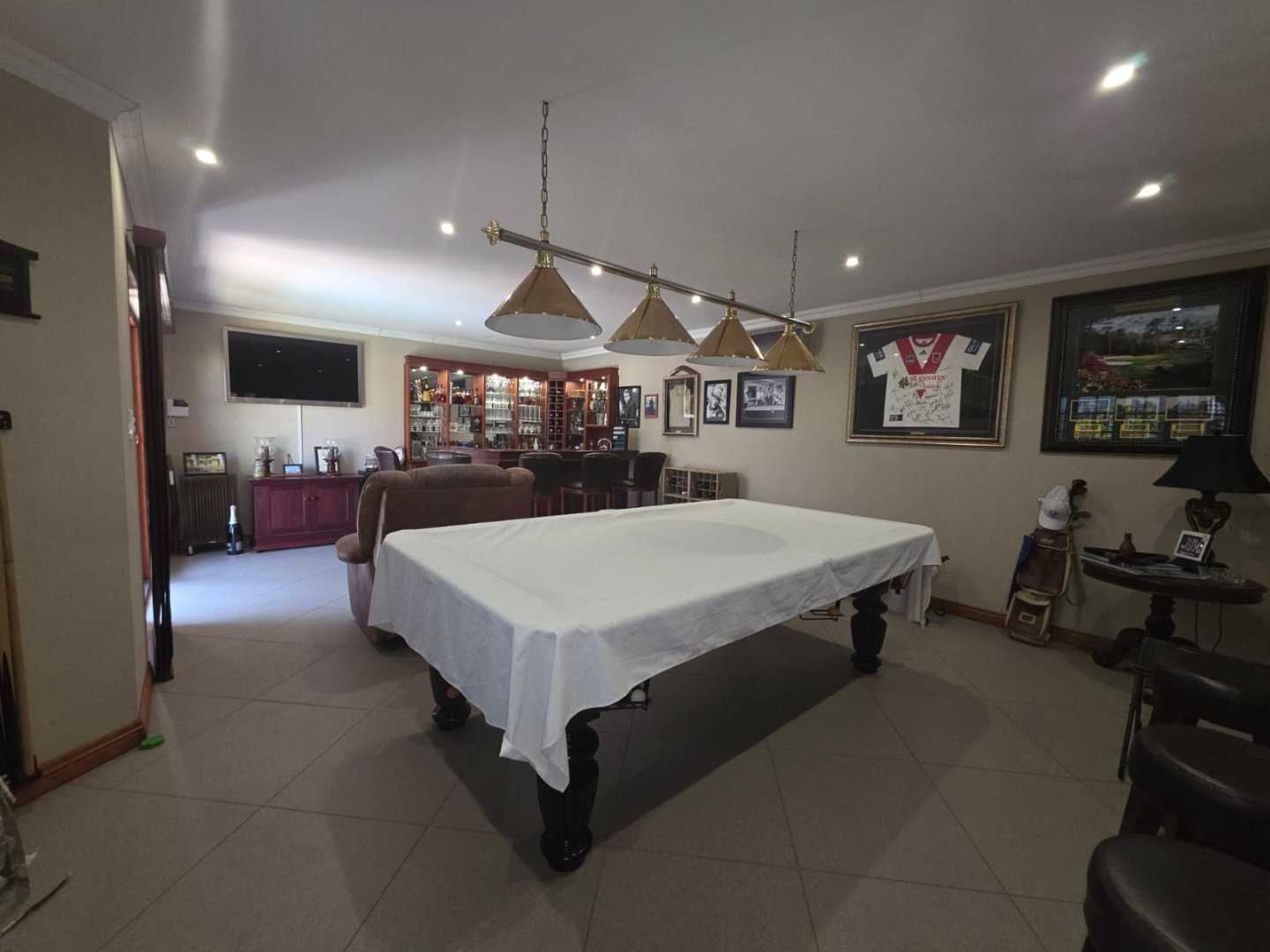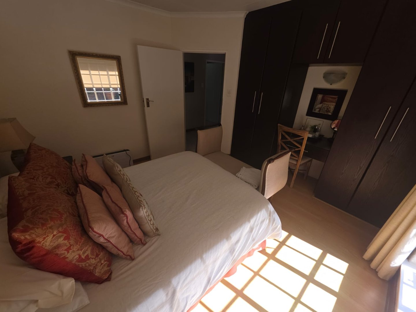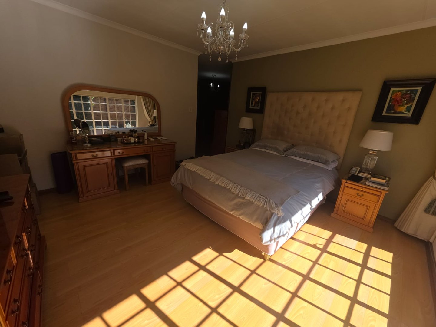 The well-equipped kitchen includes a pantry and a separate scullery, ideal for keeping the main area tidy. One of the bedrooms boasts an en-suite, while a guest loo and two additional bathrooms cater to family and visitors. The property also includes staff quarters and a triple garage, offering ample accommodation and storage.